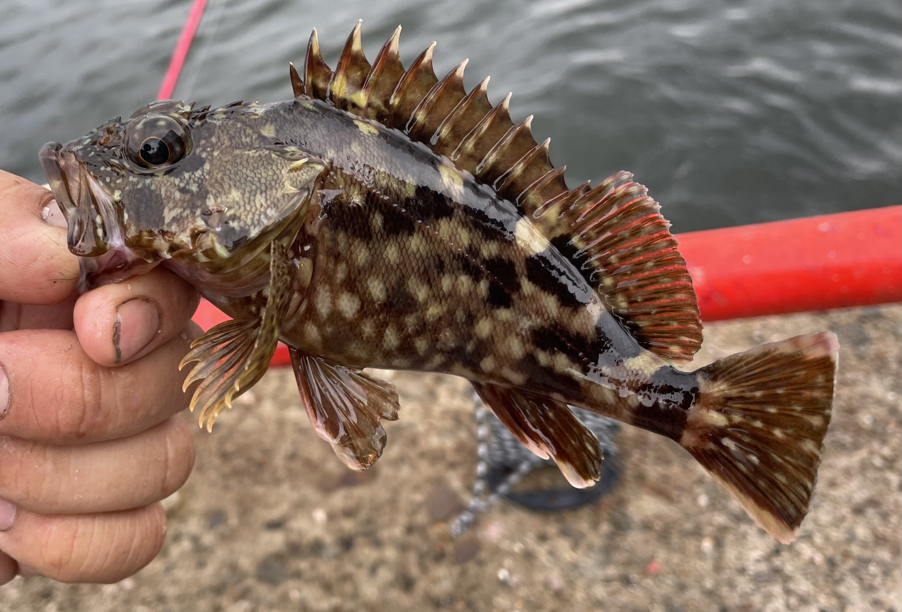 東側のテトラ際での探り釣りでガシラ釣っておられました。餌は青イソメです。