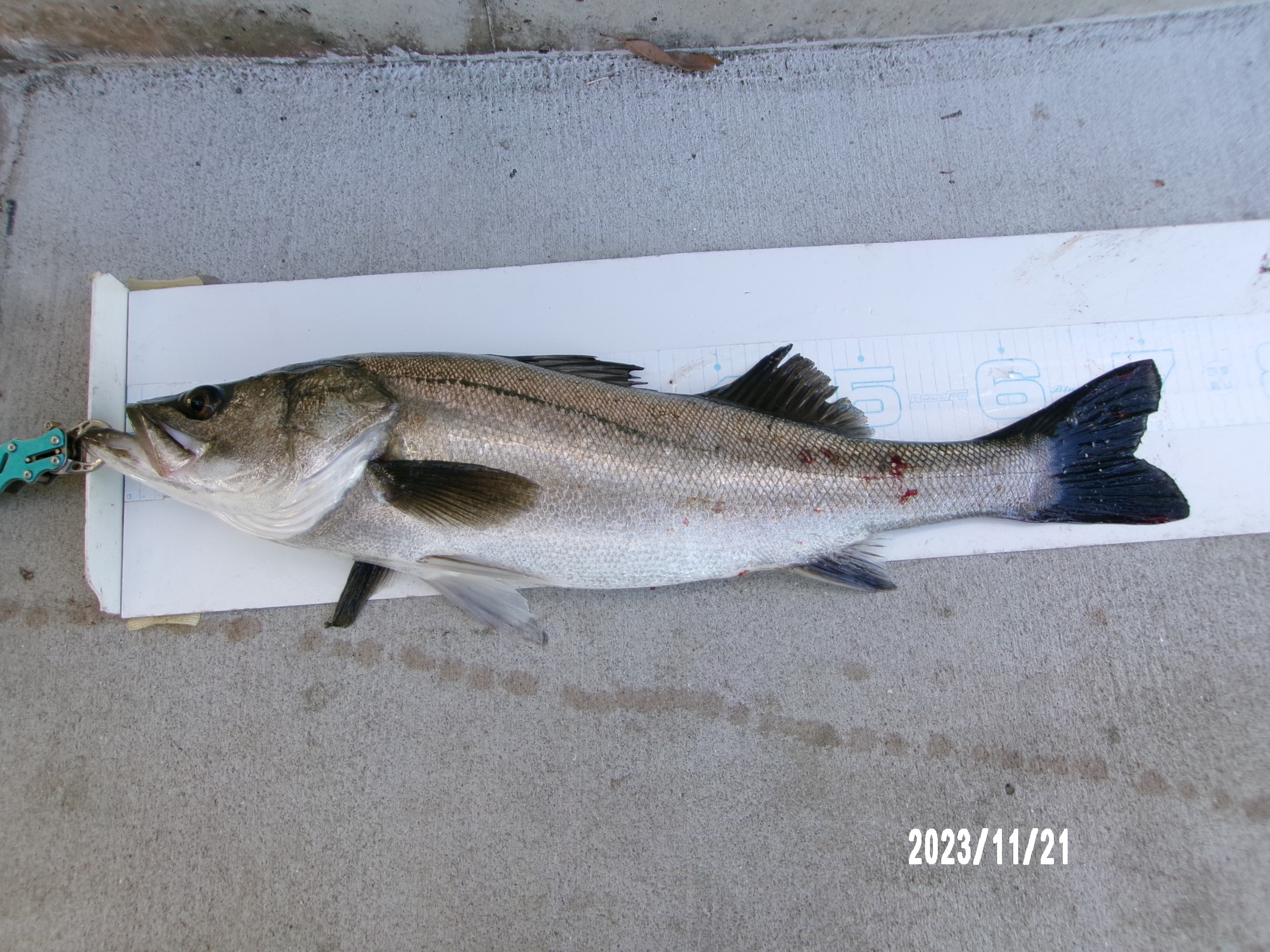 このような状況のなか、フカセ釣りで、チヌ(48㎝)とキビレ(46㎝)を釣られました。お聞きしたところ、キープサイズには至らないチヌやキビレも上げられていたとの事です。