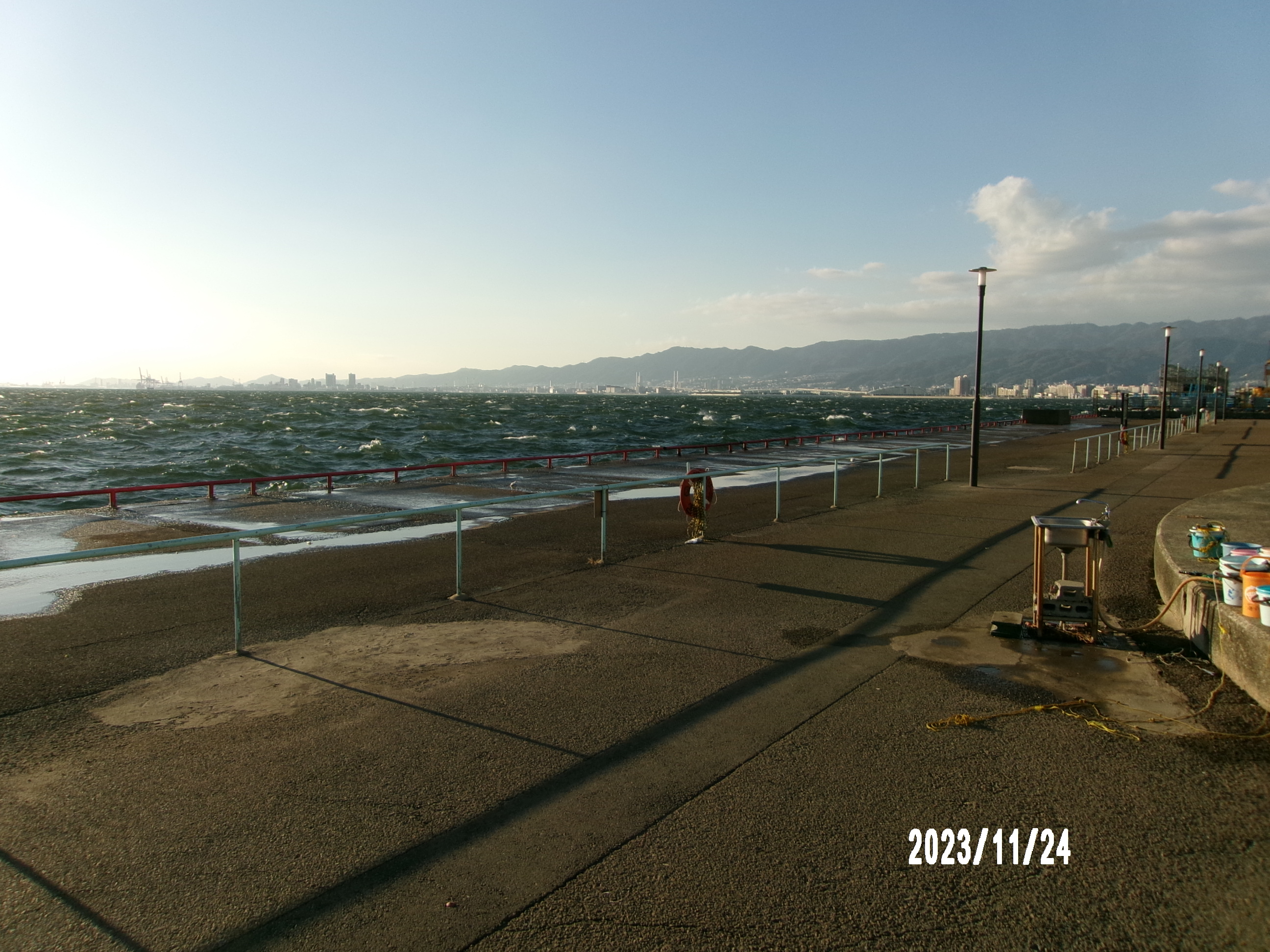 午前9時頃から風が強くなり、とても釣りがやりづらい状況となっています。気温は15℃あり、陽射しもありますが、西の風が8m/sと強く吹いているため体感的には寒く感じるので、これからの釣行をお考えの方は防寒対策をしっかりとした方が良いでしょう。