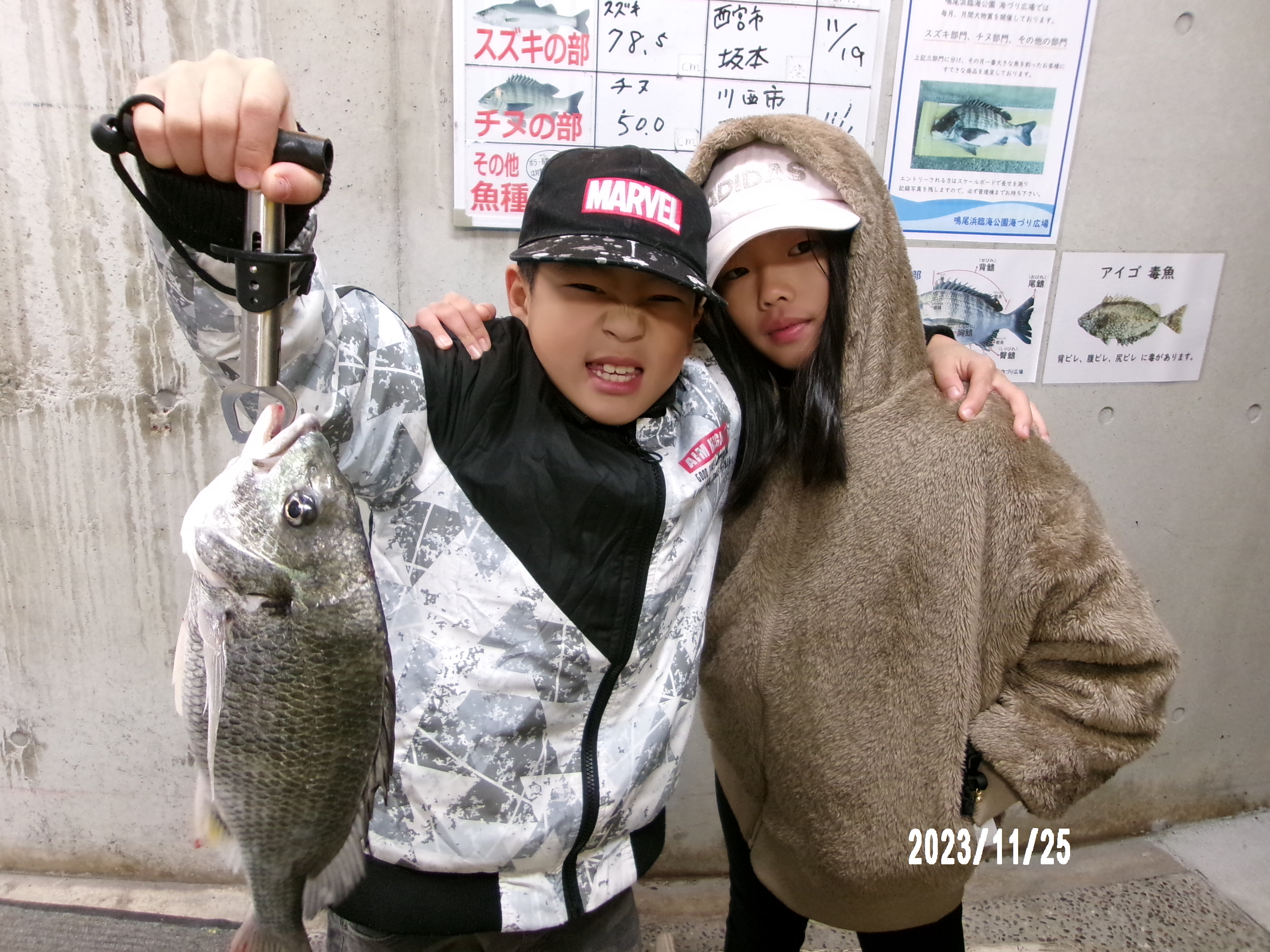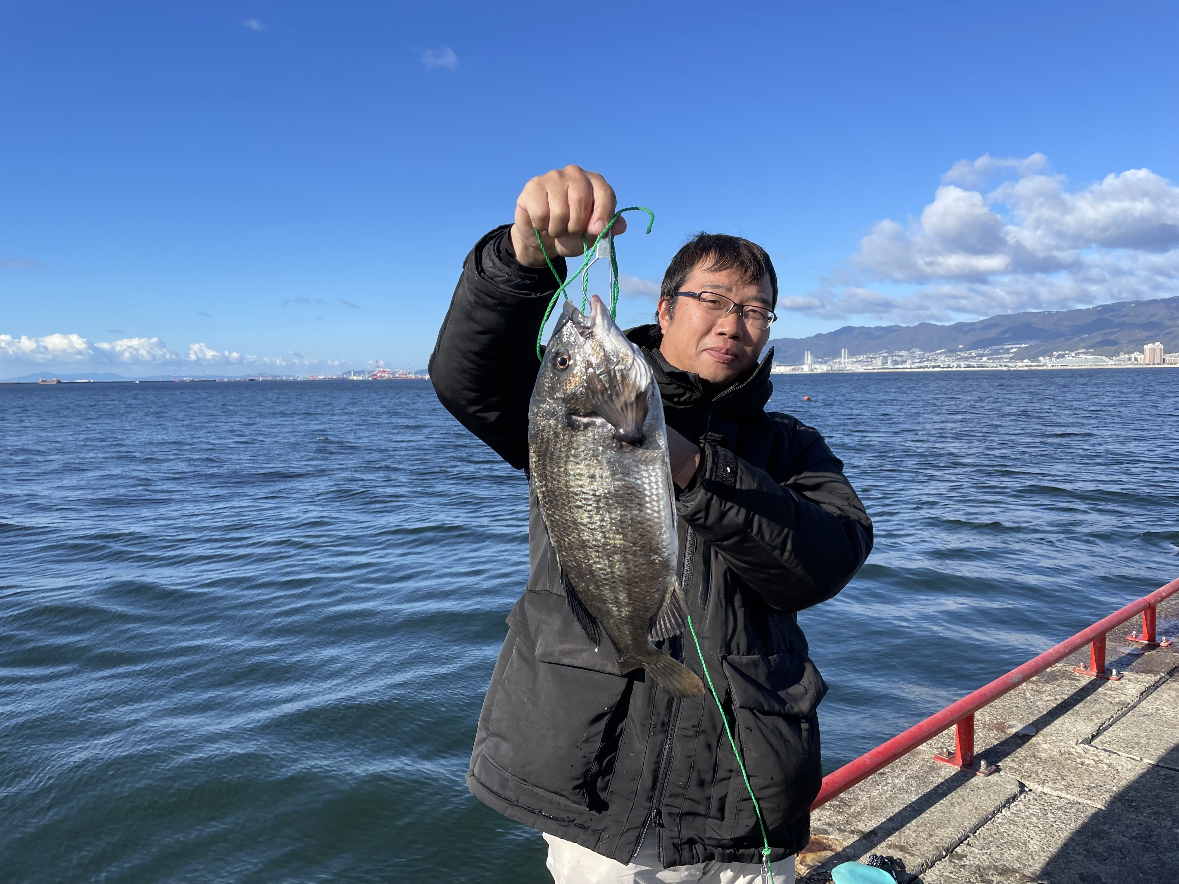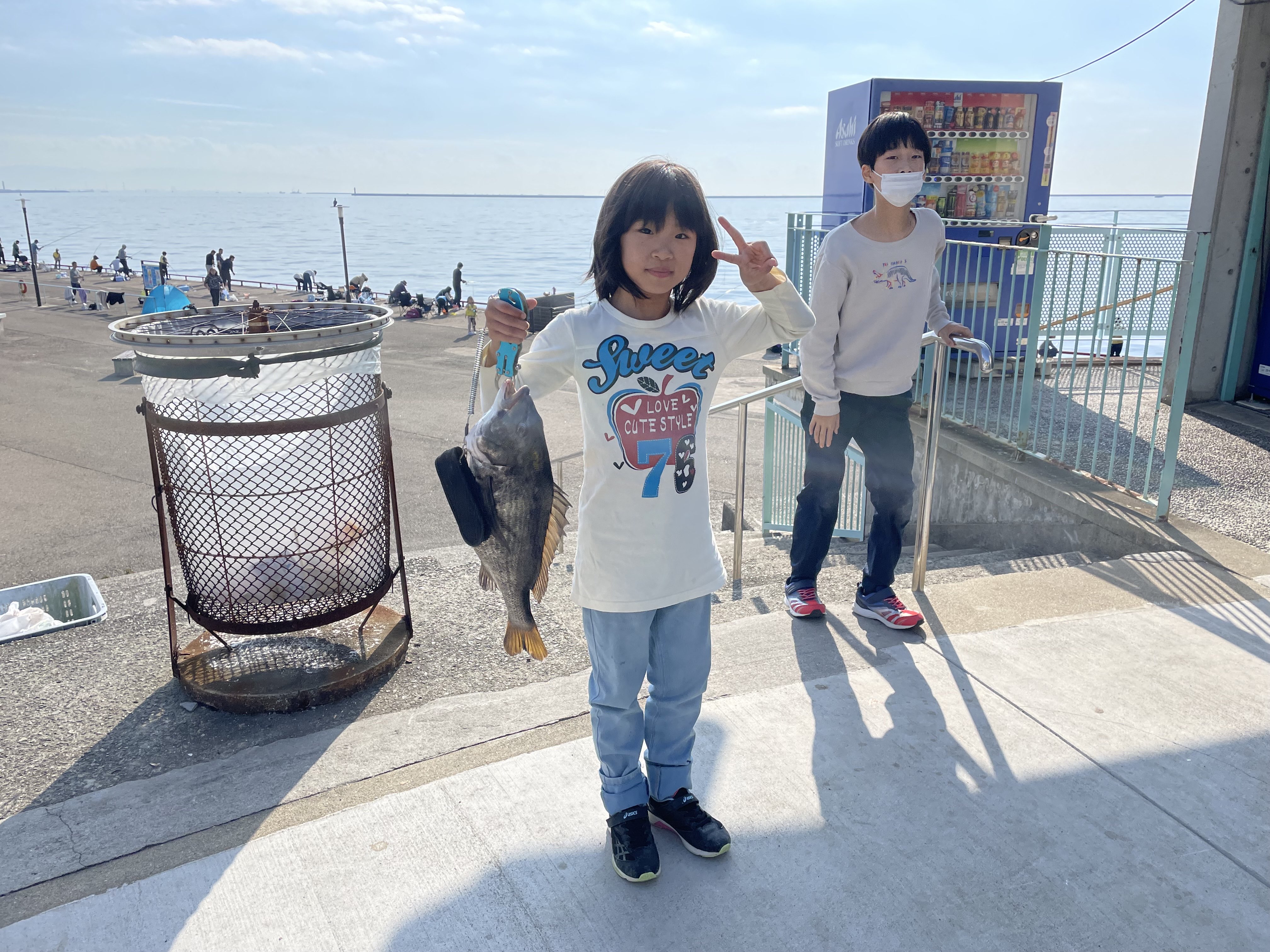 夕方4時半となりました。10人前後の方が竿を出されています。サビキではサッパがほとんどですが先程チヌがサビキ仕掛けに掛かりました。真っ黒な元気そうなチヌです。