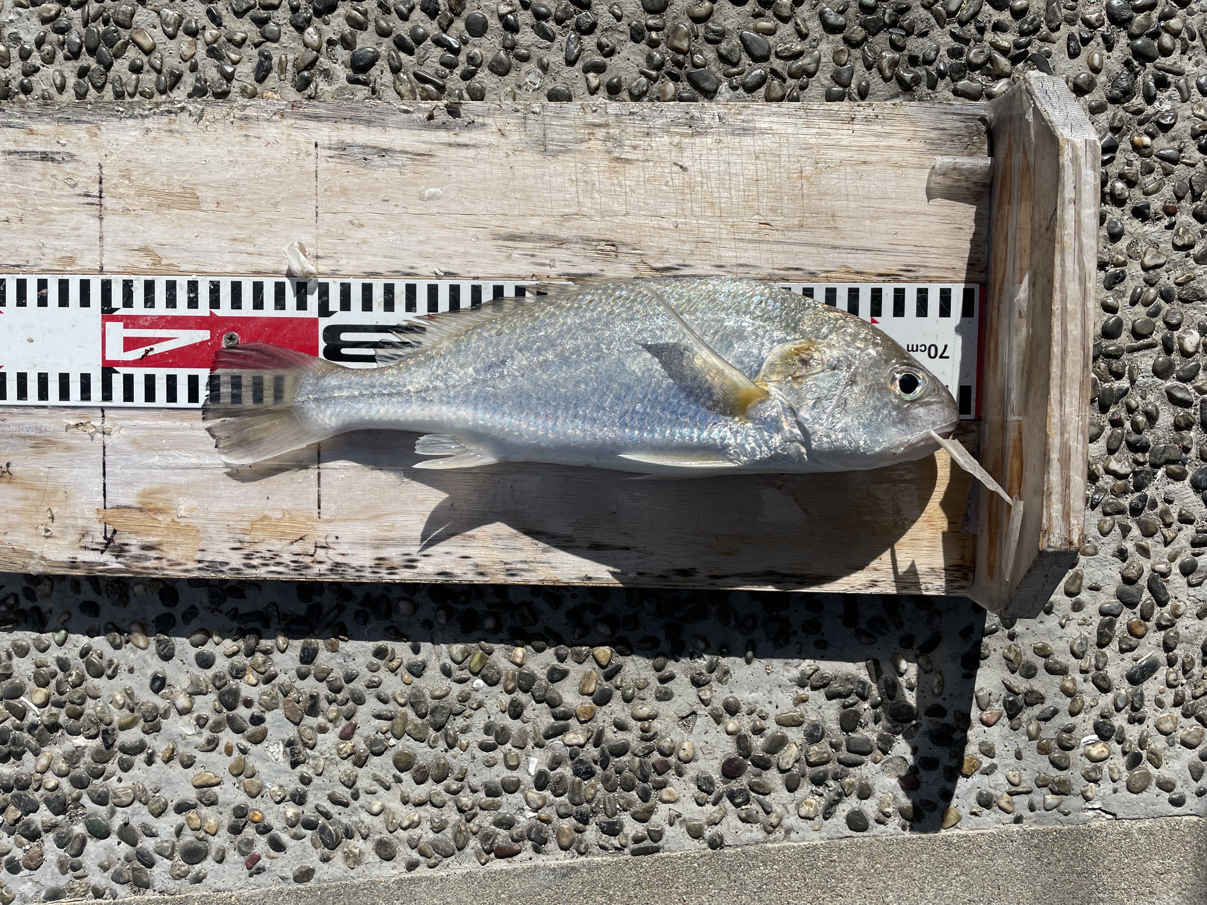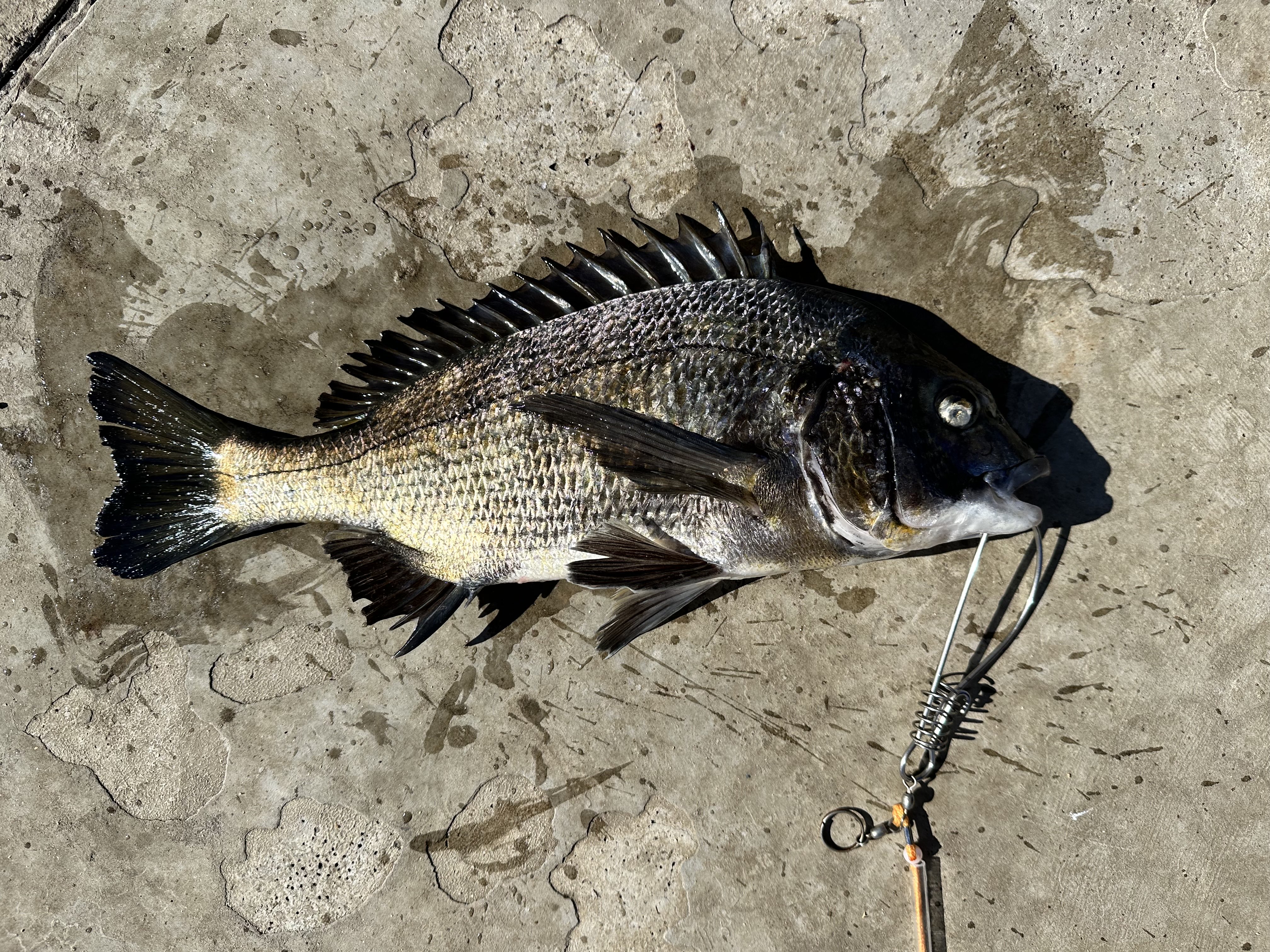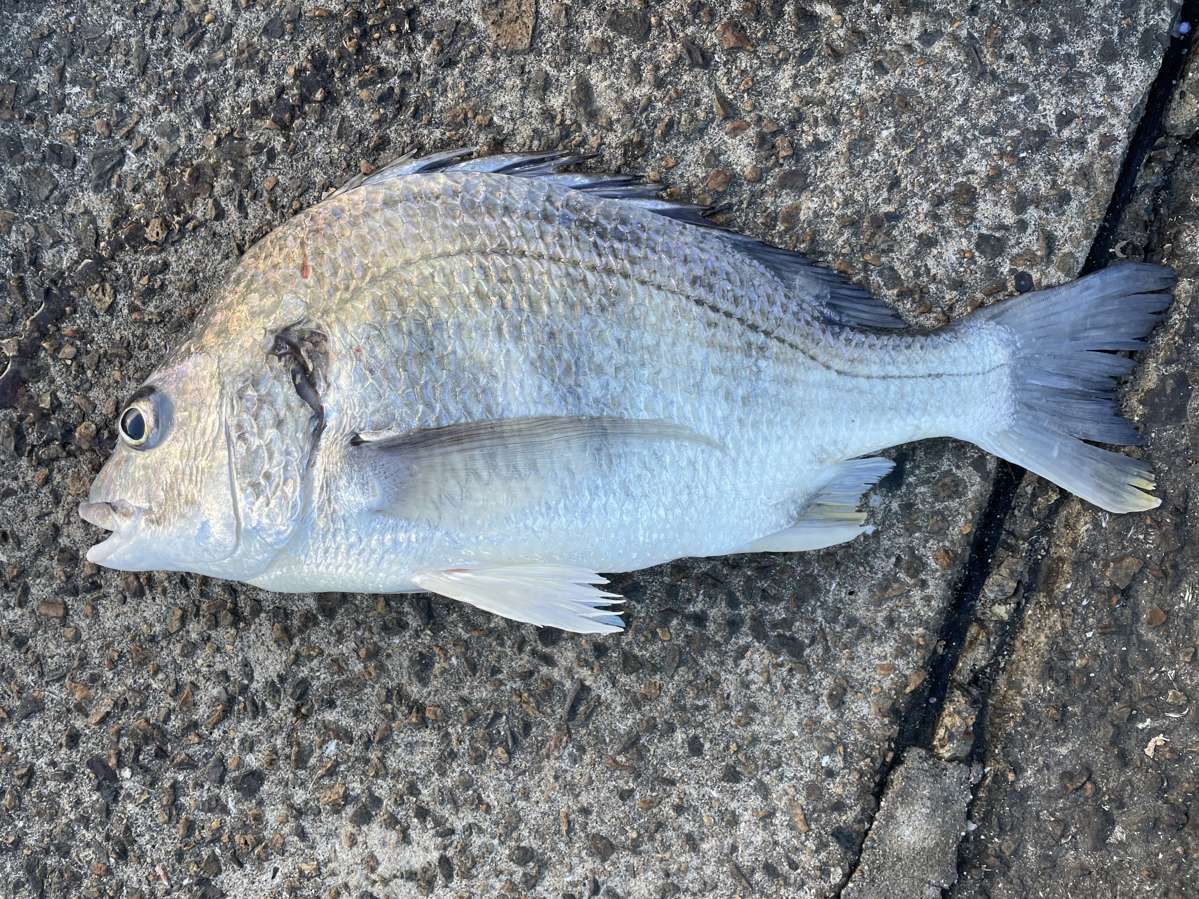 オキアミ餌の探り釣りで42㎝キビレチヌ釣れています。