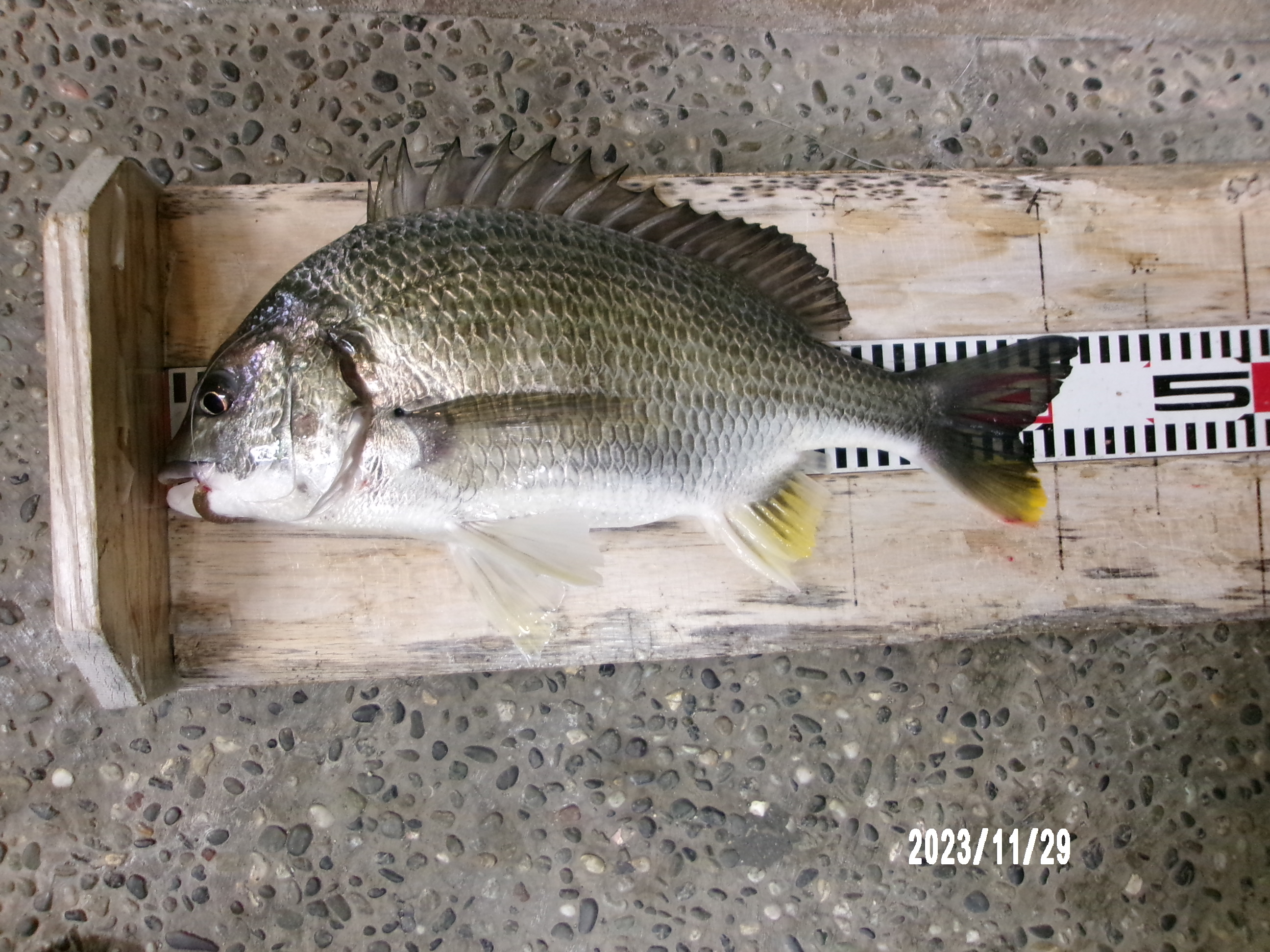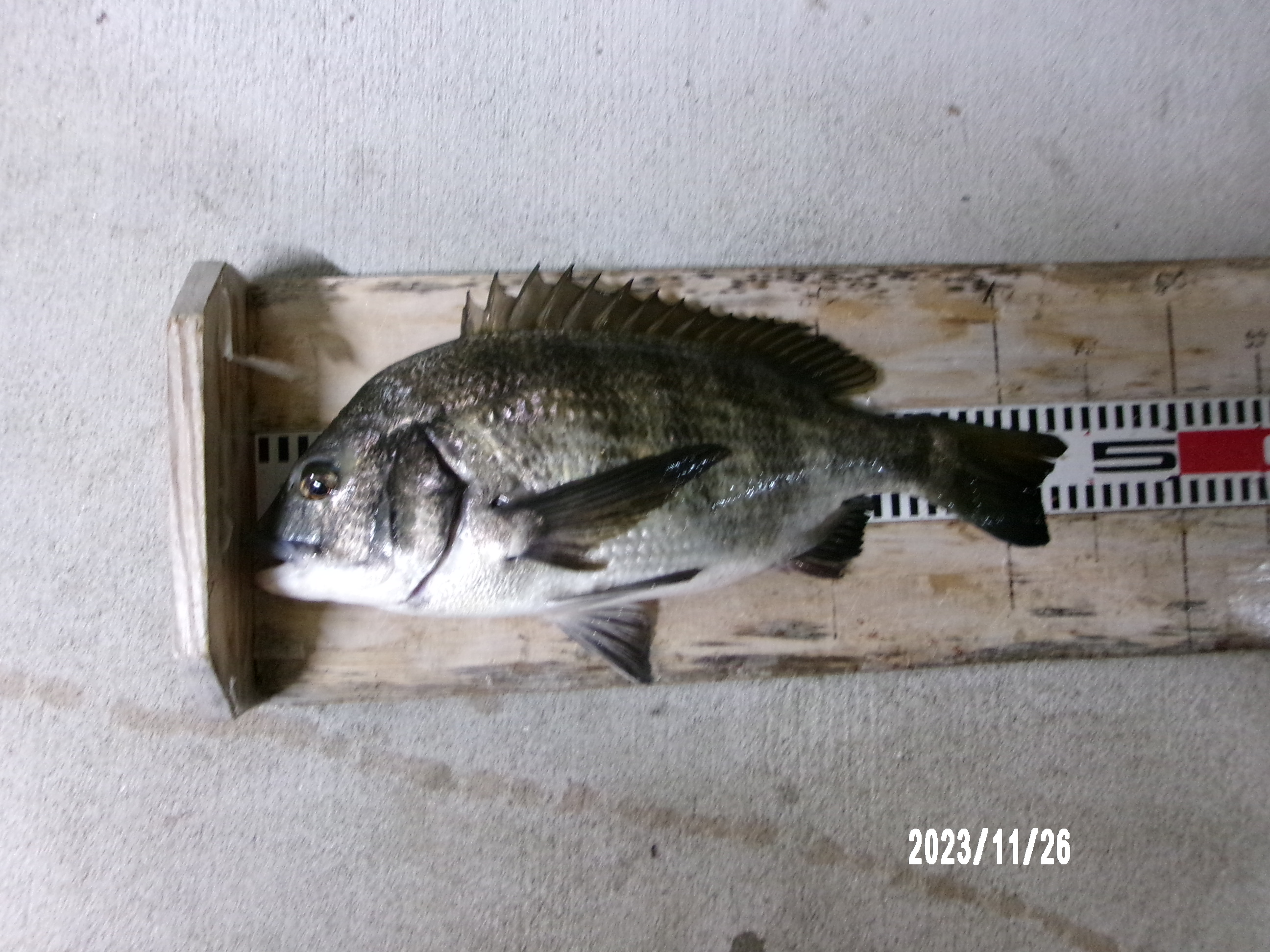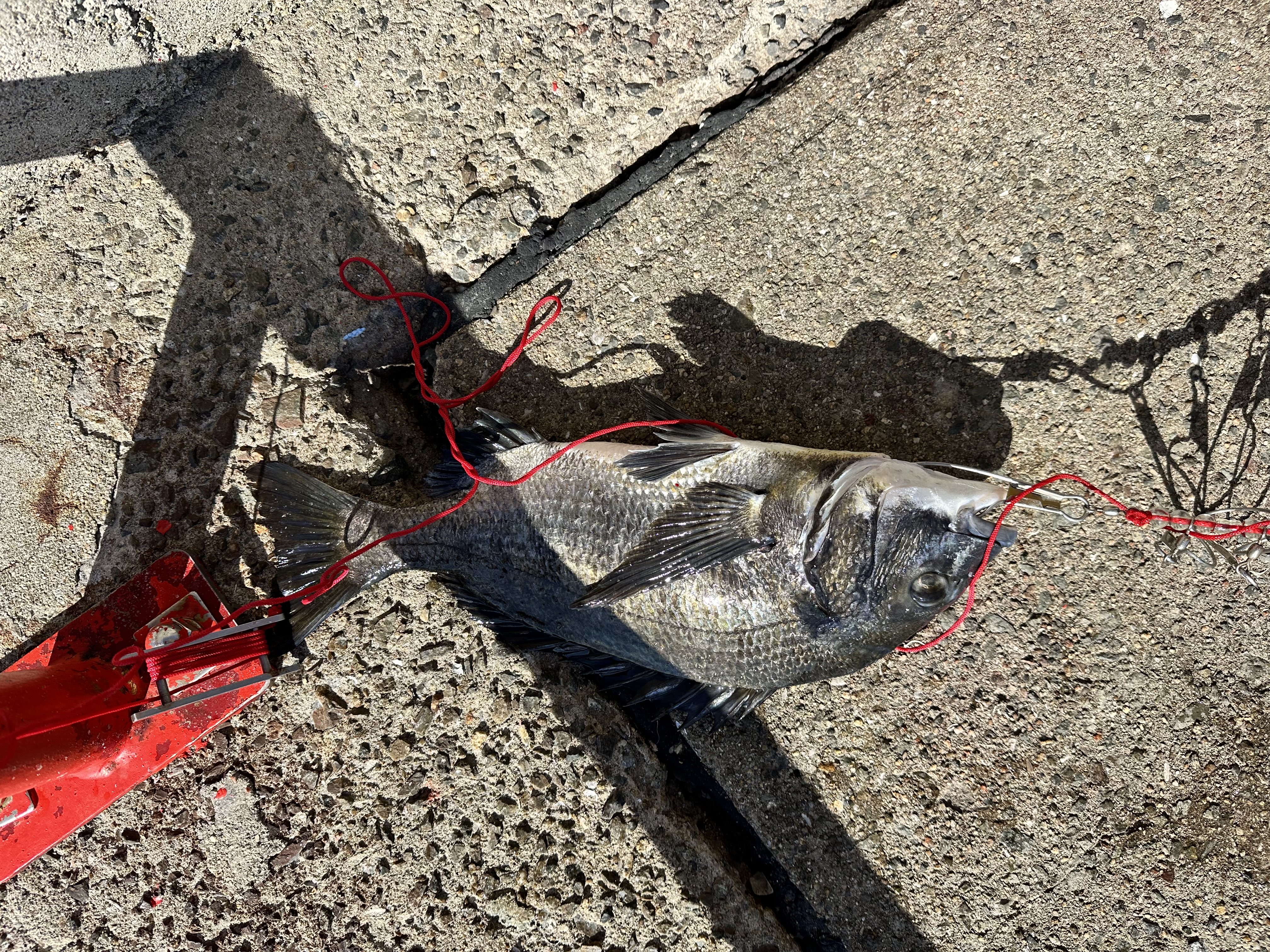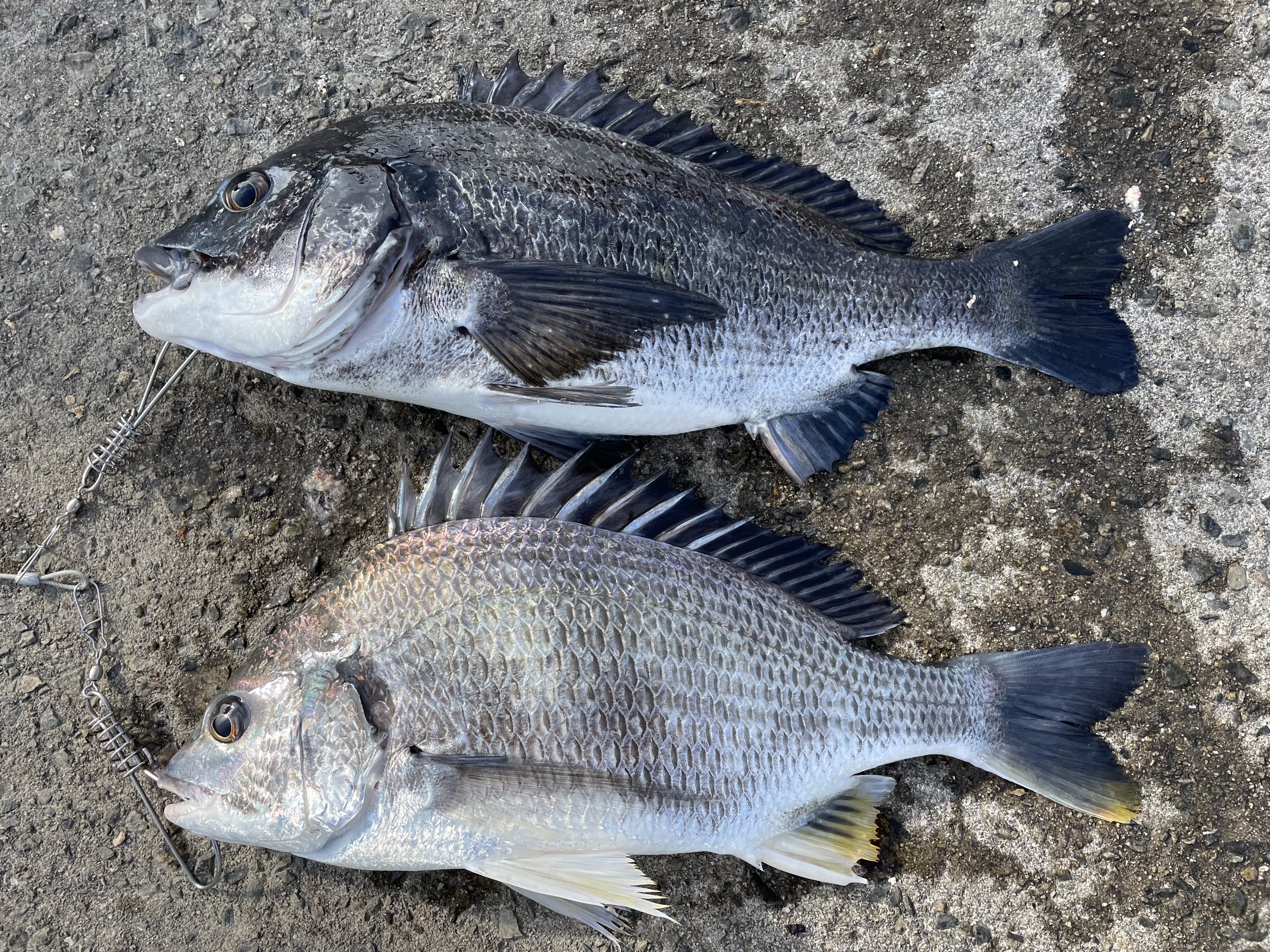 オキアミ餌の探り釣りで42㎝キビレチヌ釣れています。