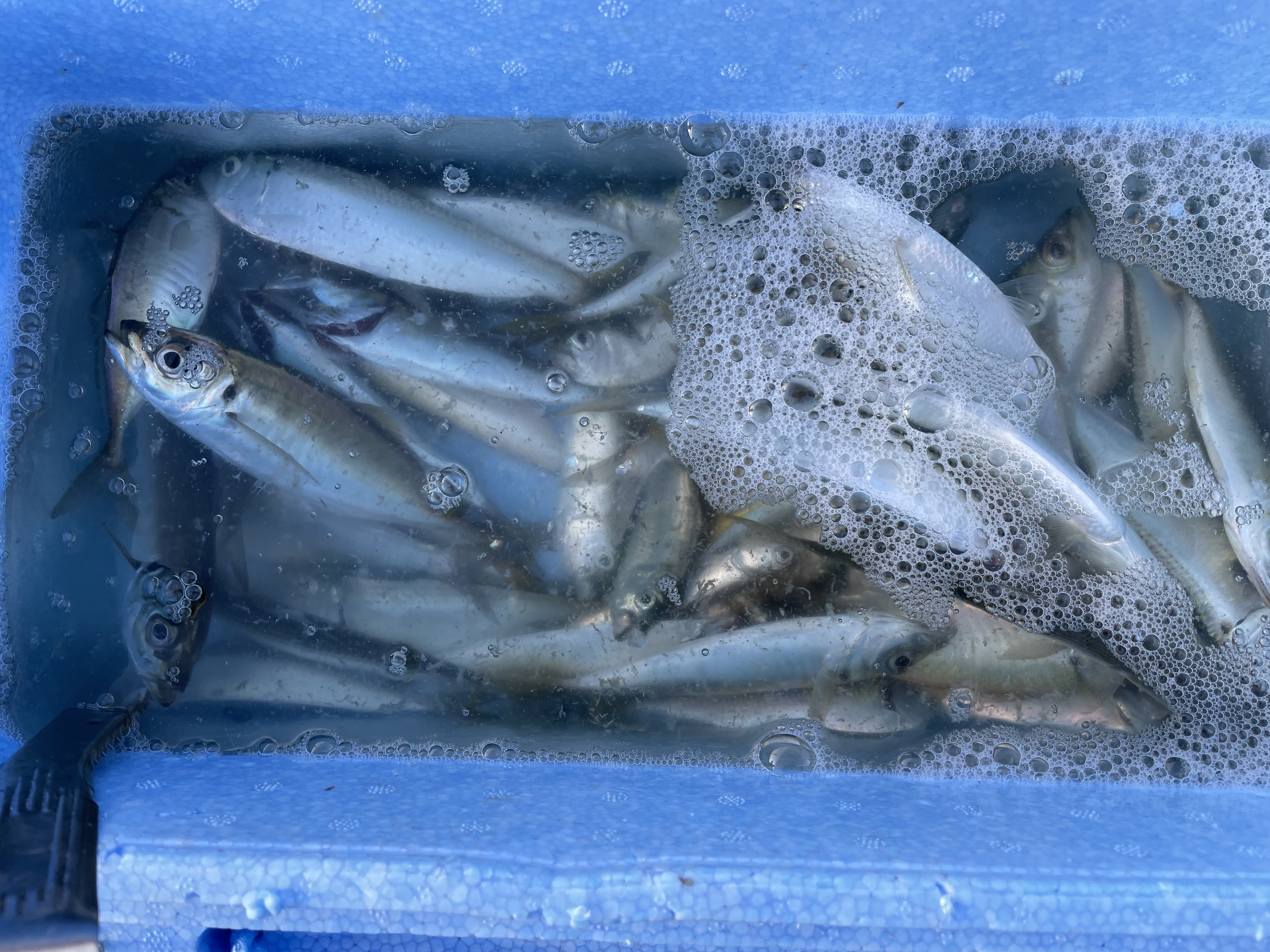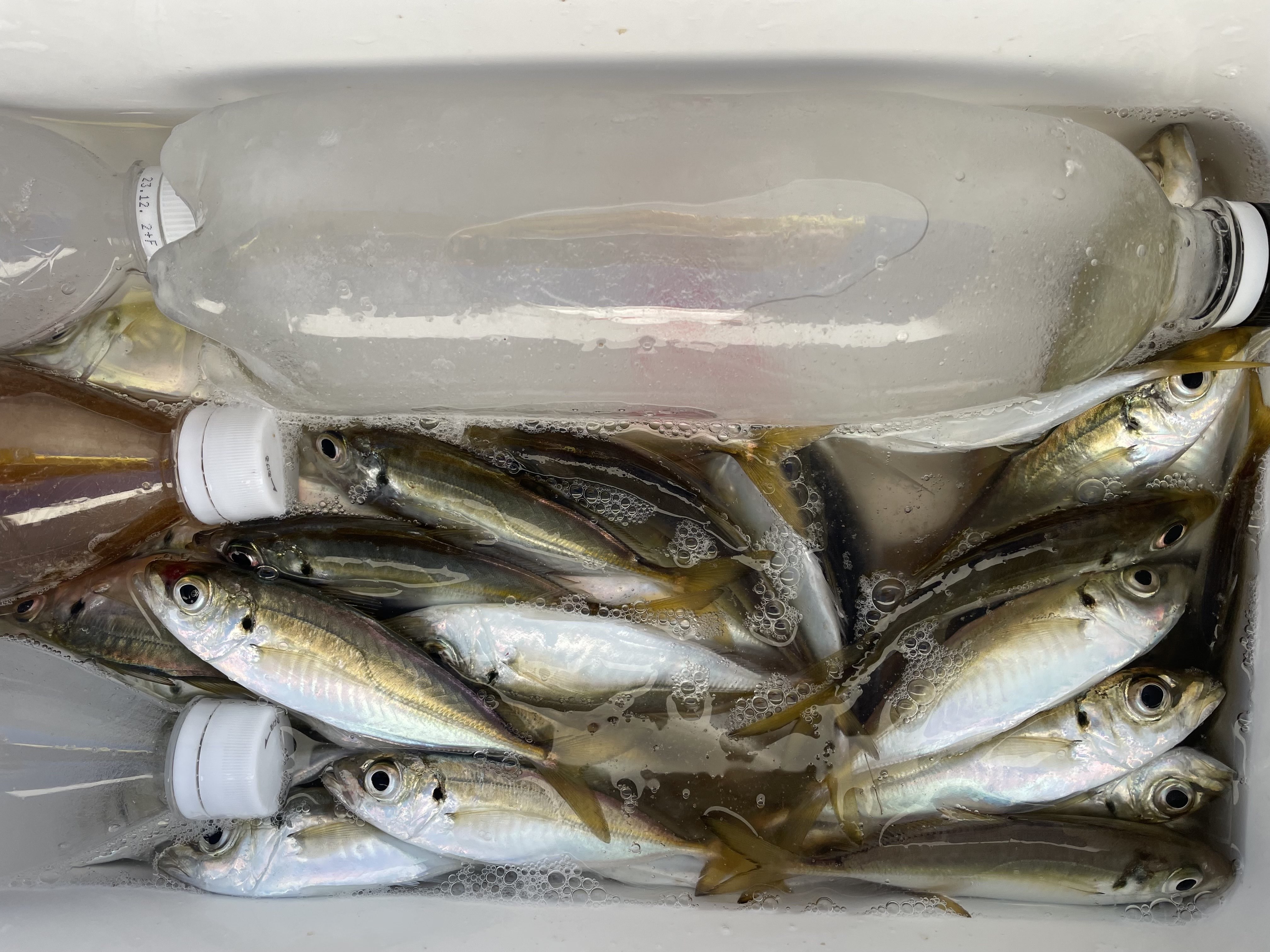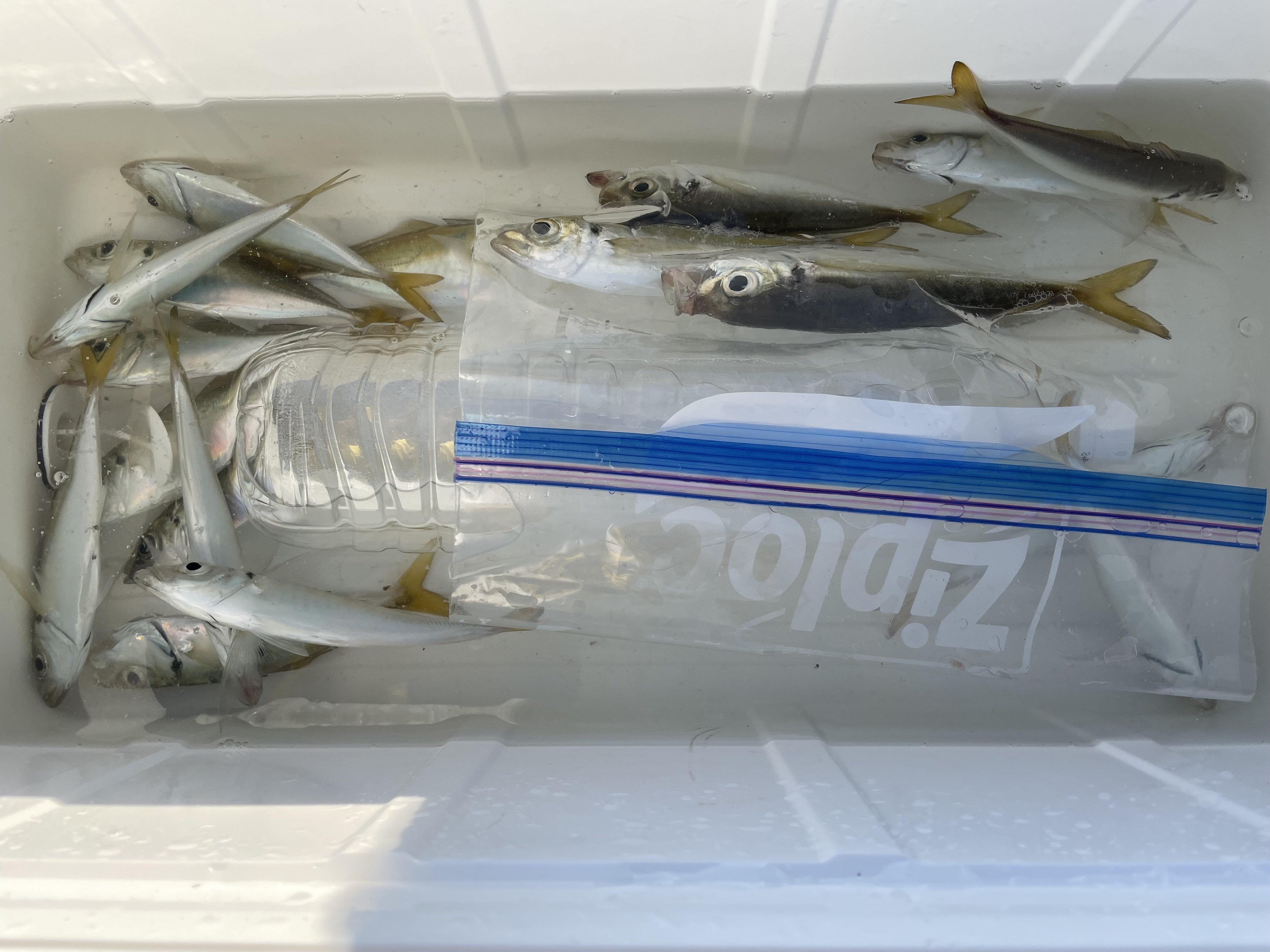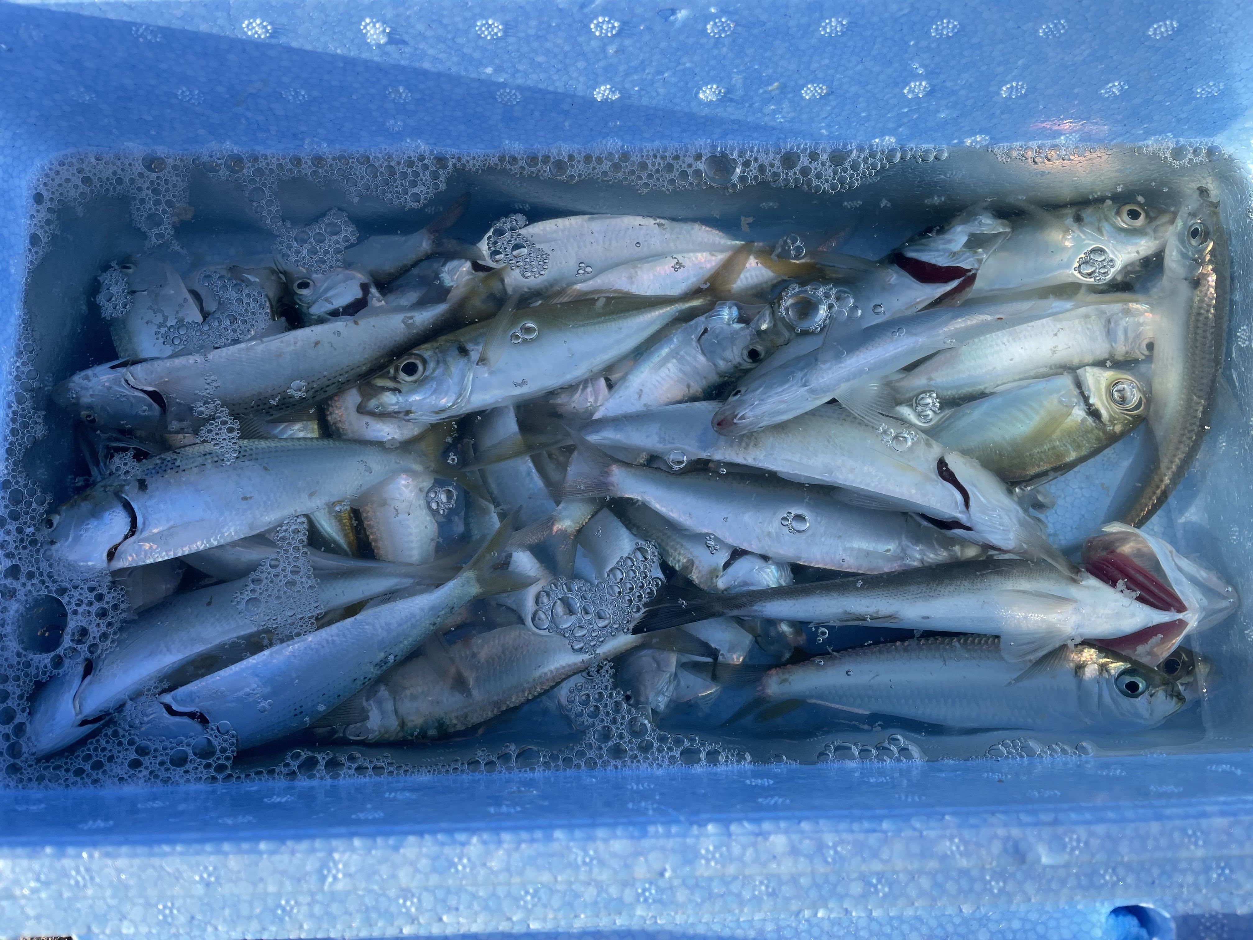 サビキ釣りでは早朝にアジ、コノシロが少し釣れてサッパ多めの釣果になっています。