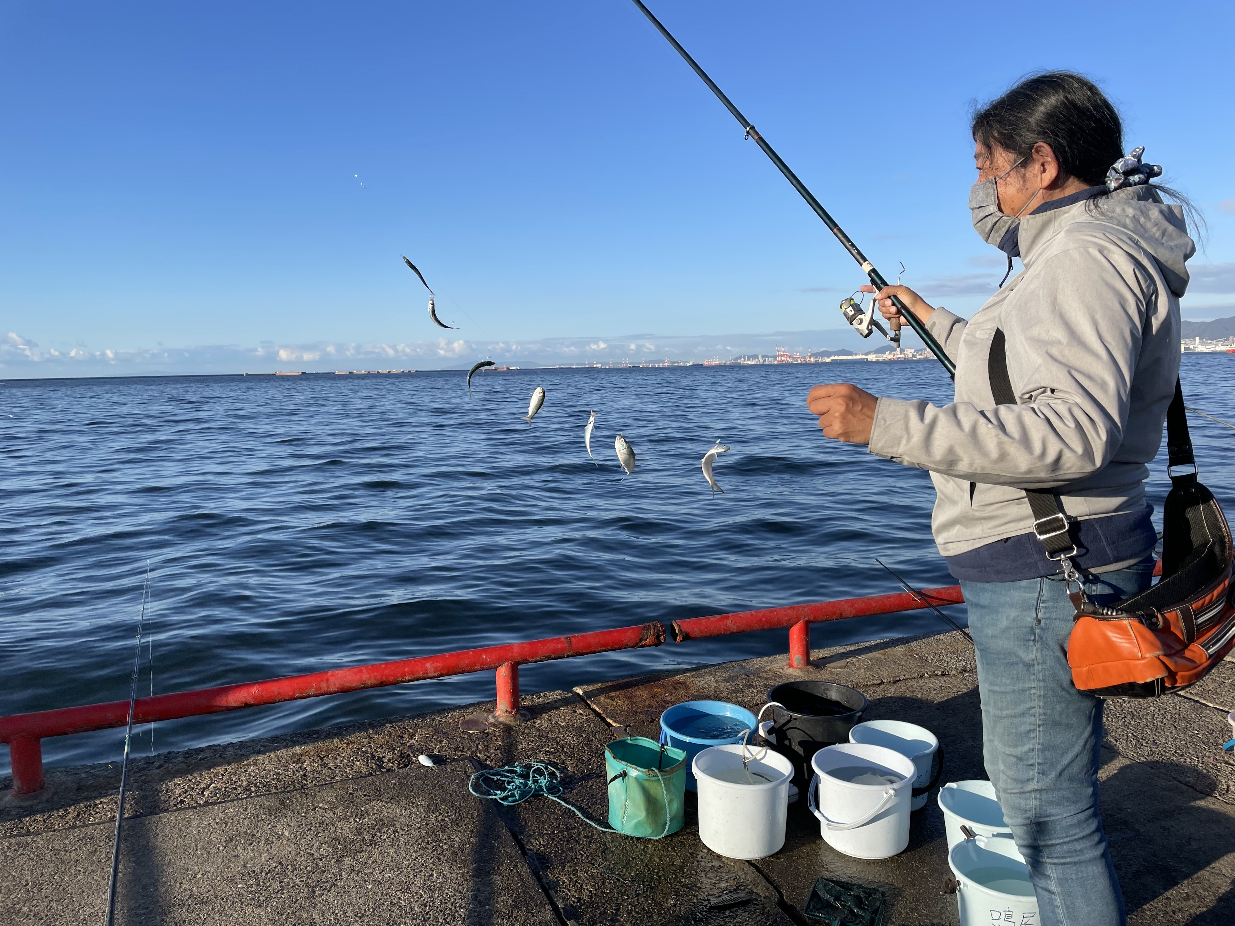 早朝はアジが好調で、皆さんそこそこの数を上げておられました。その後はサッパやコノシロに変わりましたが、こちらも好調で、晩ご飯のおかずには充分な位釣れています。