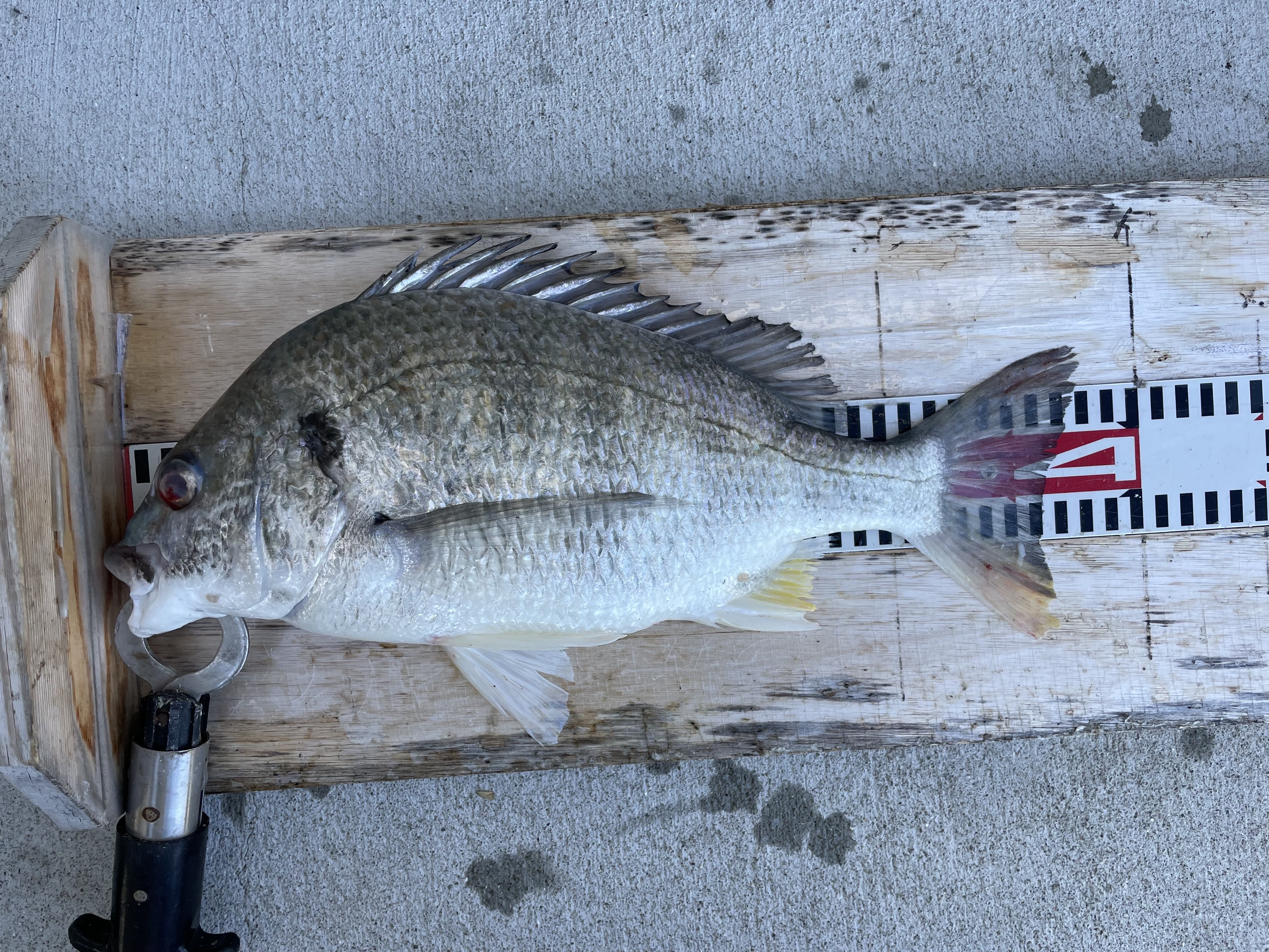 フカセ釣りでチヌがオキアミ餌で釣れています。