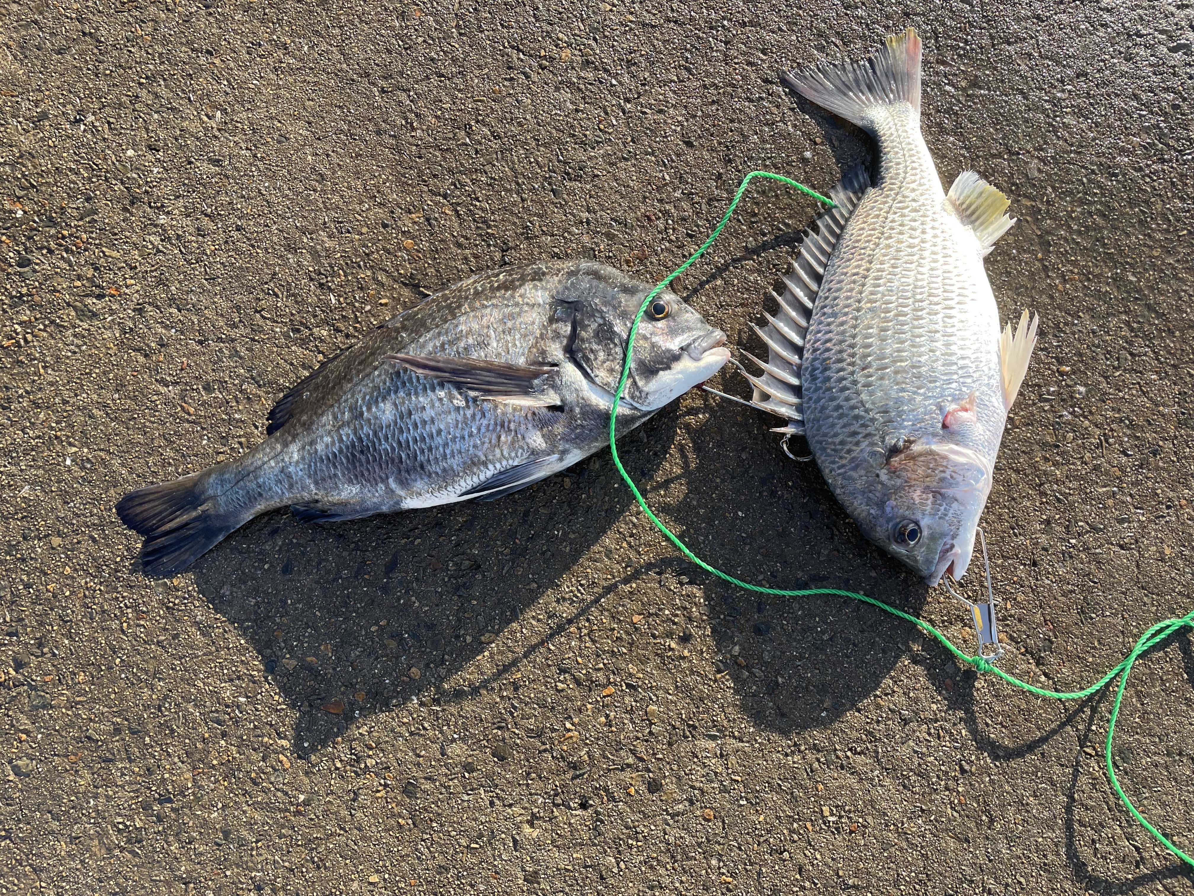 午後以降にチヌ1匹とアジが数匹釣れました。日没後にガシラも上がっています。