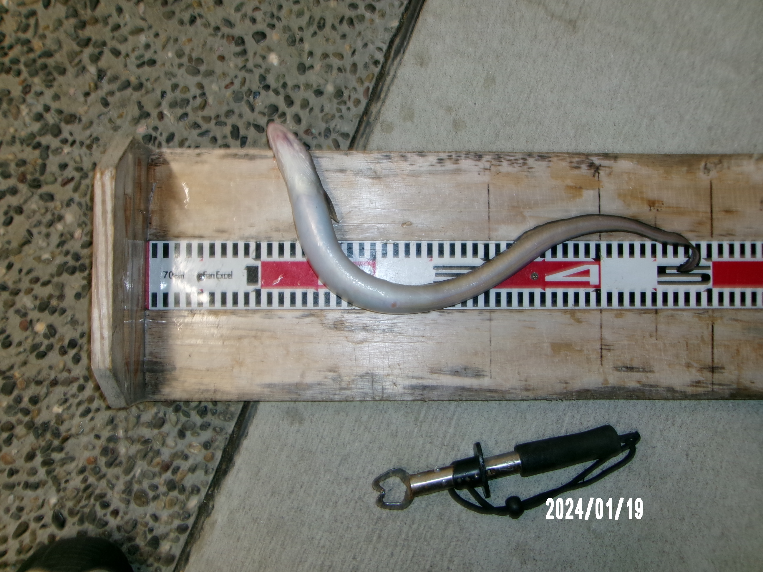 18時頃、ハゼ22㎝が釣れました。餌は、イソメです。アナゴも釣れました。大きさは52㎝で、エサはキビナゴです。