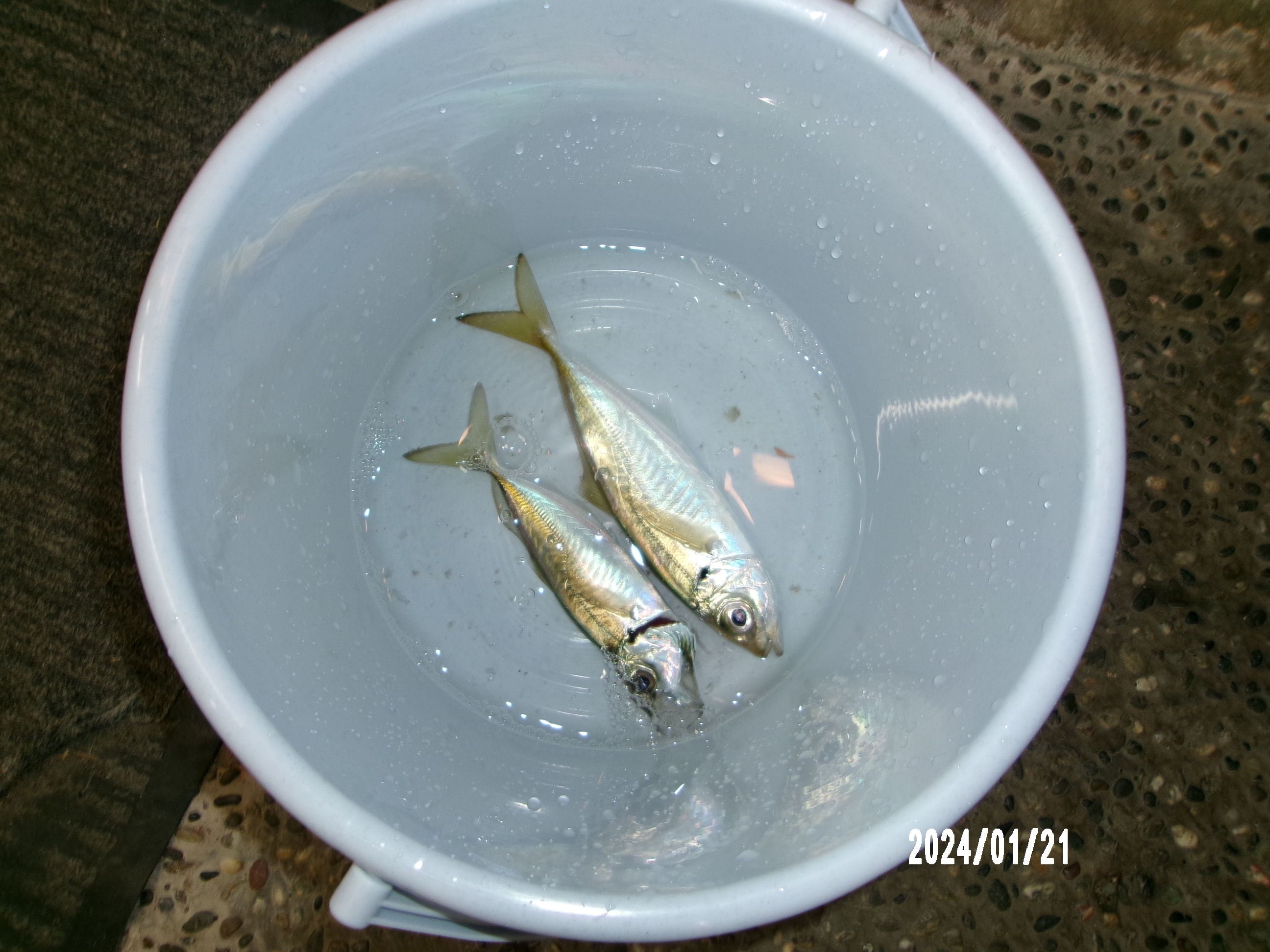 冷たい海ですが、夕方少しだけ、アジの群れがあり、アジが上がっています。大きいのは20㎝を越えたのもあり綺麗なアジです。