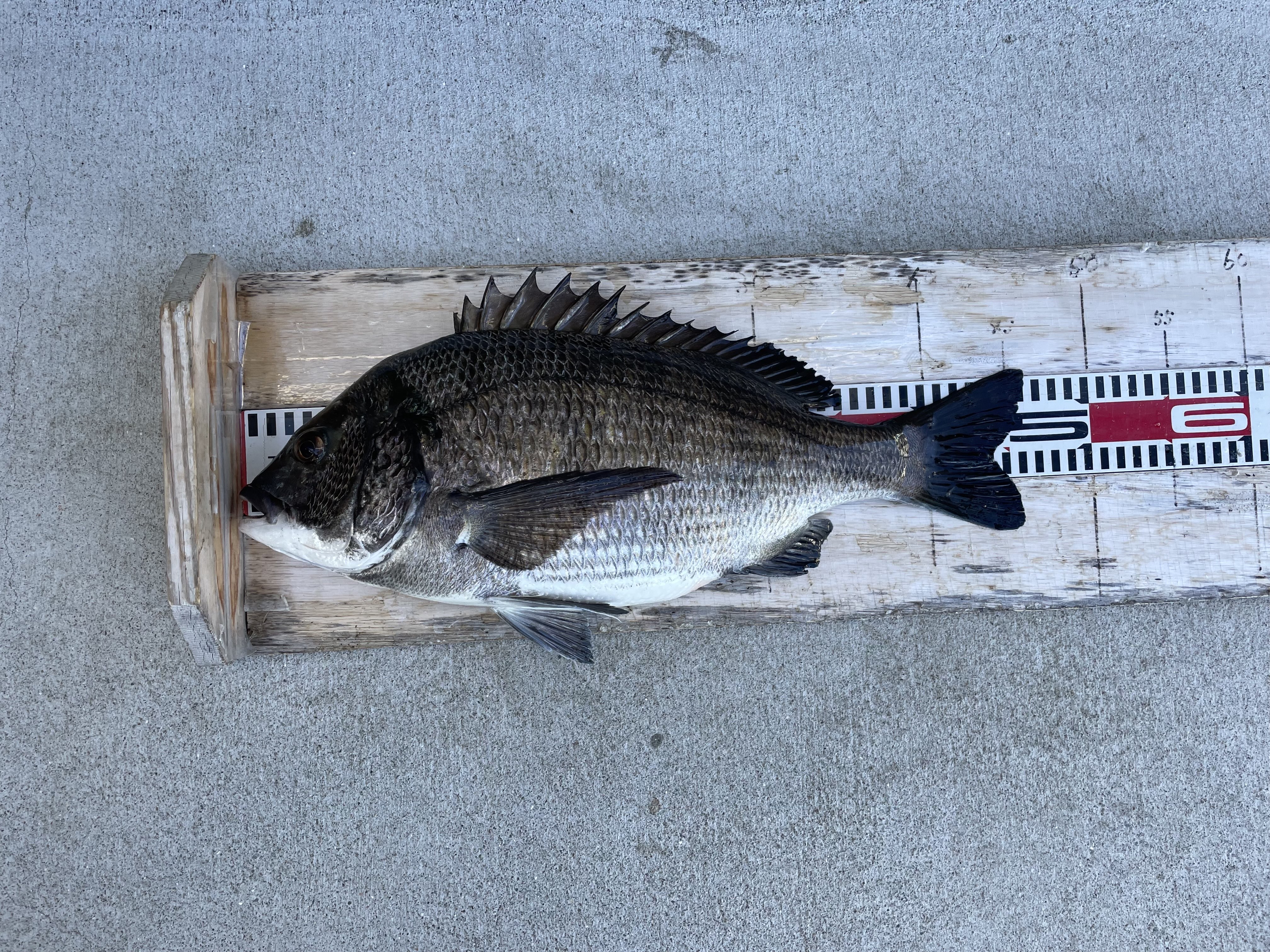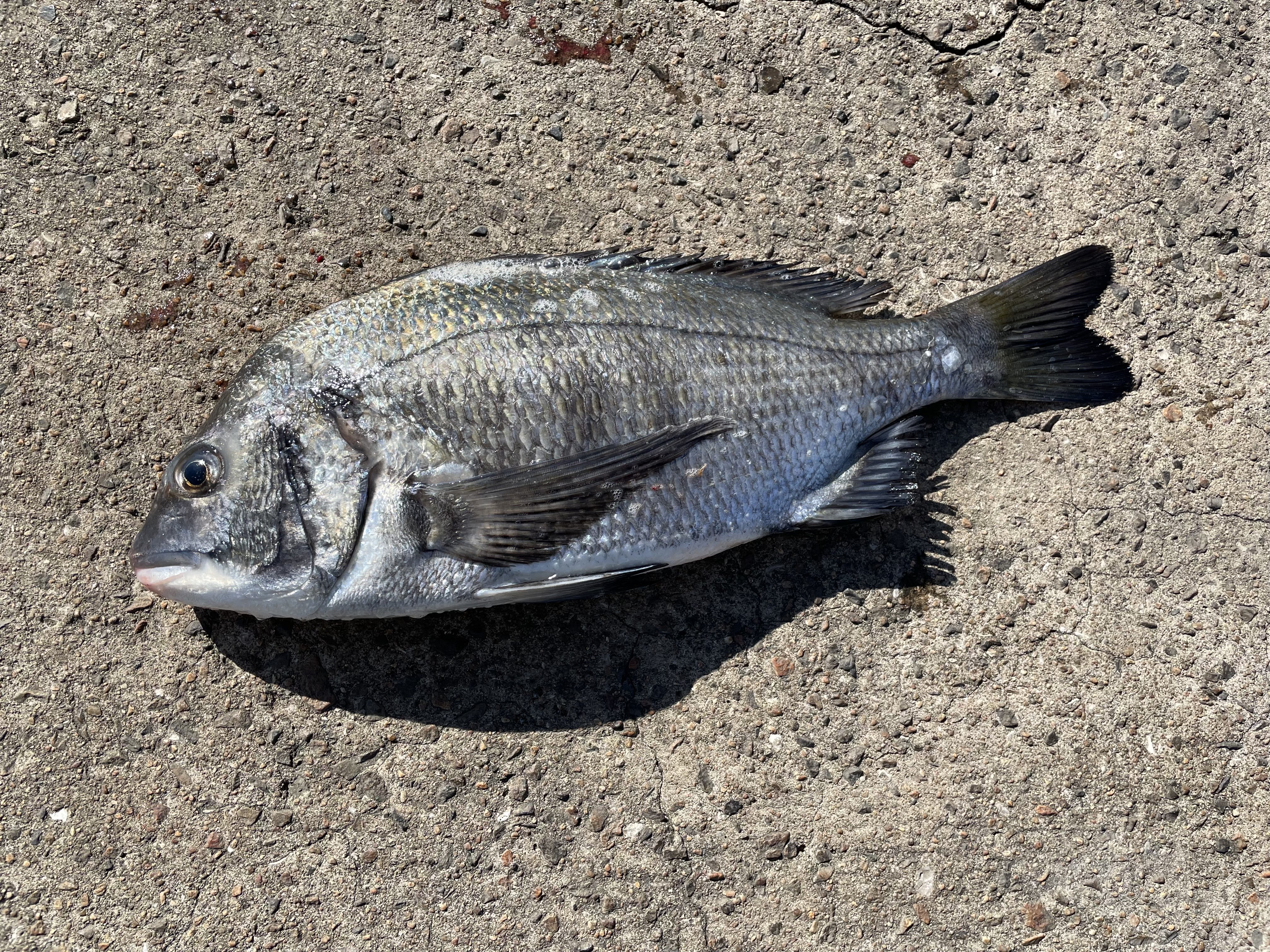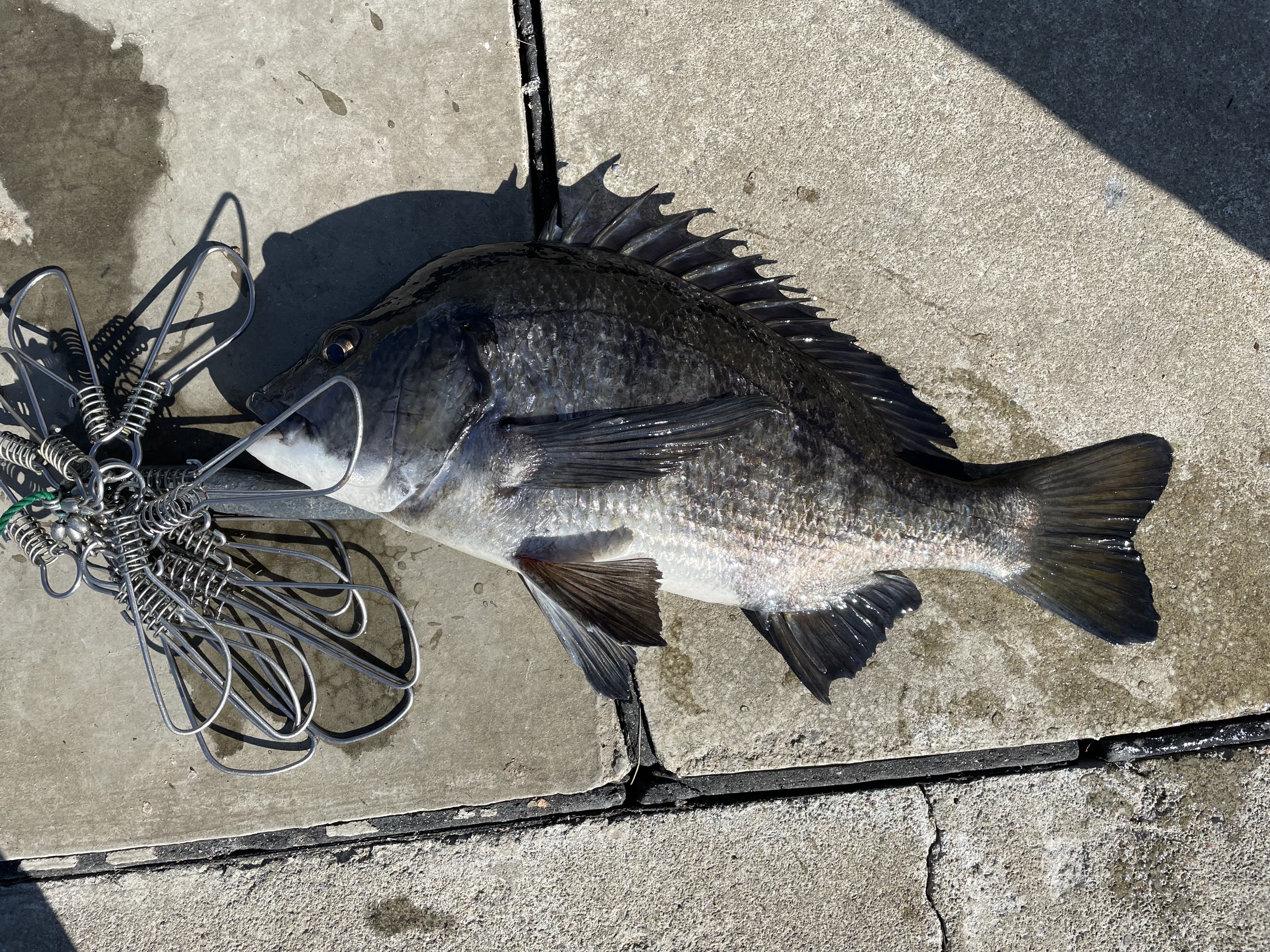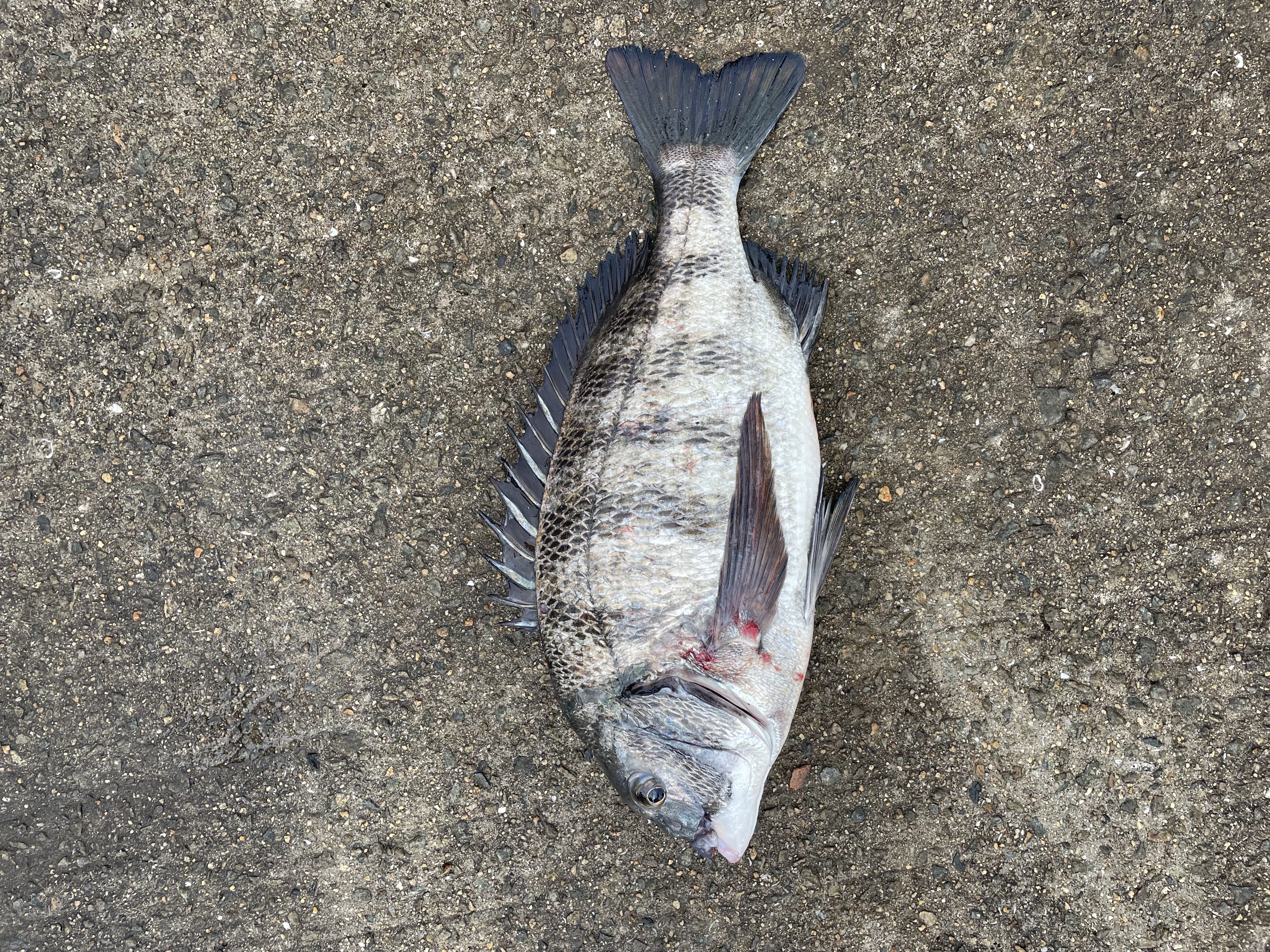 15時頃にチヌ43㎝がフカセ釣りで釣れました。エサはオキアミです。 -