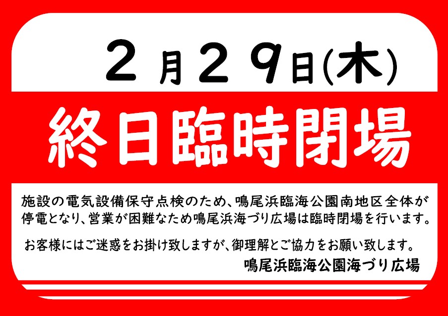 2/29(木)は終日臨時閉場です。
