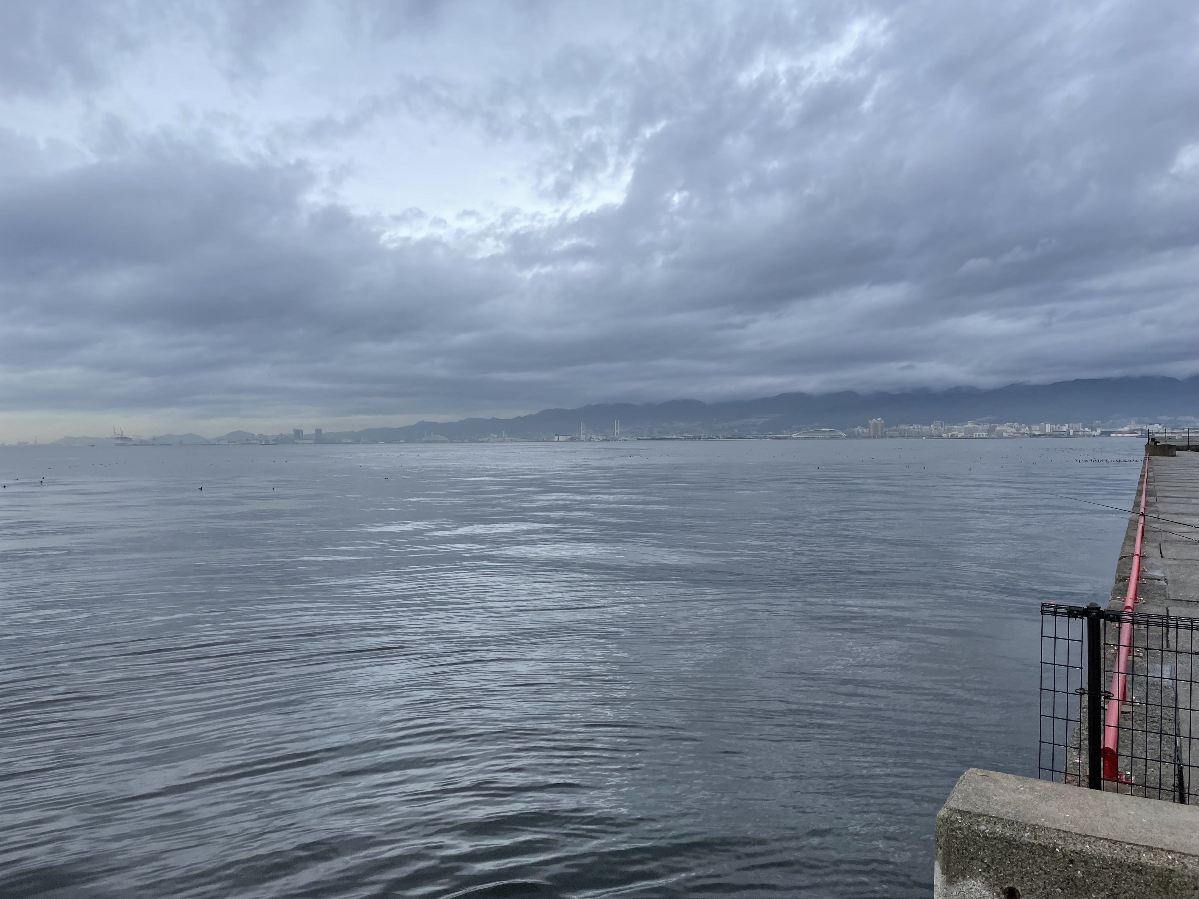 17時現在先程まで一人のお客様がおられましたが今は誰もいない寂しい鳴尾浜です。釣果も何もありません。