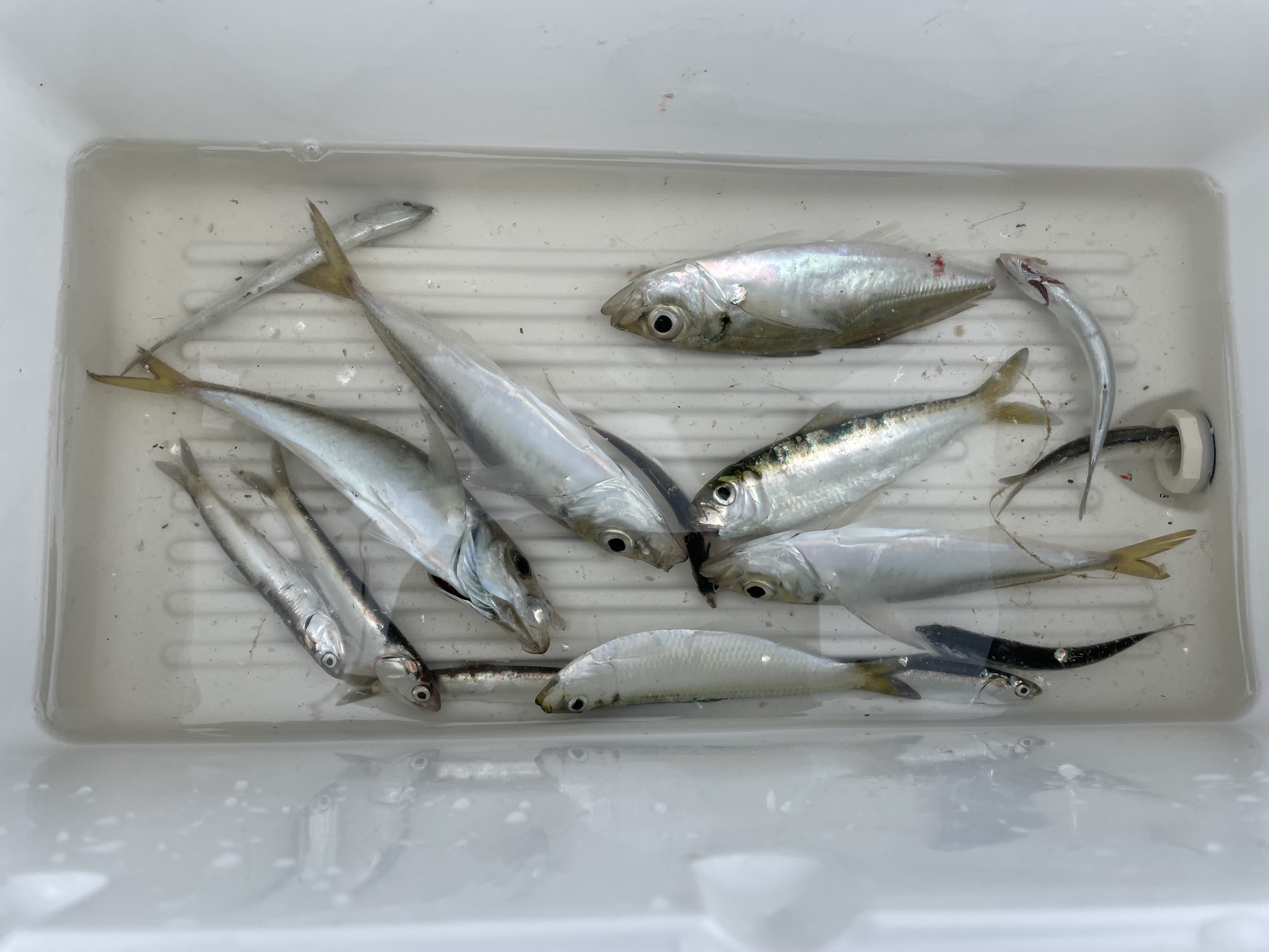 カタクチイワシとサッパはポツリポツリと釣れてはいますが、勢い良く連掛けの様子は見られません。