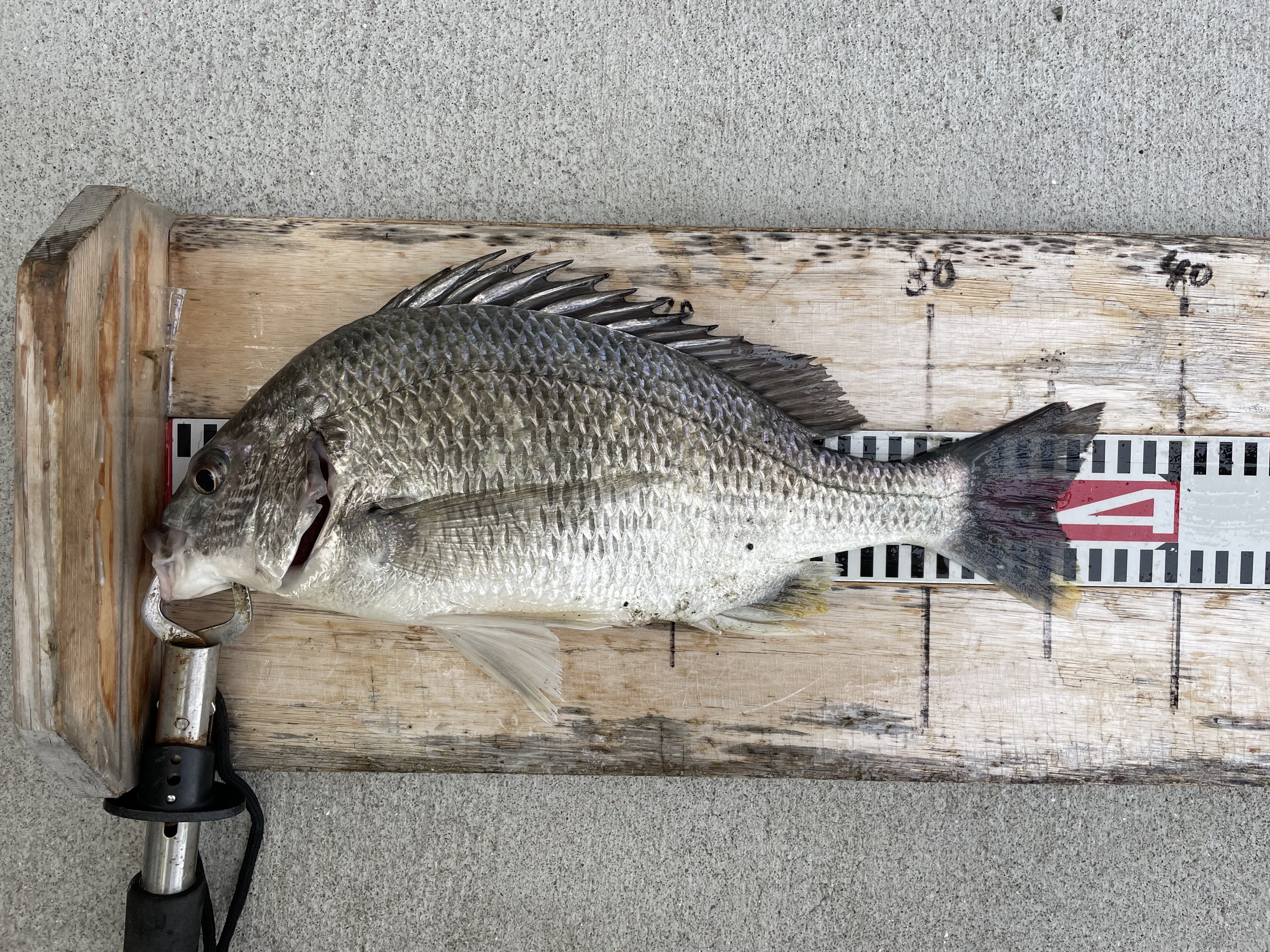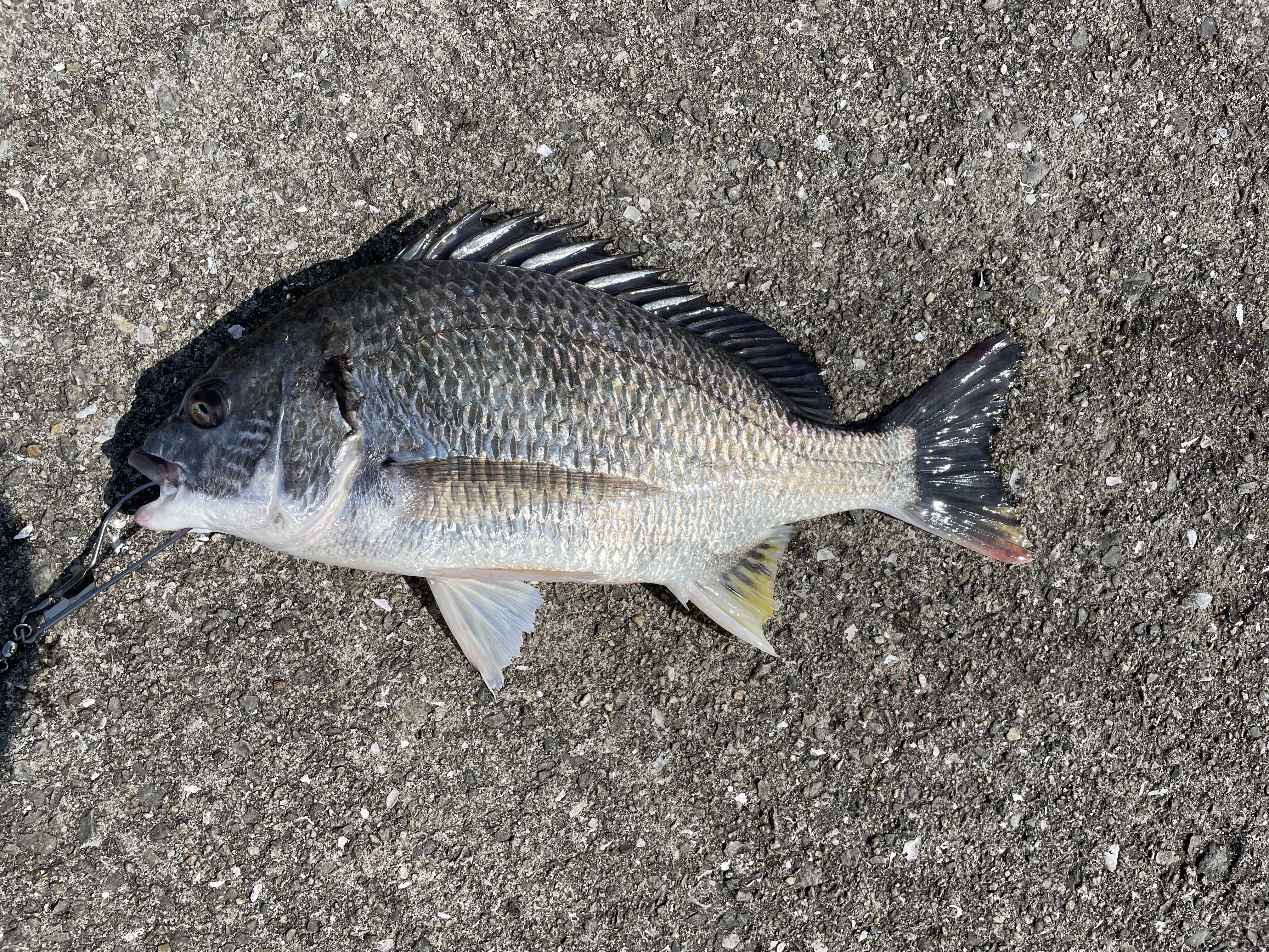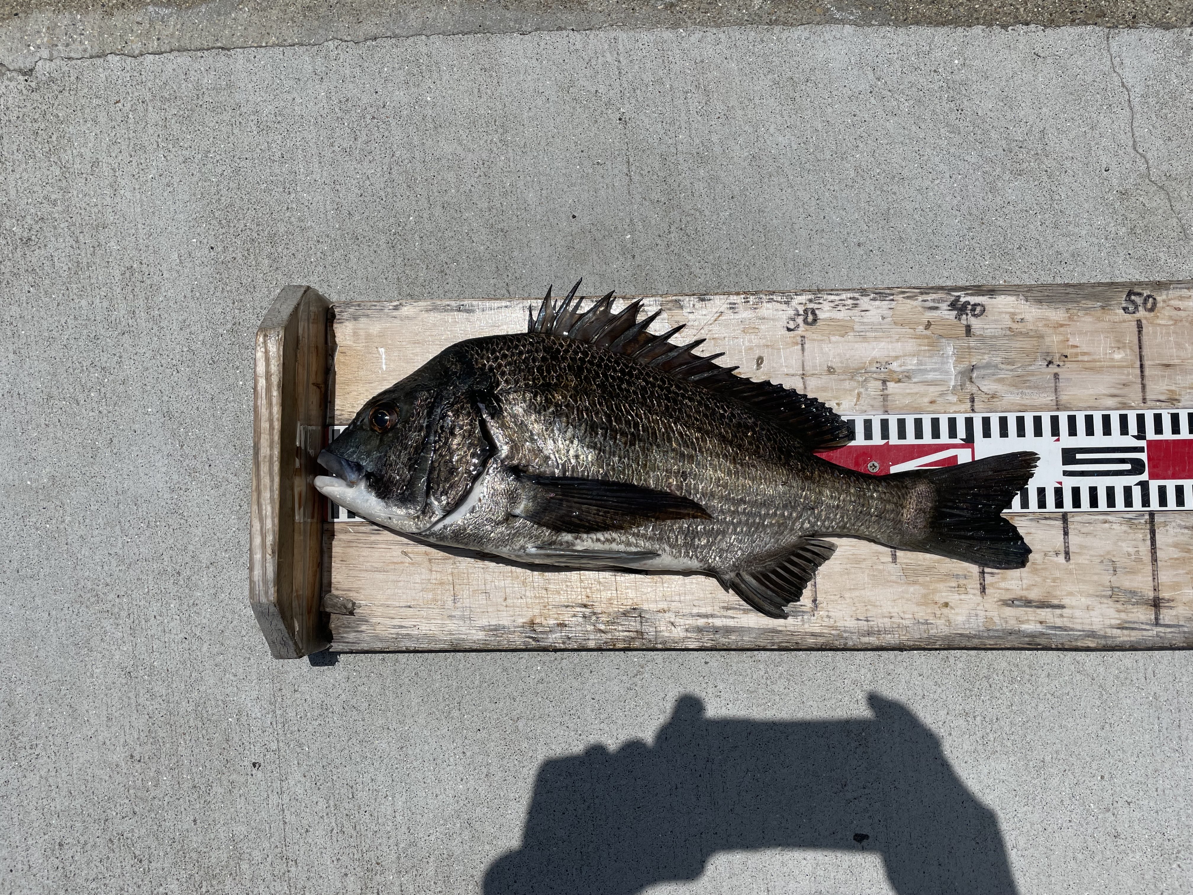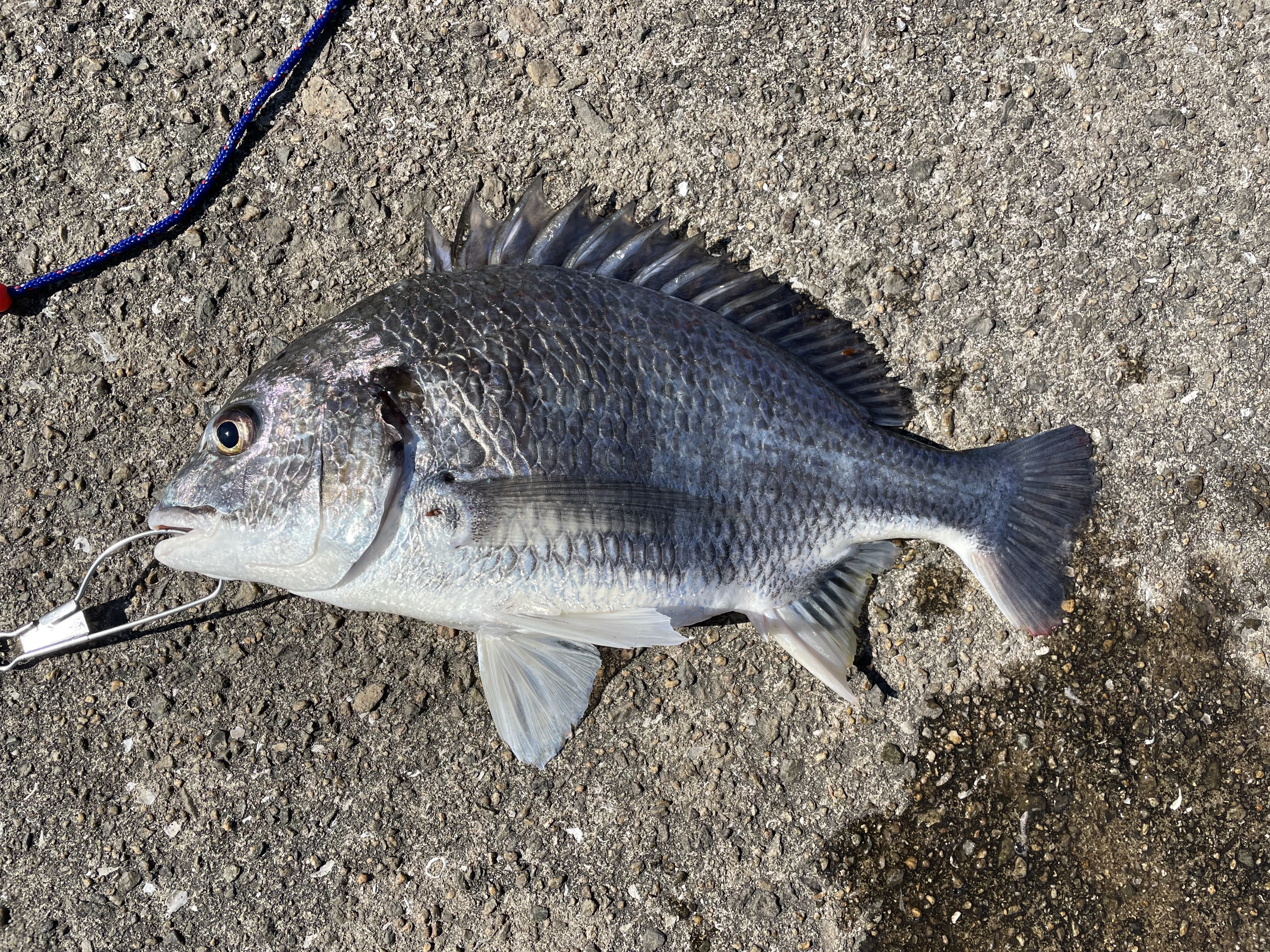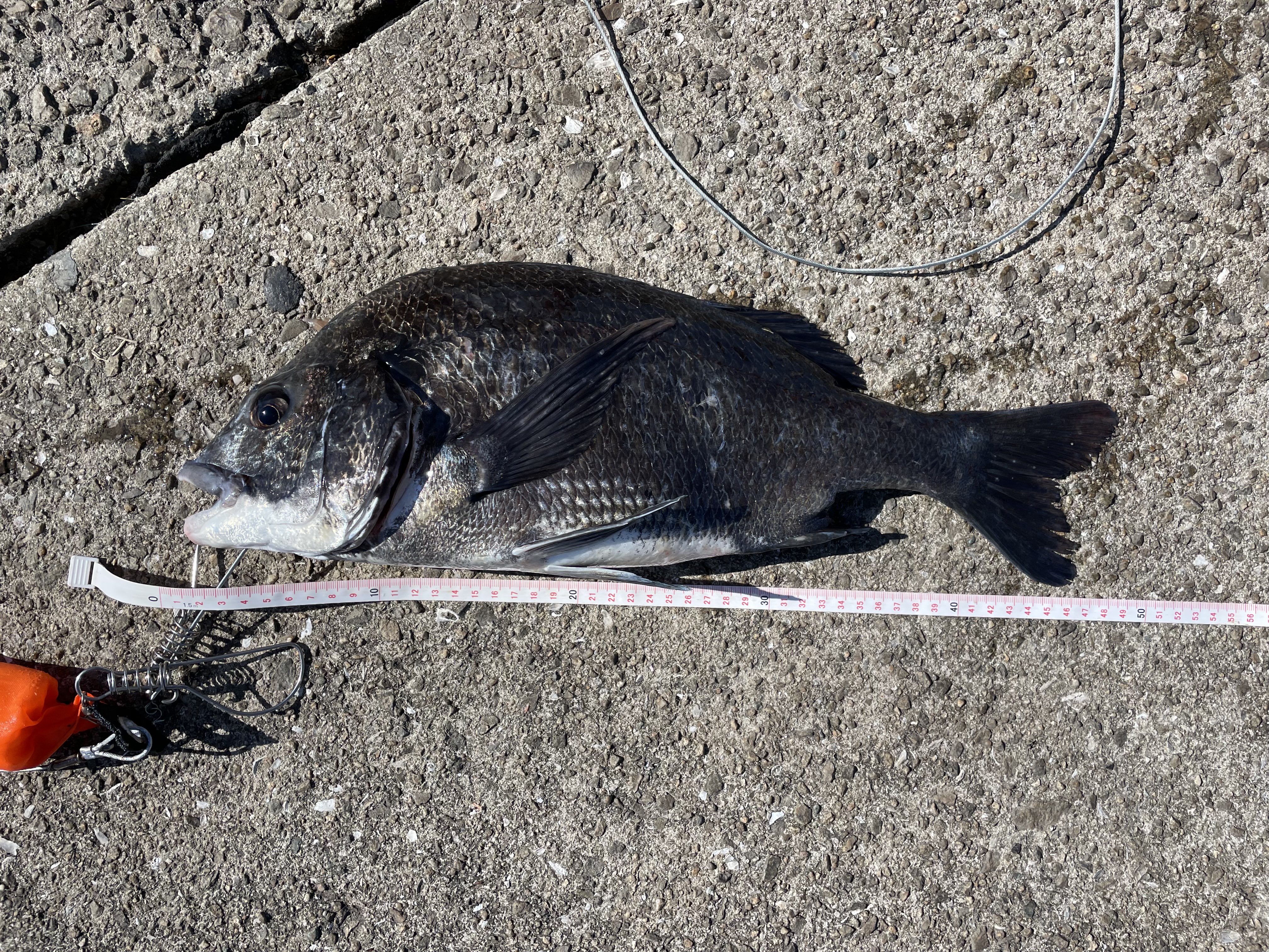 午後2時半ごろ、オキアミフカセ釣りでチヌ47cmあがっていました。