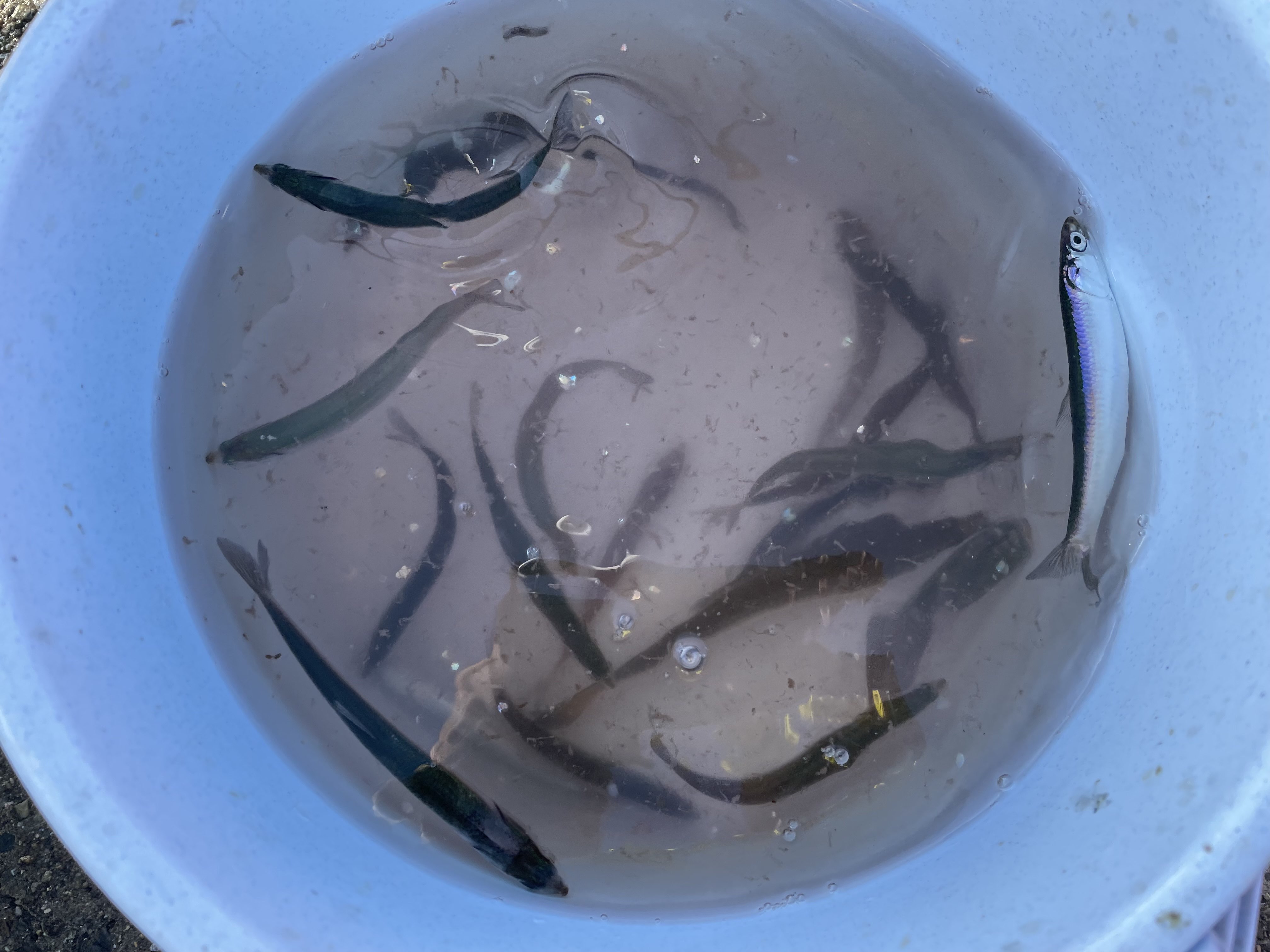 サビキ釣りもだいぶおとなしくなり、たまにカタクチイワシがチョロチョロっと釣れる程度で、たくさん釣れている印象はありません。ちょっと寂しいですね。