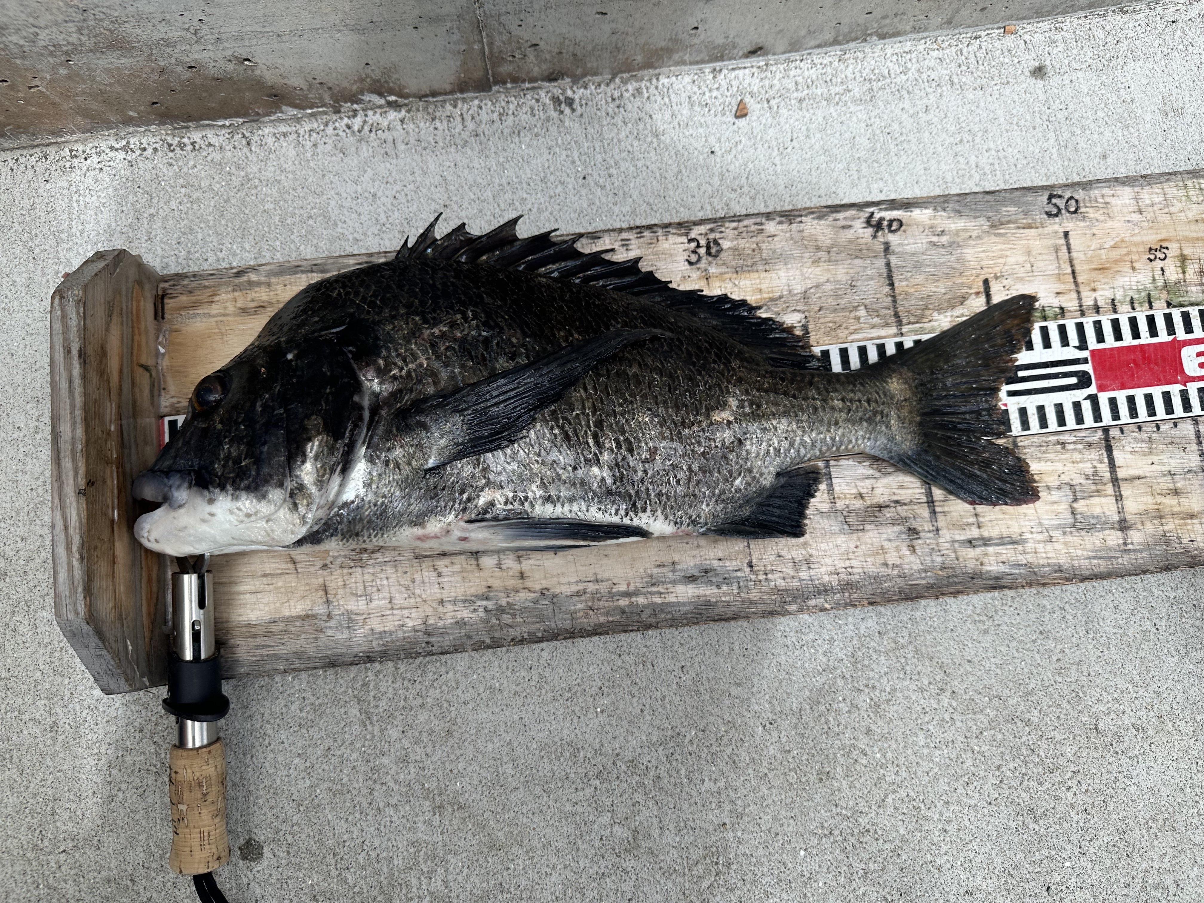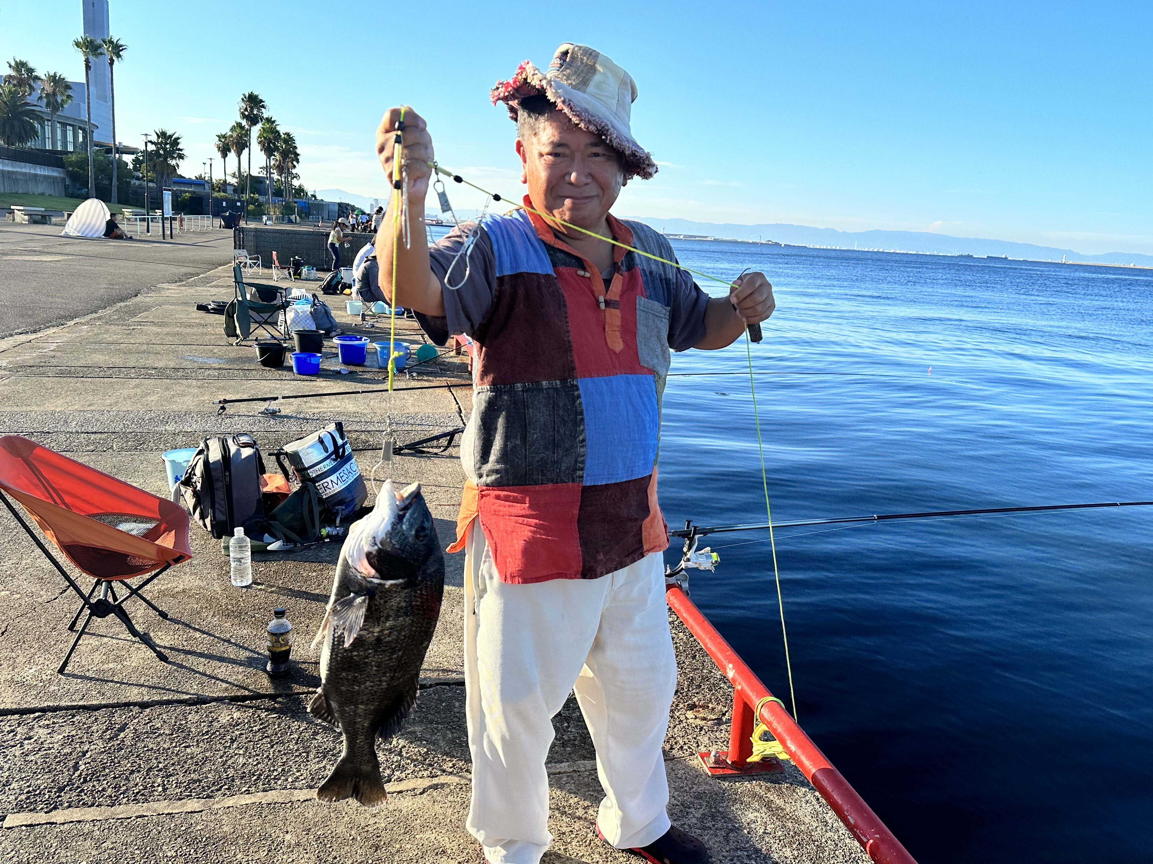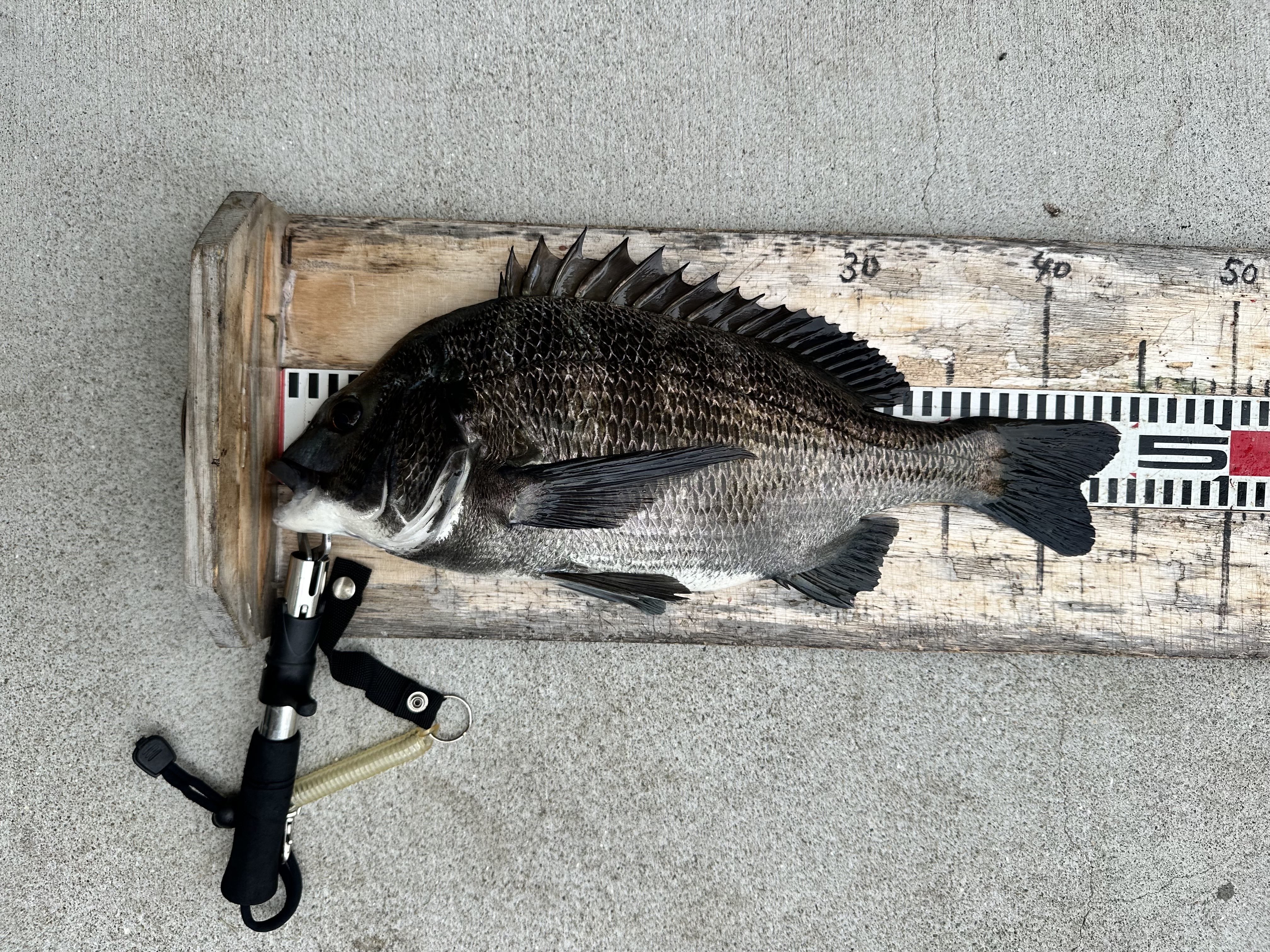 エビ撒き釣りのお方は、セイゴとチヌ44cmを!そしてフカセのお兄さんがチヌ30-45cmを2枚13時までにあげられました!お見事でございます!