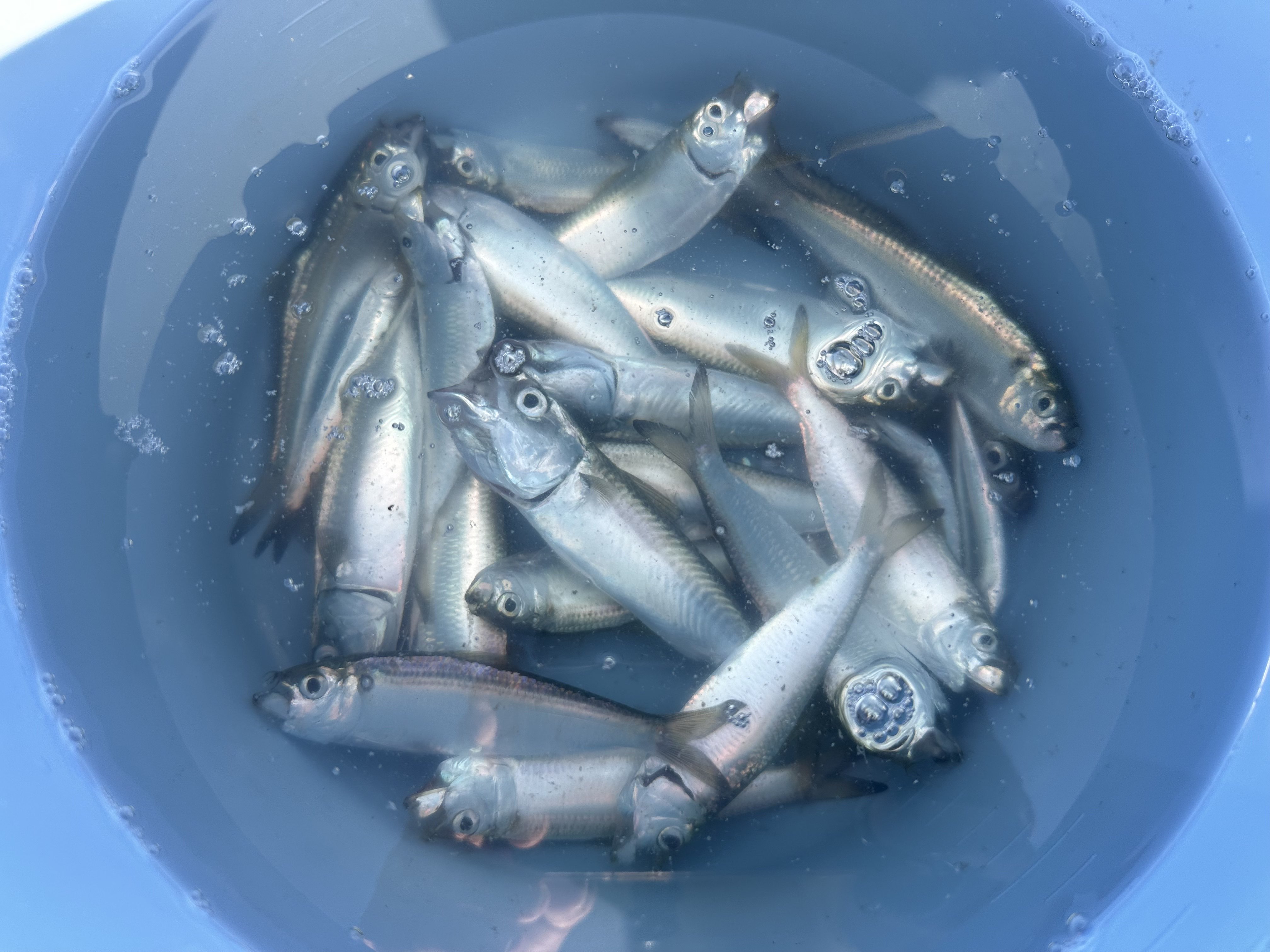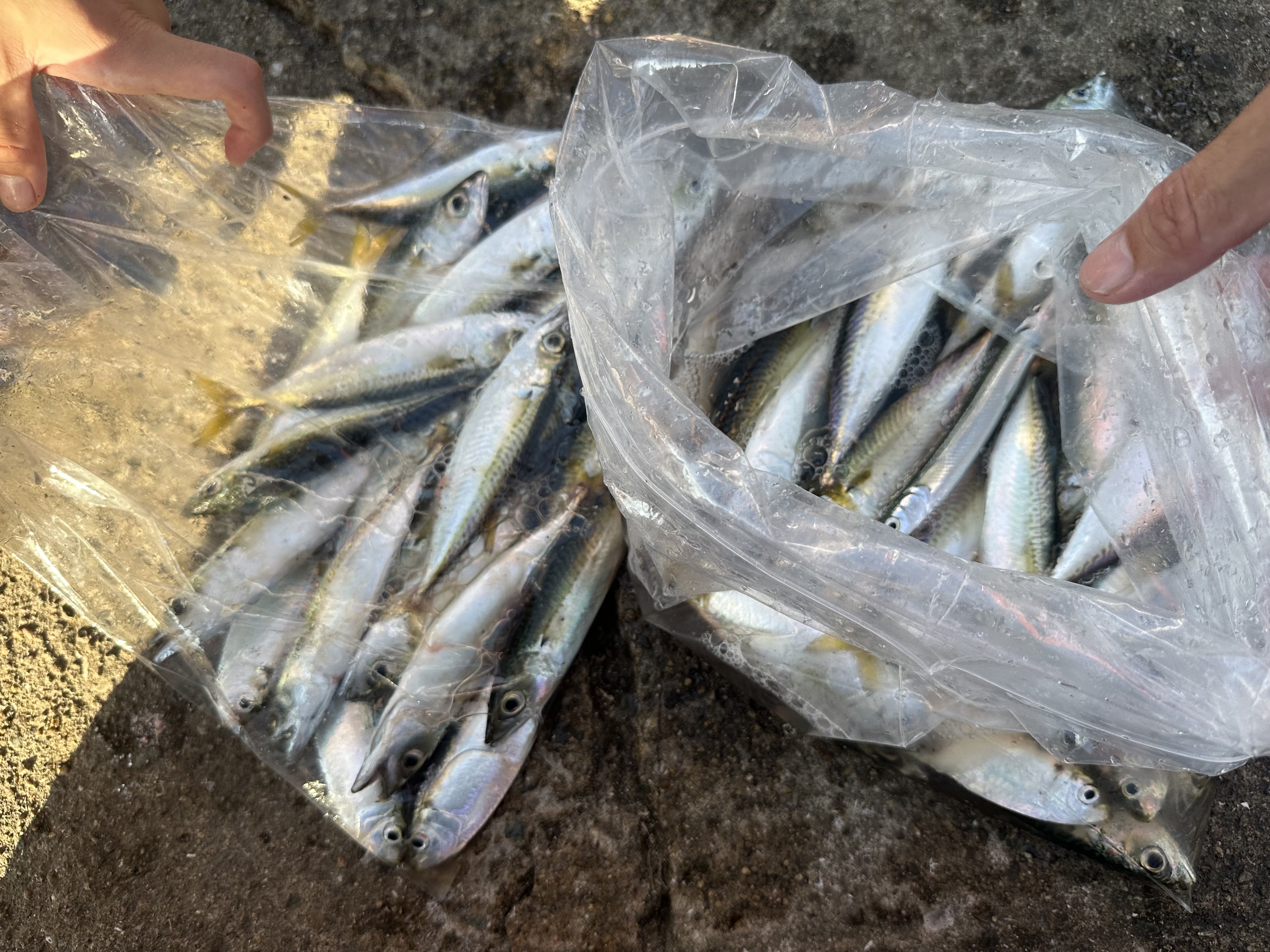 マイワシはサイズもよく、15cmほどのものが釣れていました。