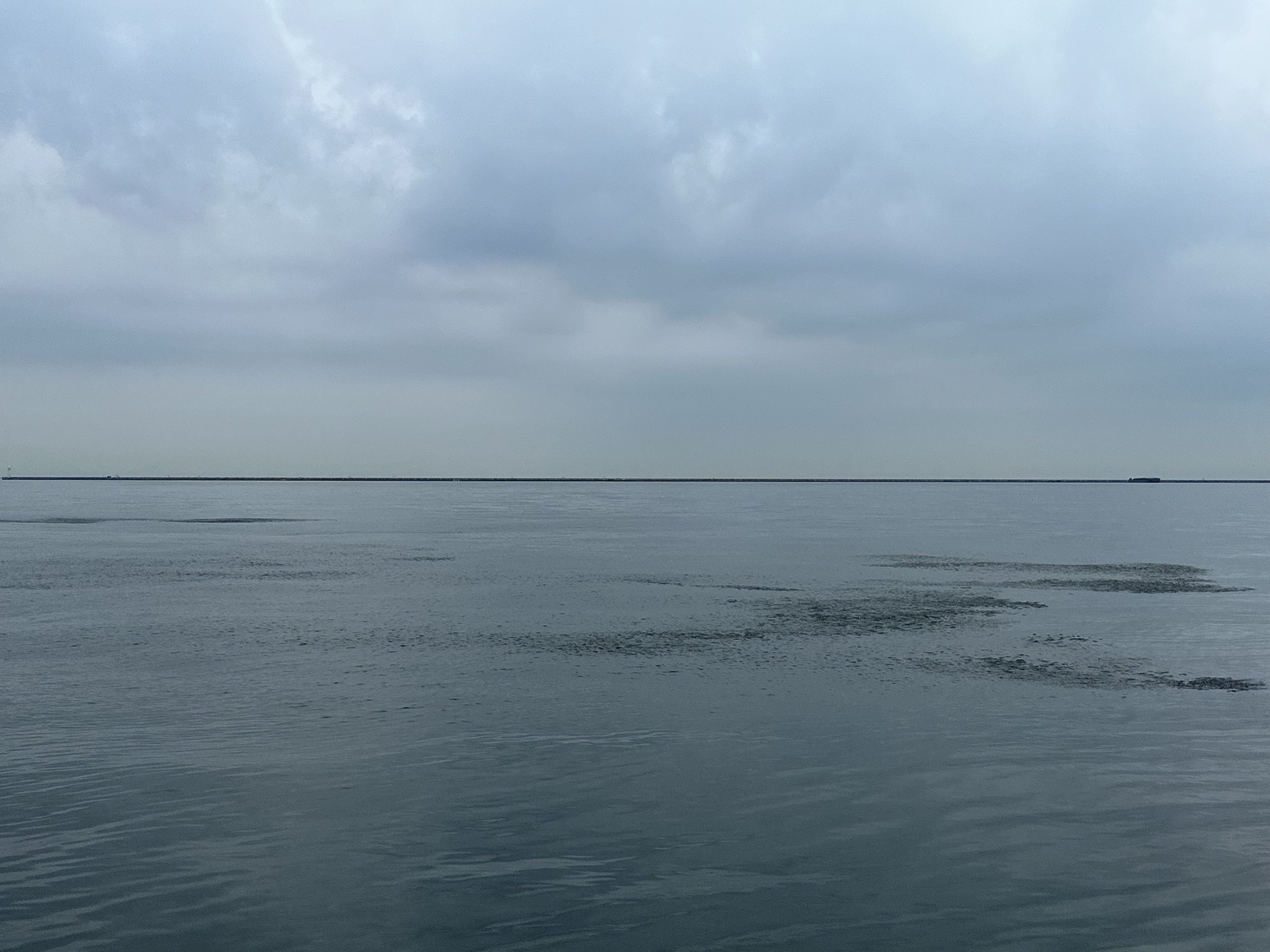 開園時、波風共に穏やかです。久しぶりの雨の朝です。