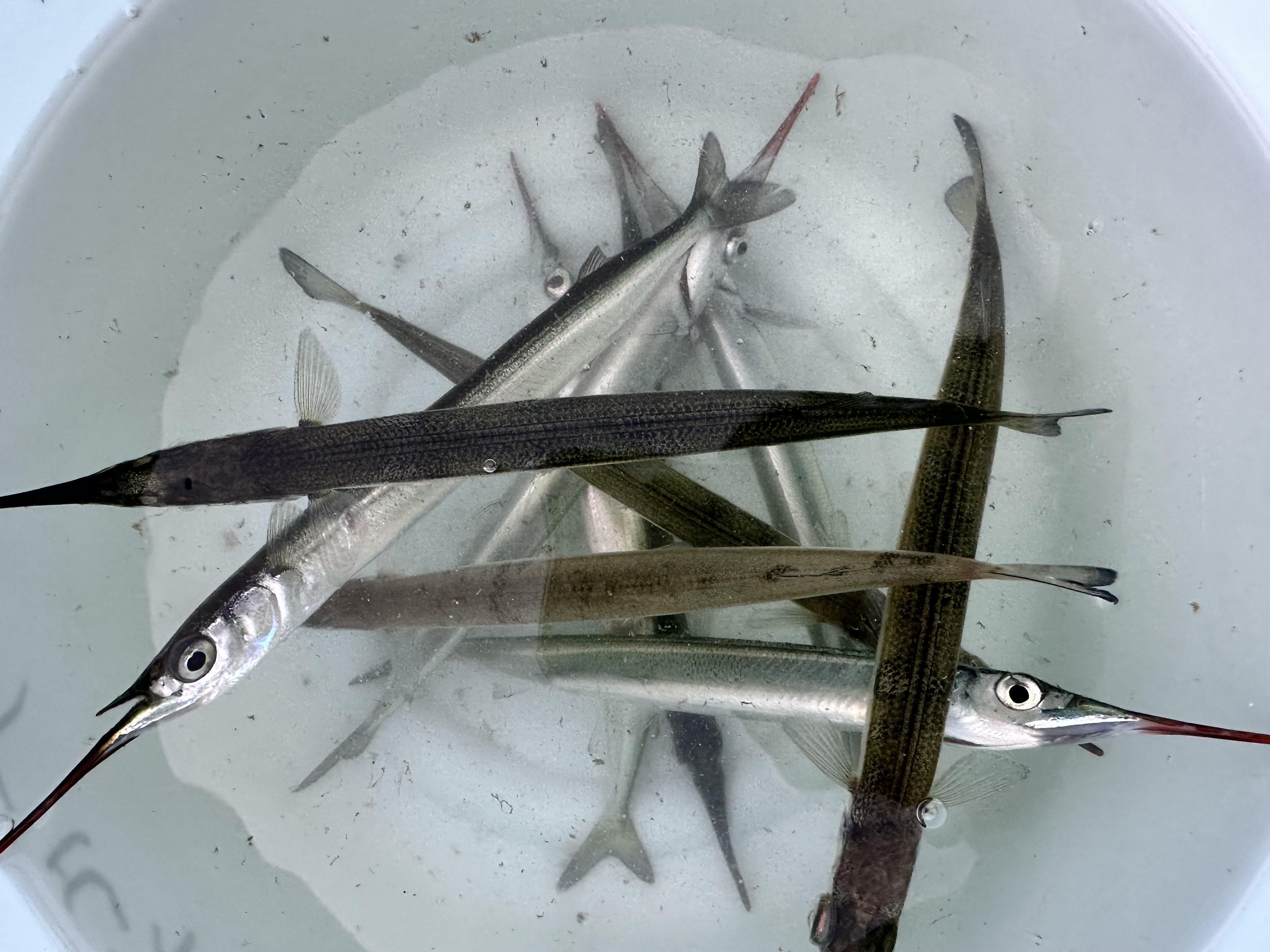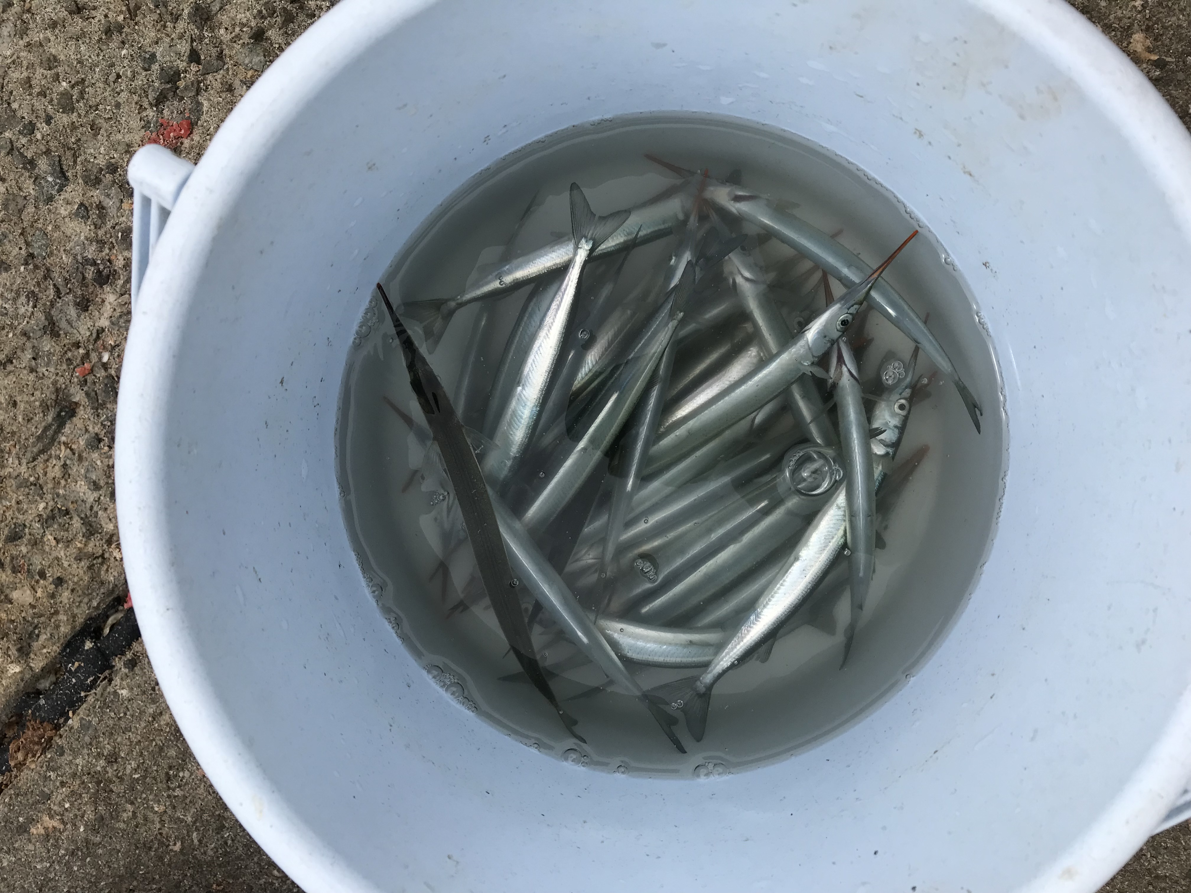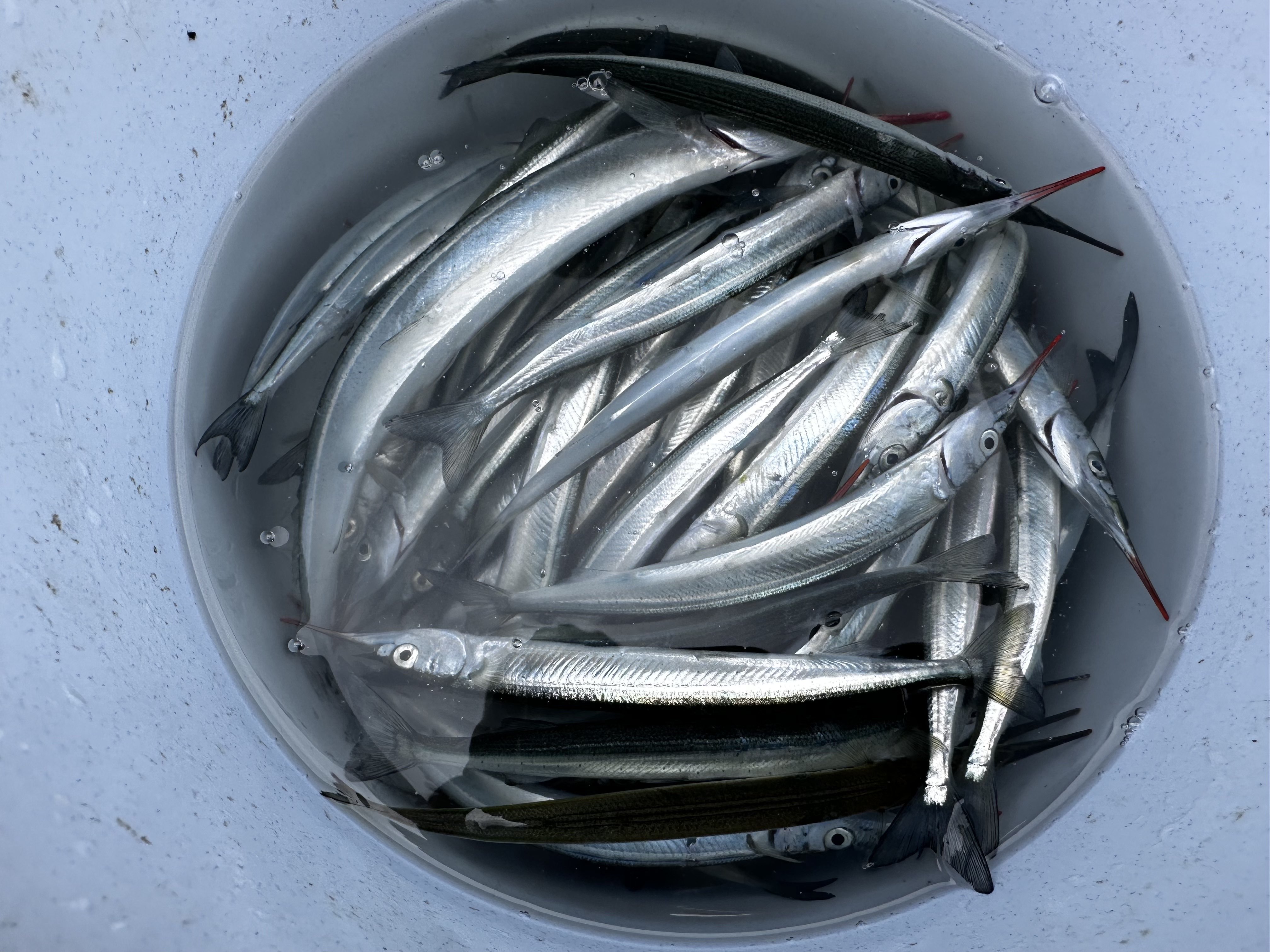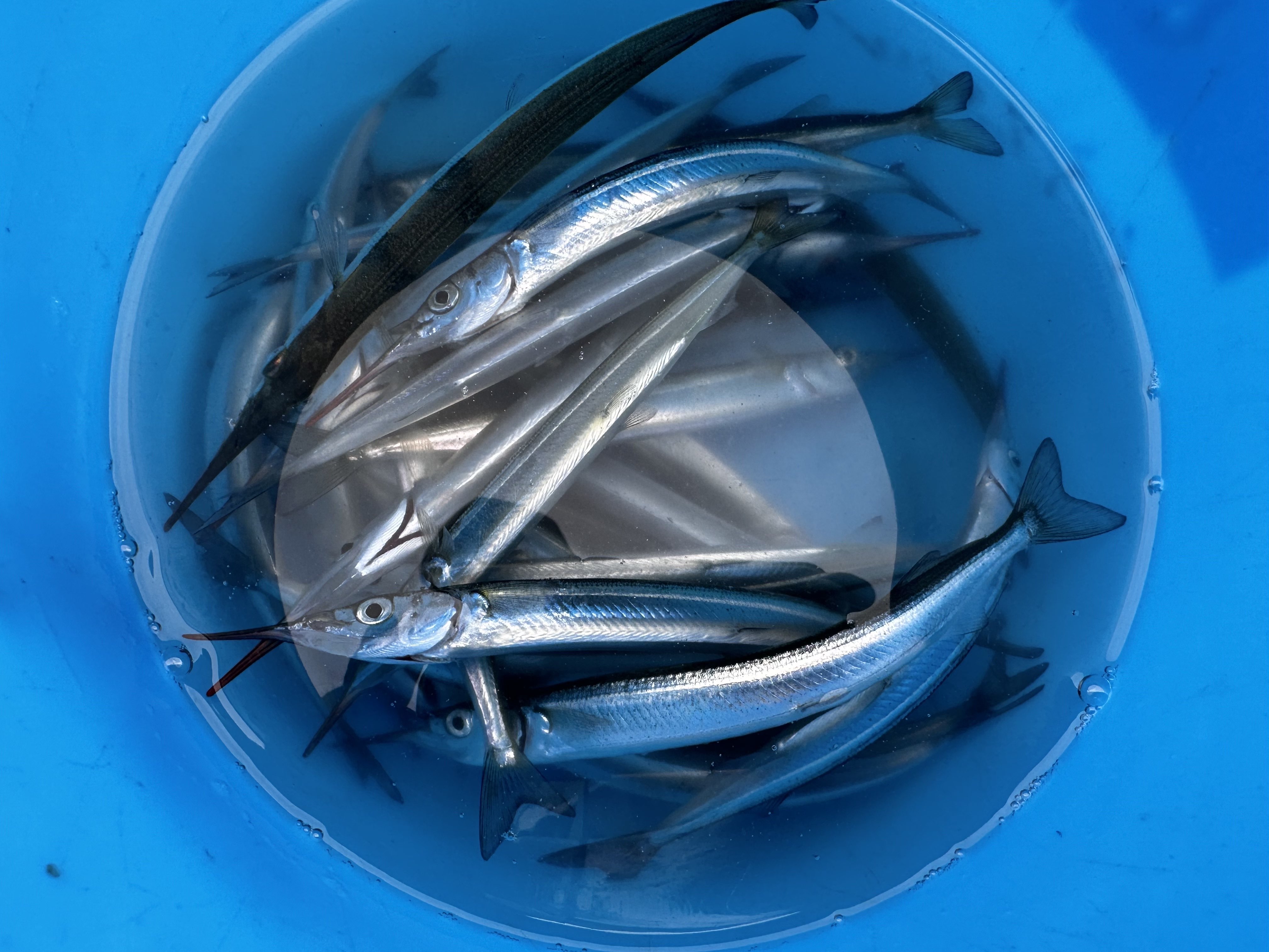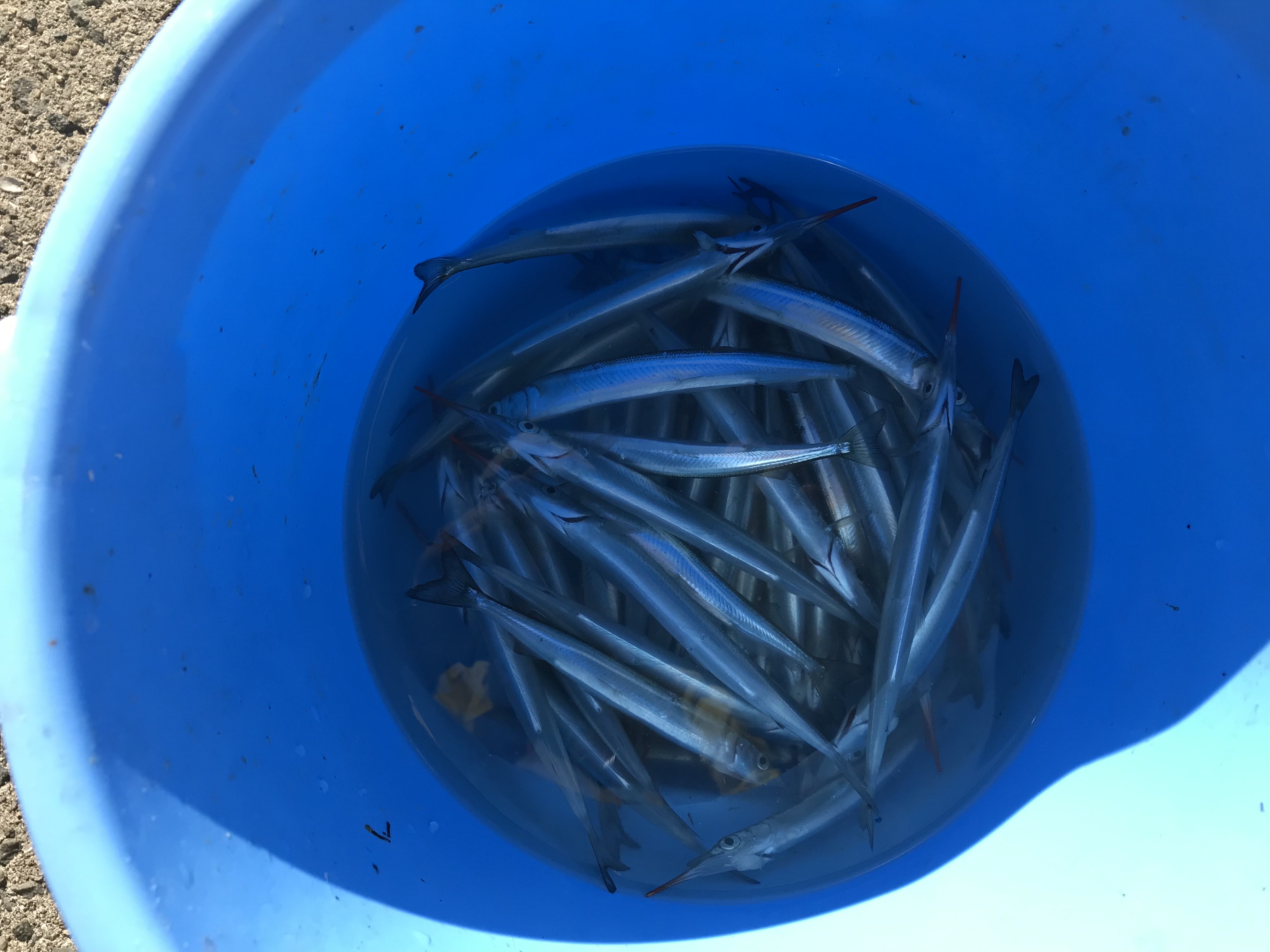 サヨリの群れの反応もないのですが、小さいものに混じって25cm程の刺身サイズのサヨリを釣った人も☆このサイズがたくさんつれるといいんですけどね