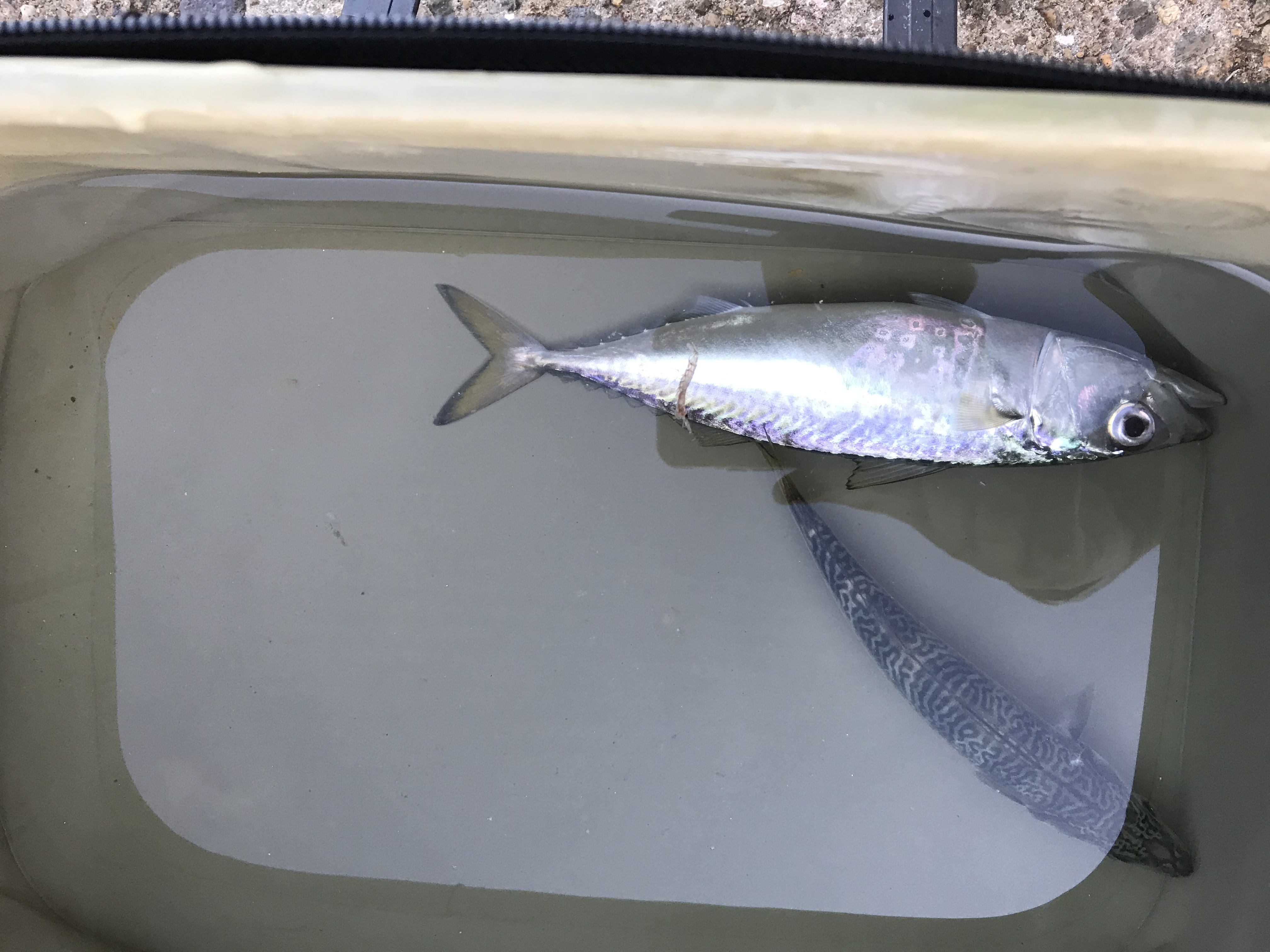 サバが少し釣れていますがサイズはまちまちで少し大きいのもいれば小さいのも釣れています。