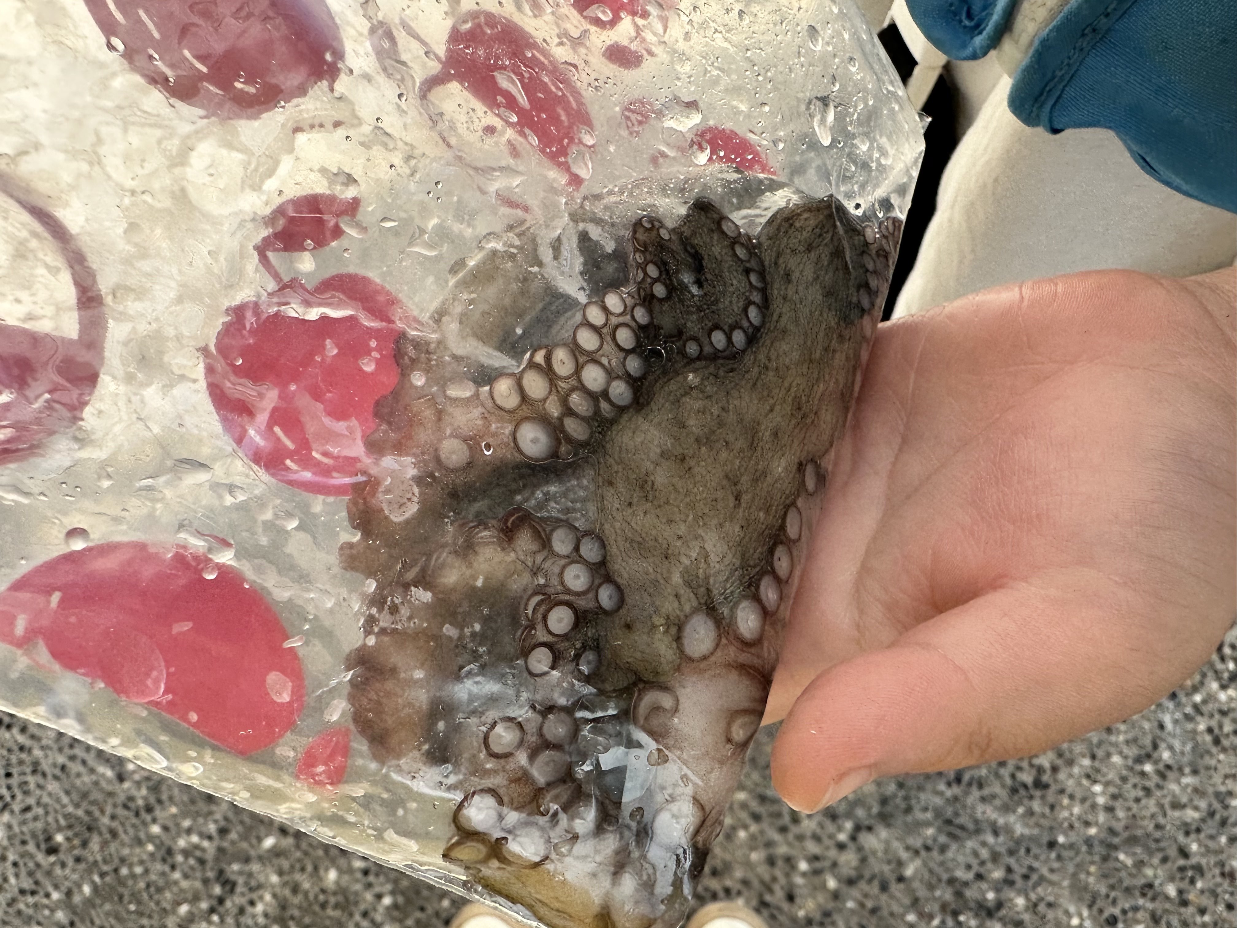 10時頃、タコが泳いでるところを釣り針で引っかけて釣り上げたそうです。