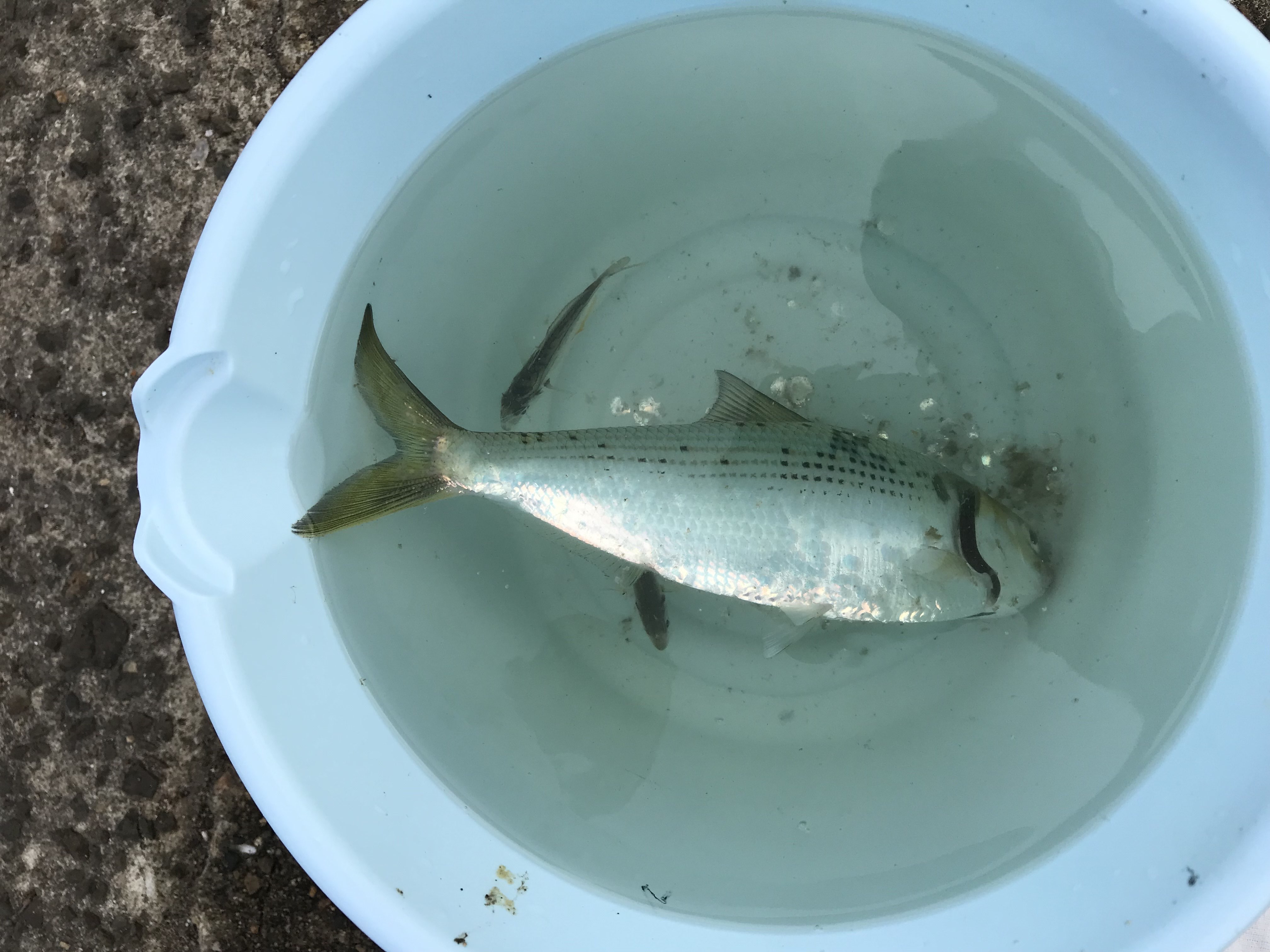 朝はカタクチイワシ、サッパがパラパラと釣れていますが数は少ないです。釣場西側でサバが釣れてます。