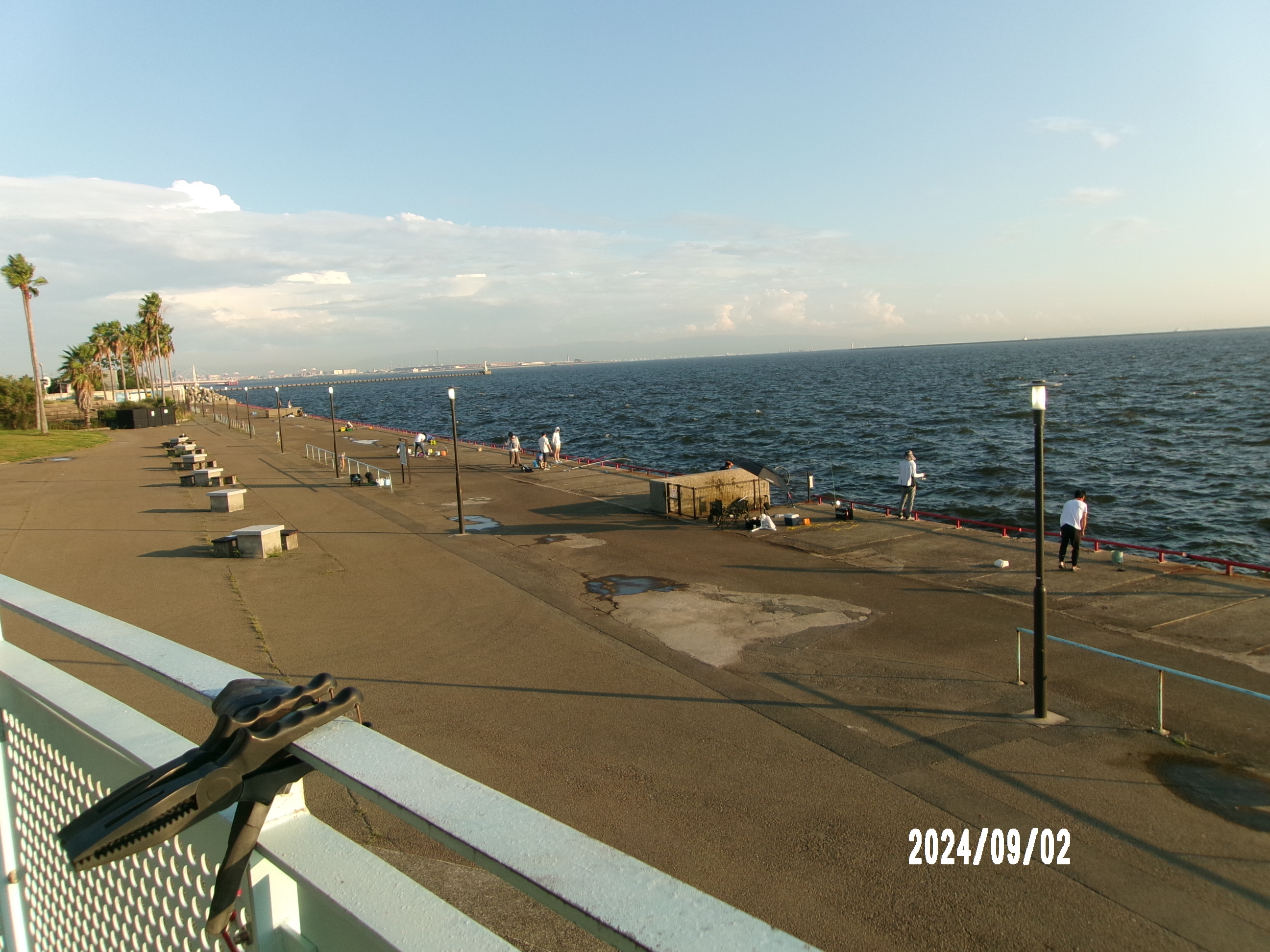 15時を回りました。少し前にチヌが1匹上がりました。大きさは45㎝でした。今日は夏が再び戻って来たような暑さで、鳴尾浜は気温34℃となっています。風速は0m/s北となっております。