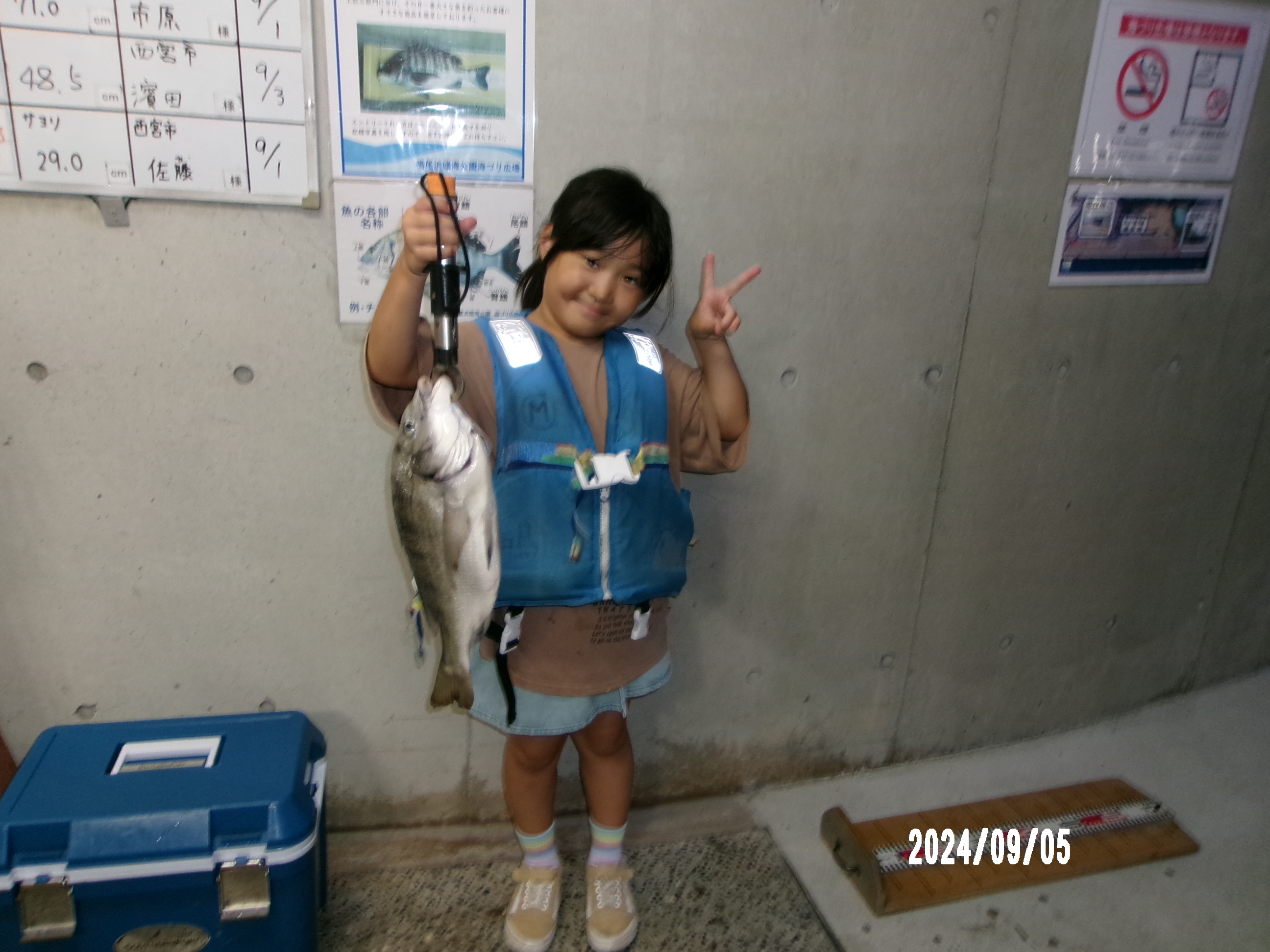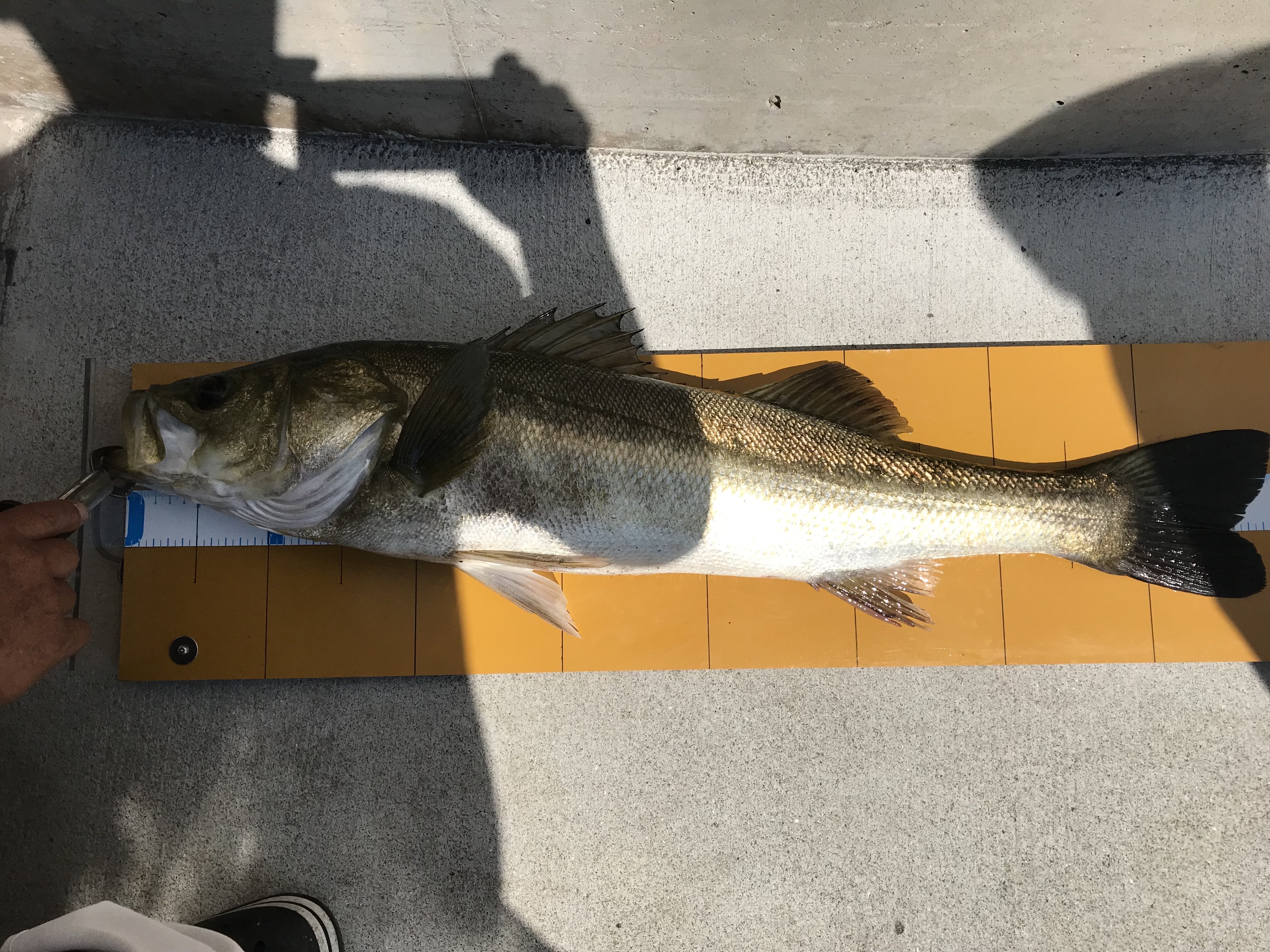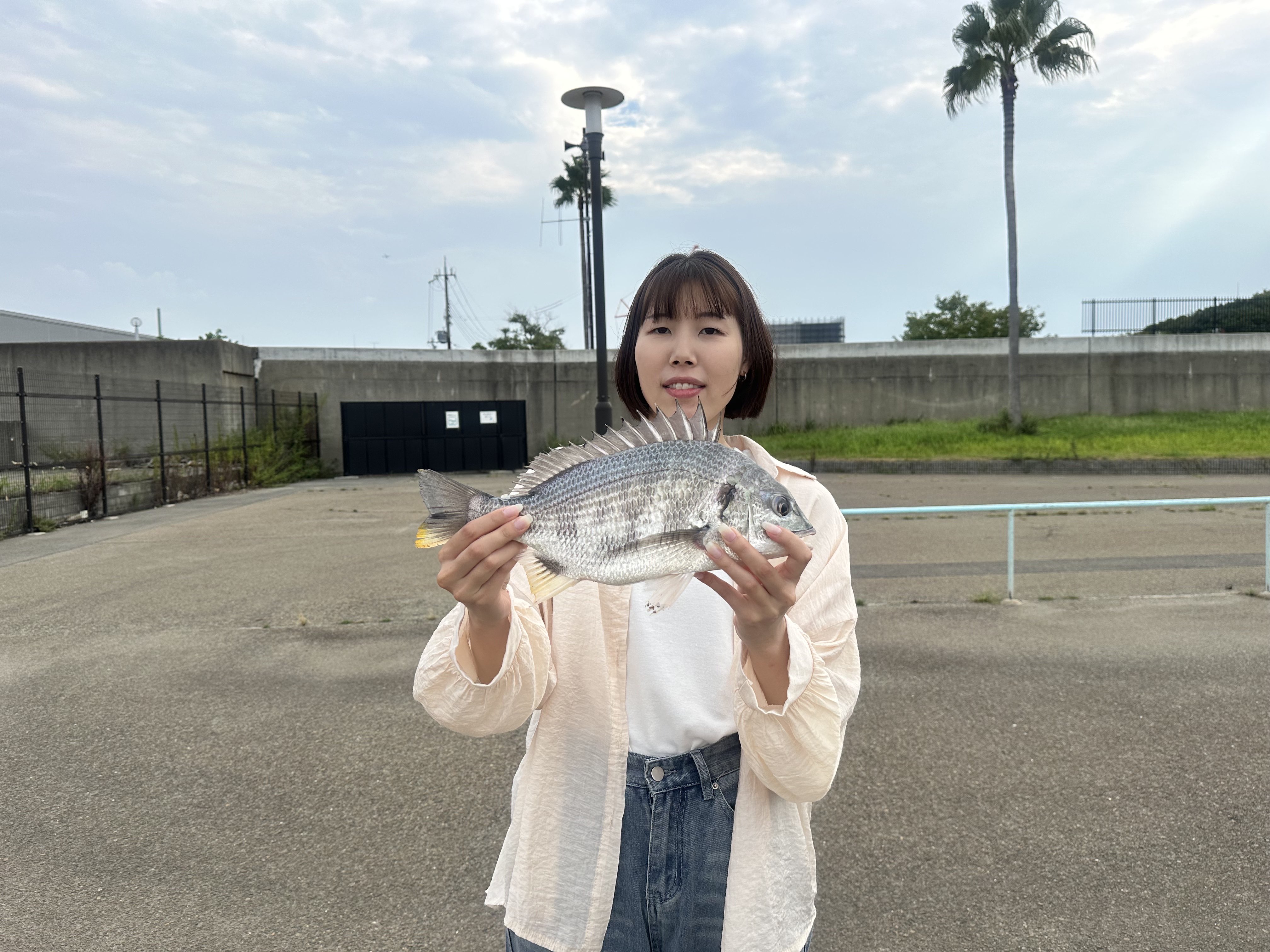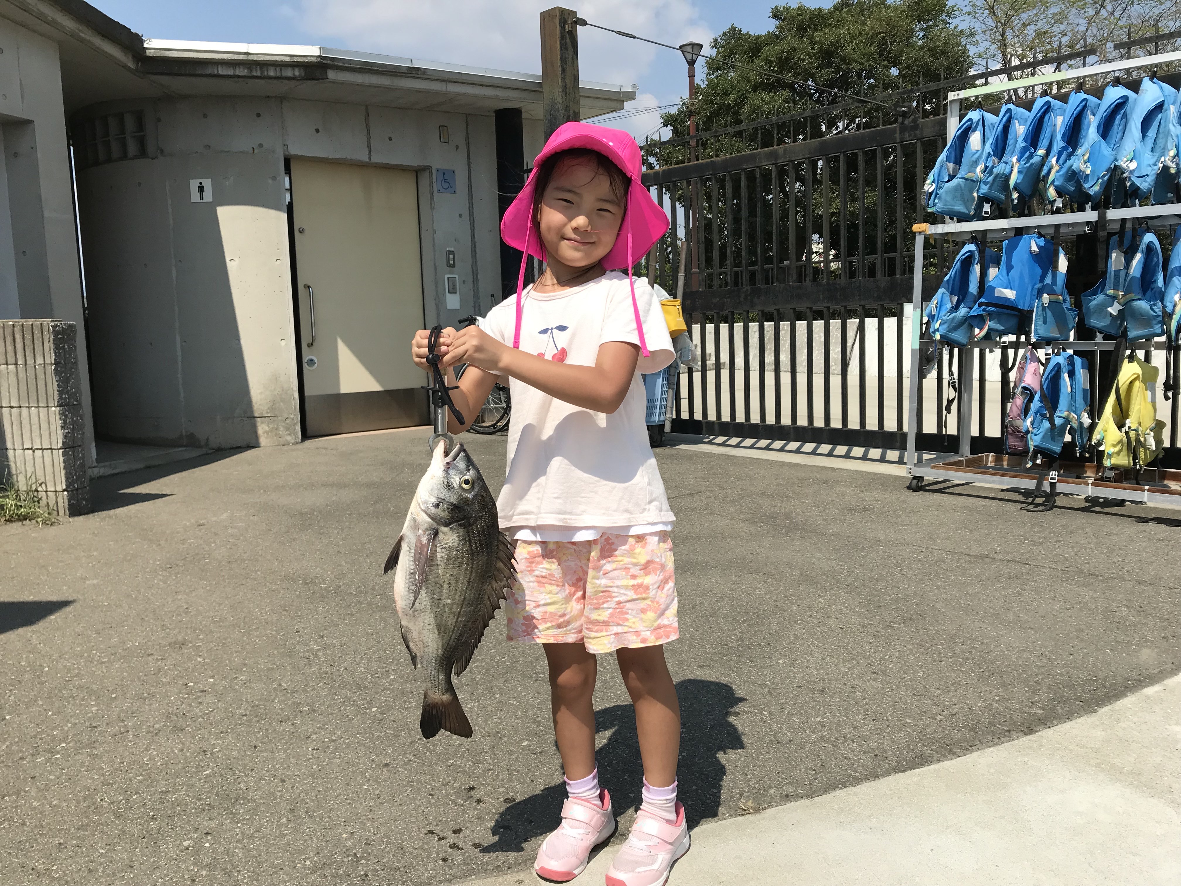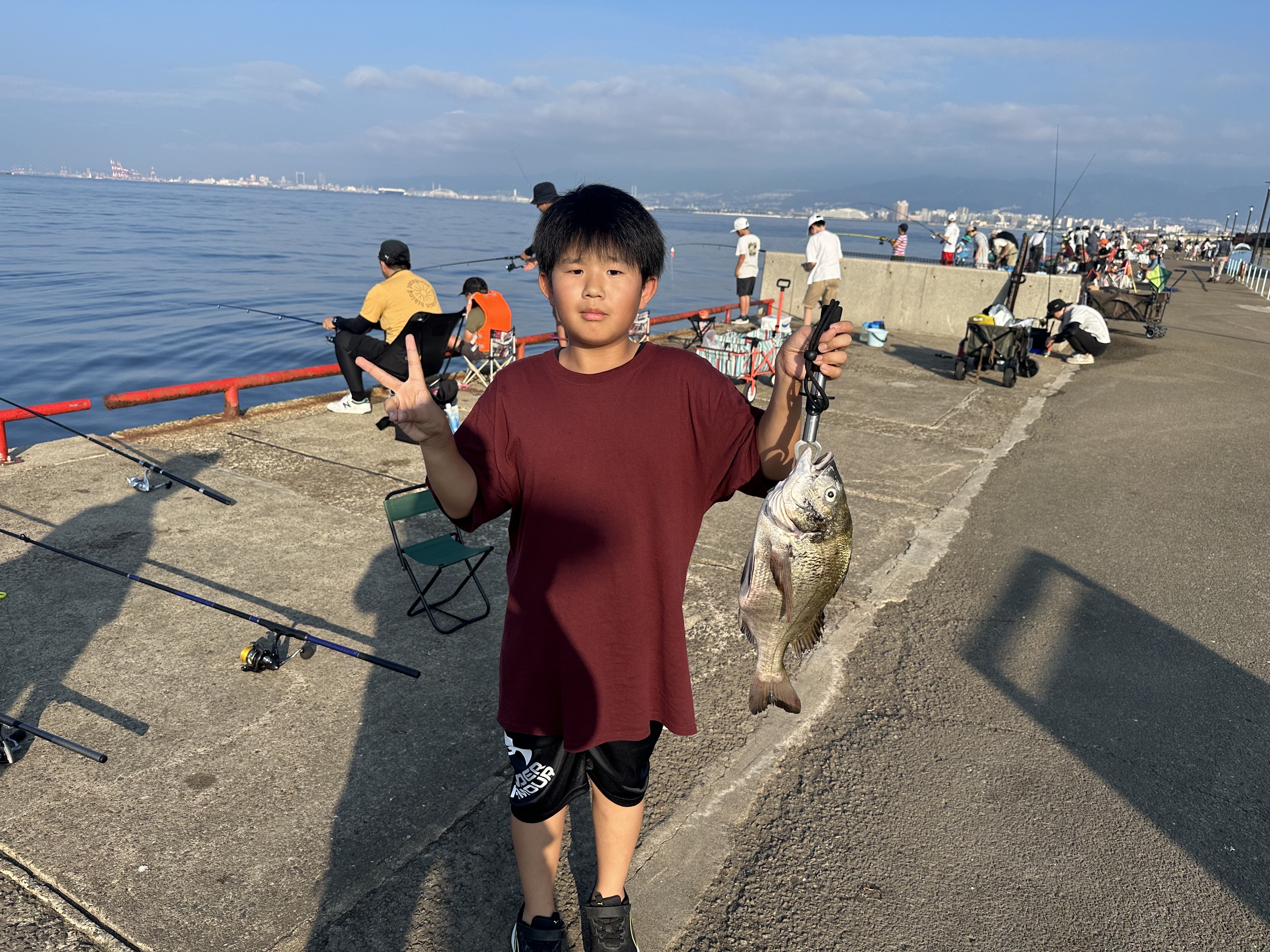 7時頃にチヌ46㎝が釣れました。餌はオキアミです。