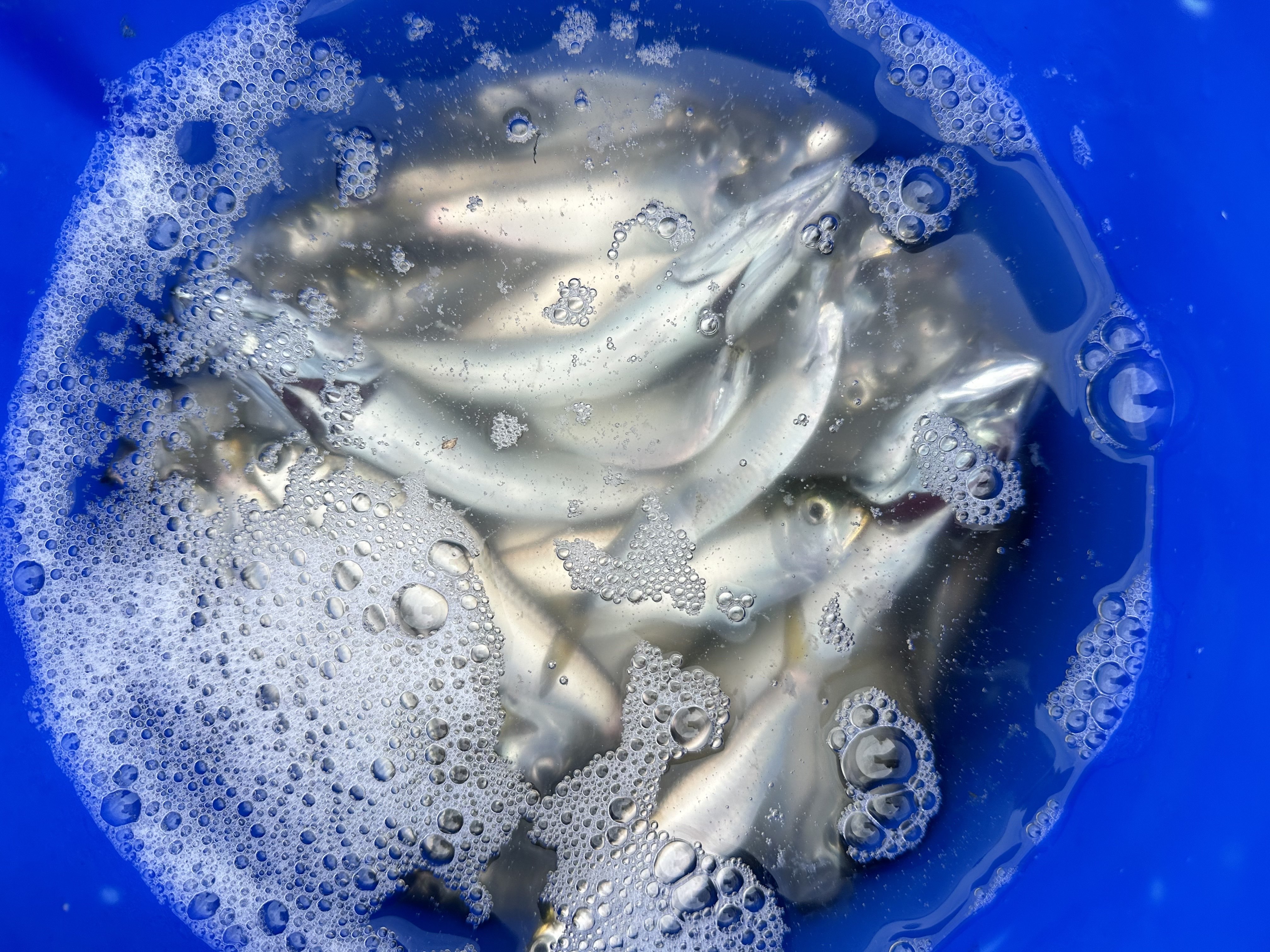 大会日前日、鳴尾浜ではカタクチイワシが爆釣中。