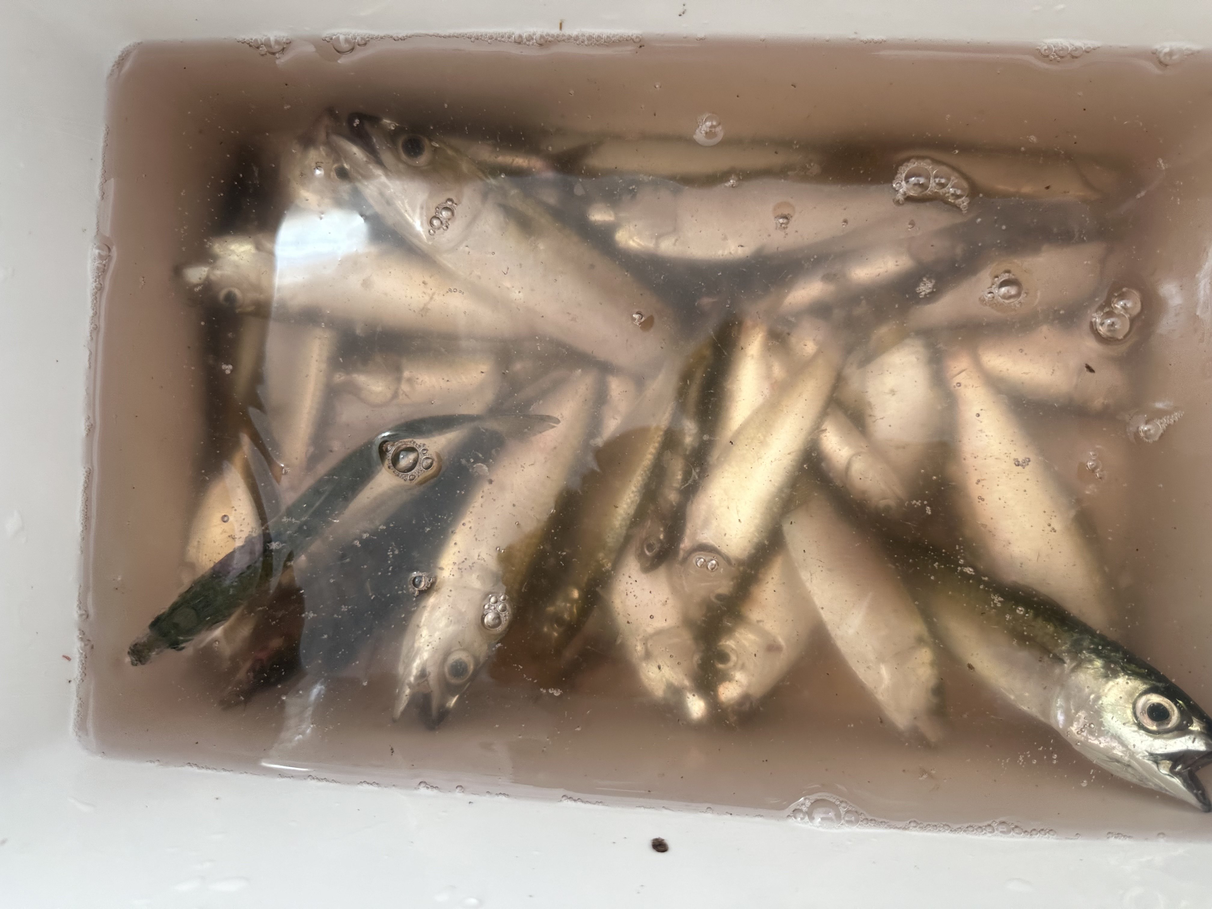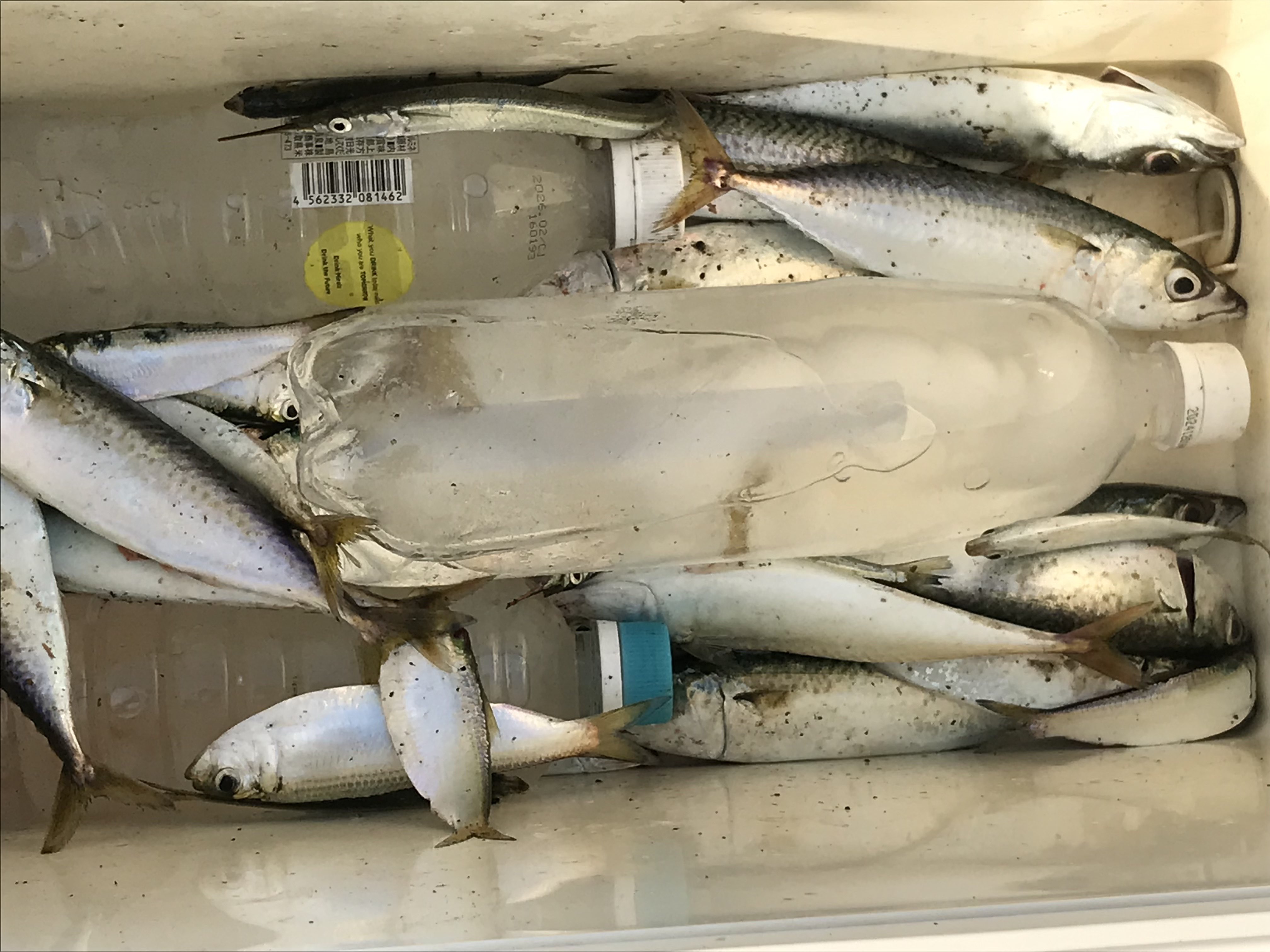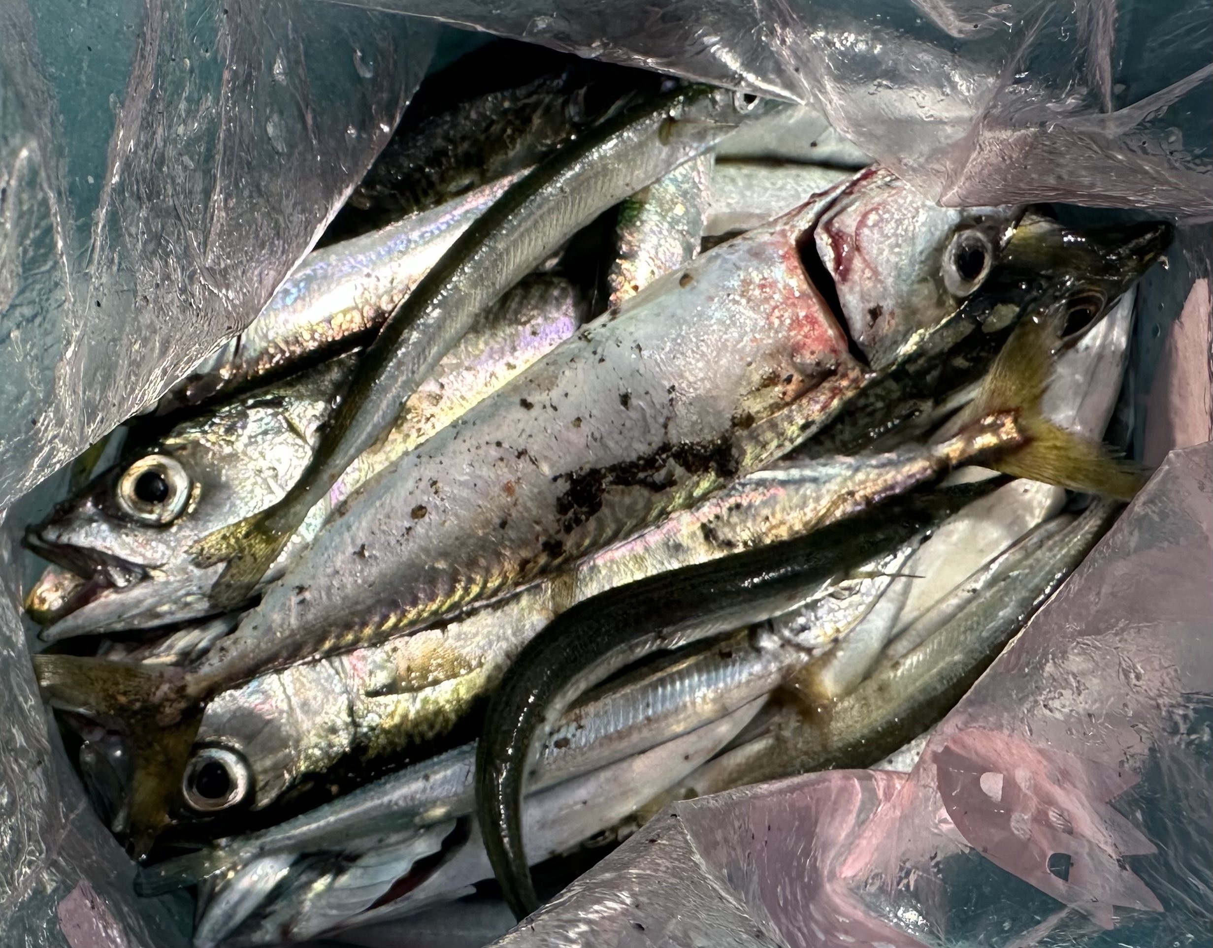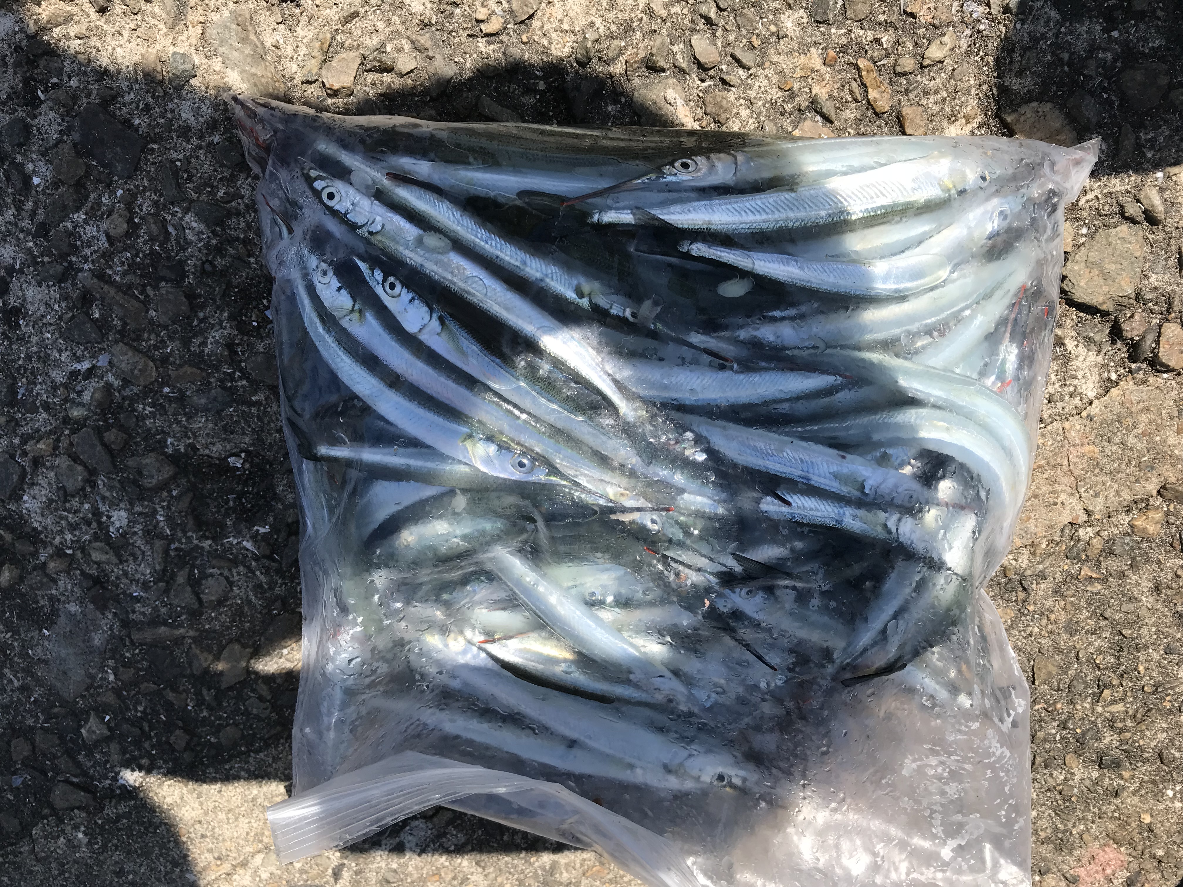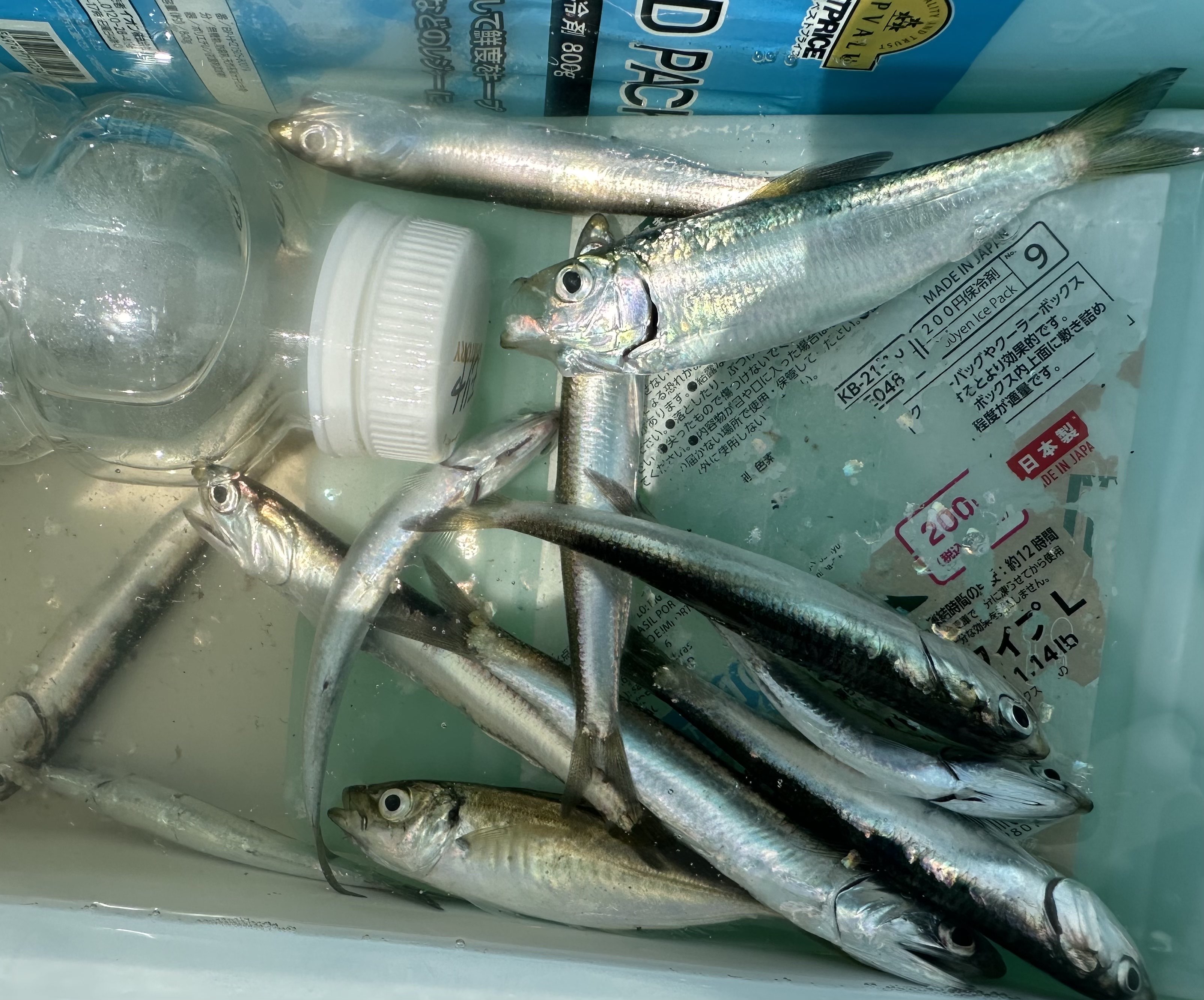本日の釣果は、サビキでカタクチイワシが多く、サッパやサバやサヨリも釣れています。