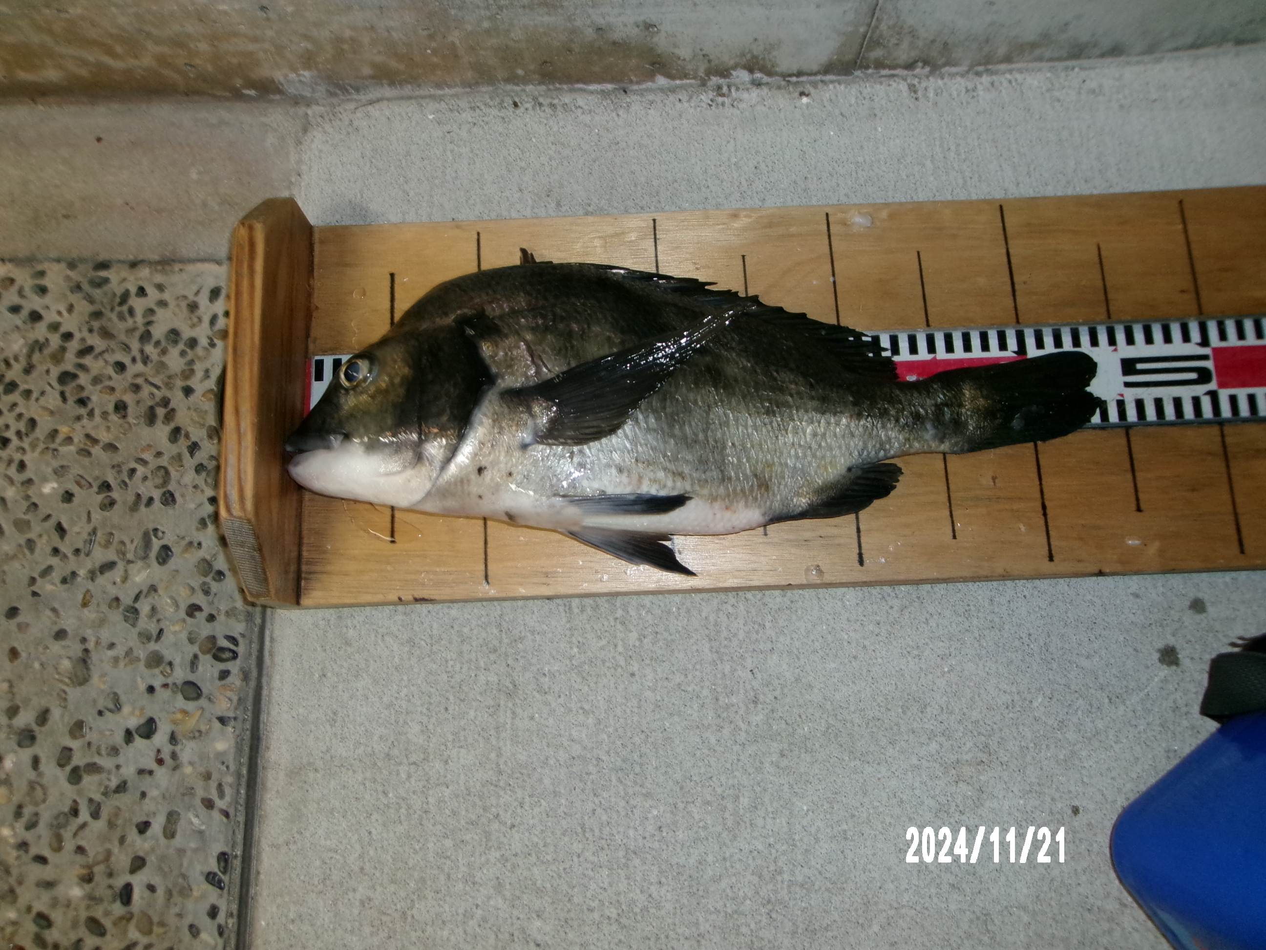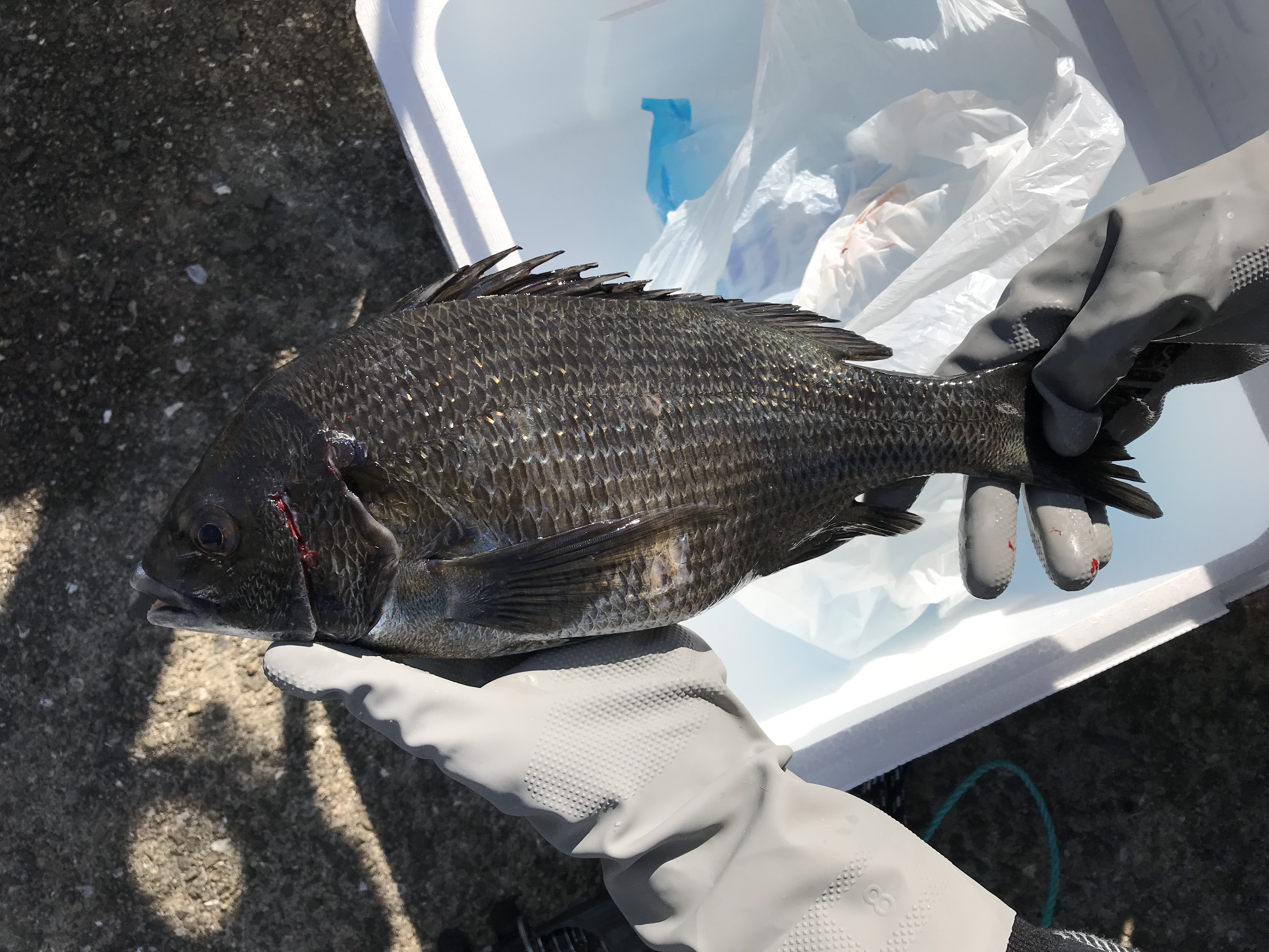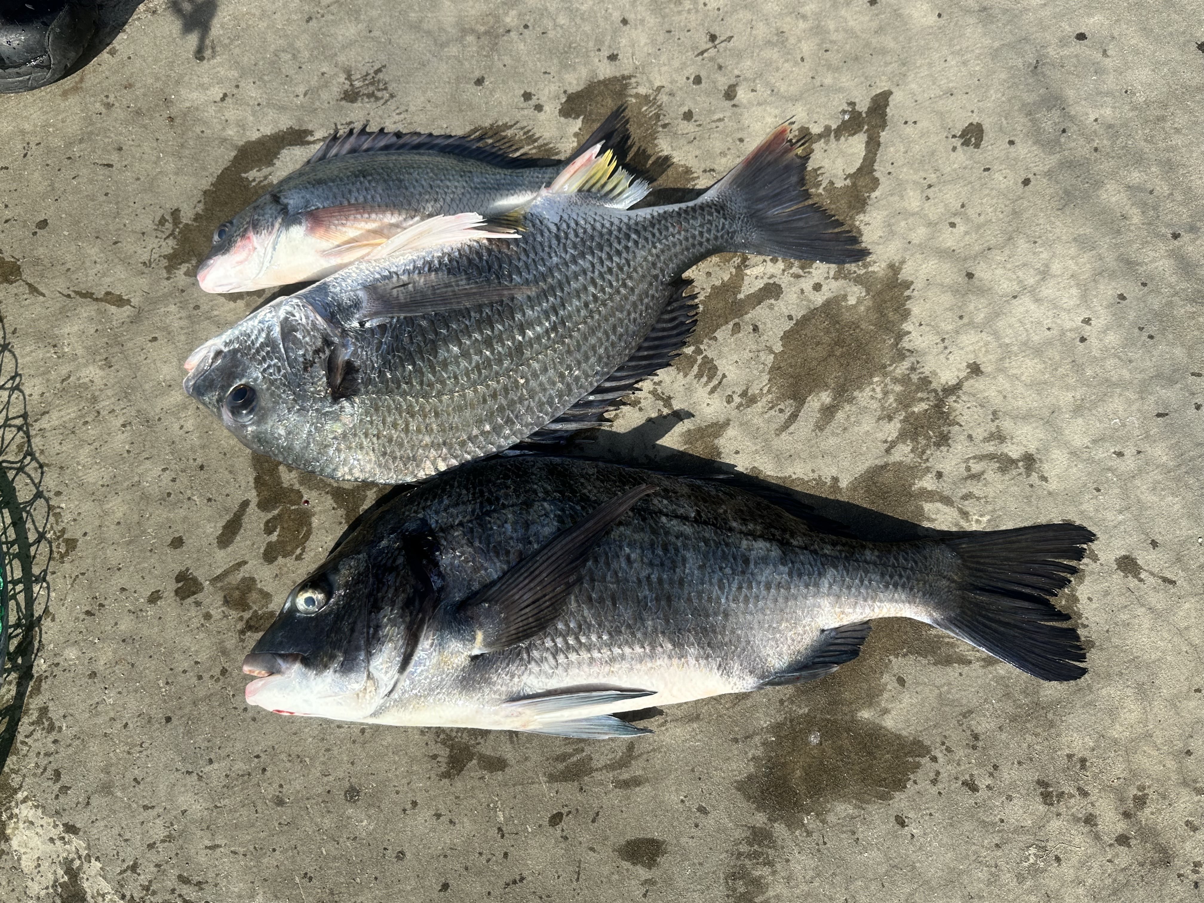 グレがエビ撒き釣りで、チヌは釣場東側で7枚餌オキアミで釣れております。釣場西側では餌オキアミでセイゴも釣れています。