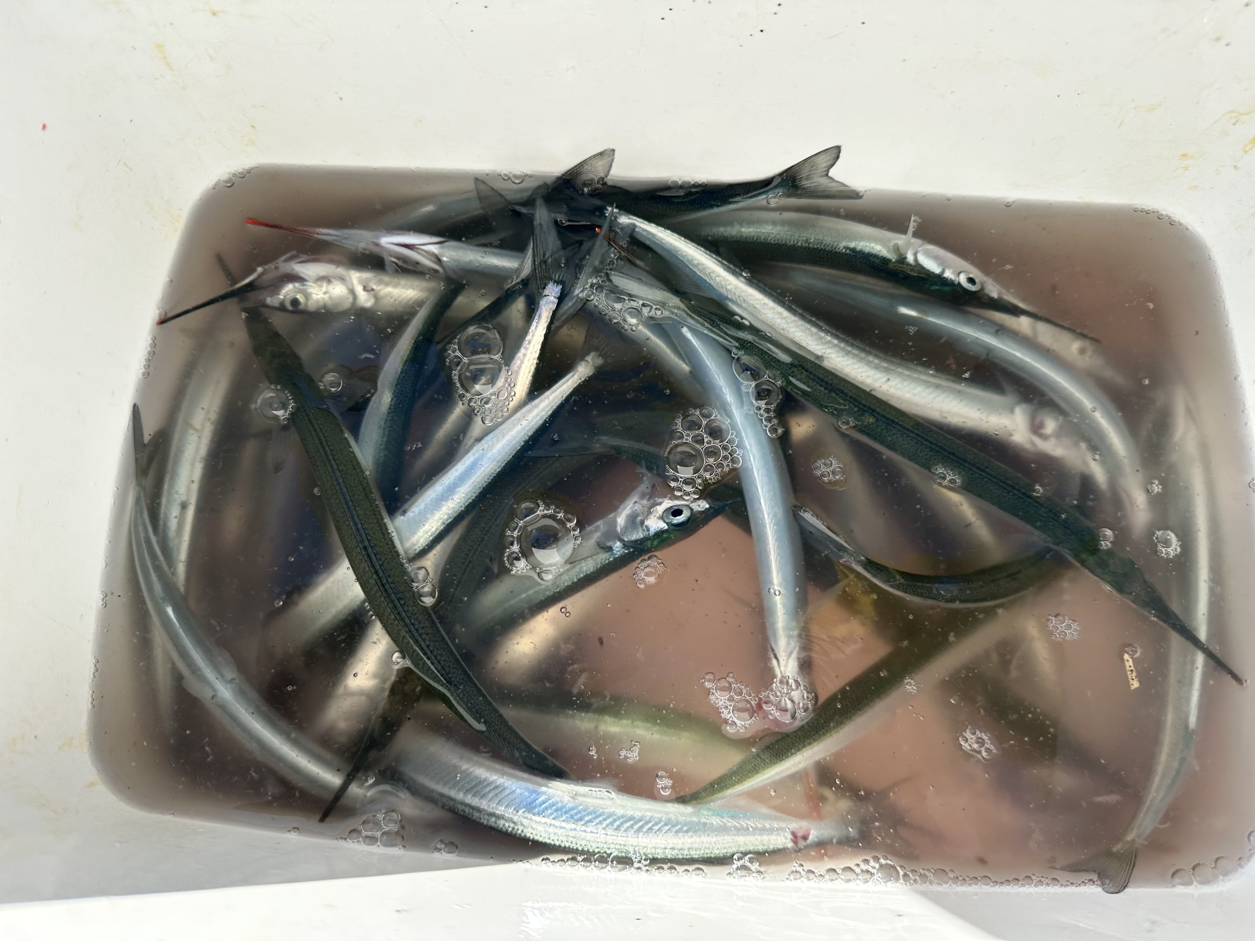 お昼現在、サヨリお一人で40匹ほど釣られています!誘いをかけないと掛からないですが本日は釣りやすかったみたいですよ!
