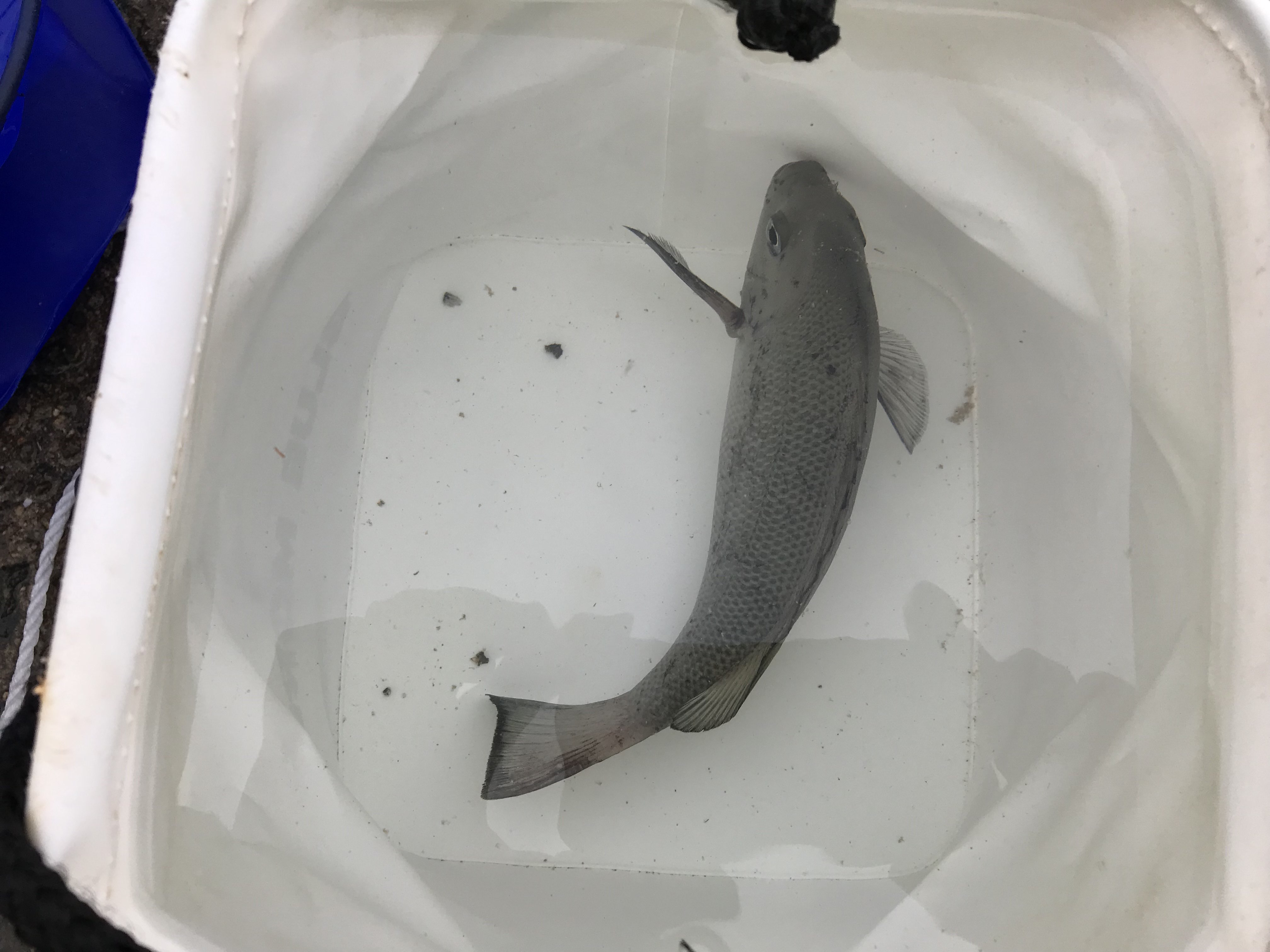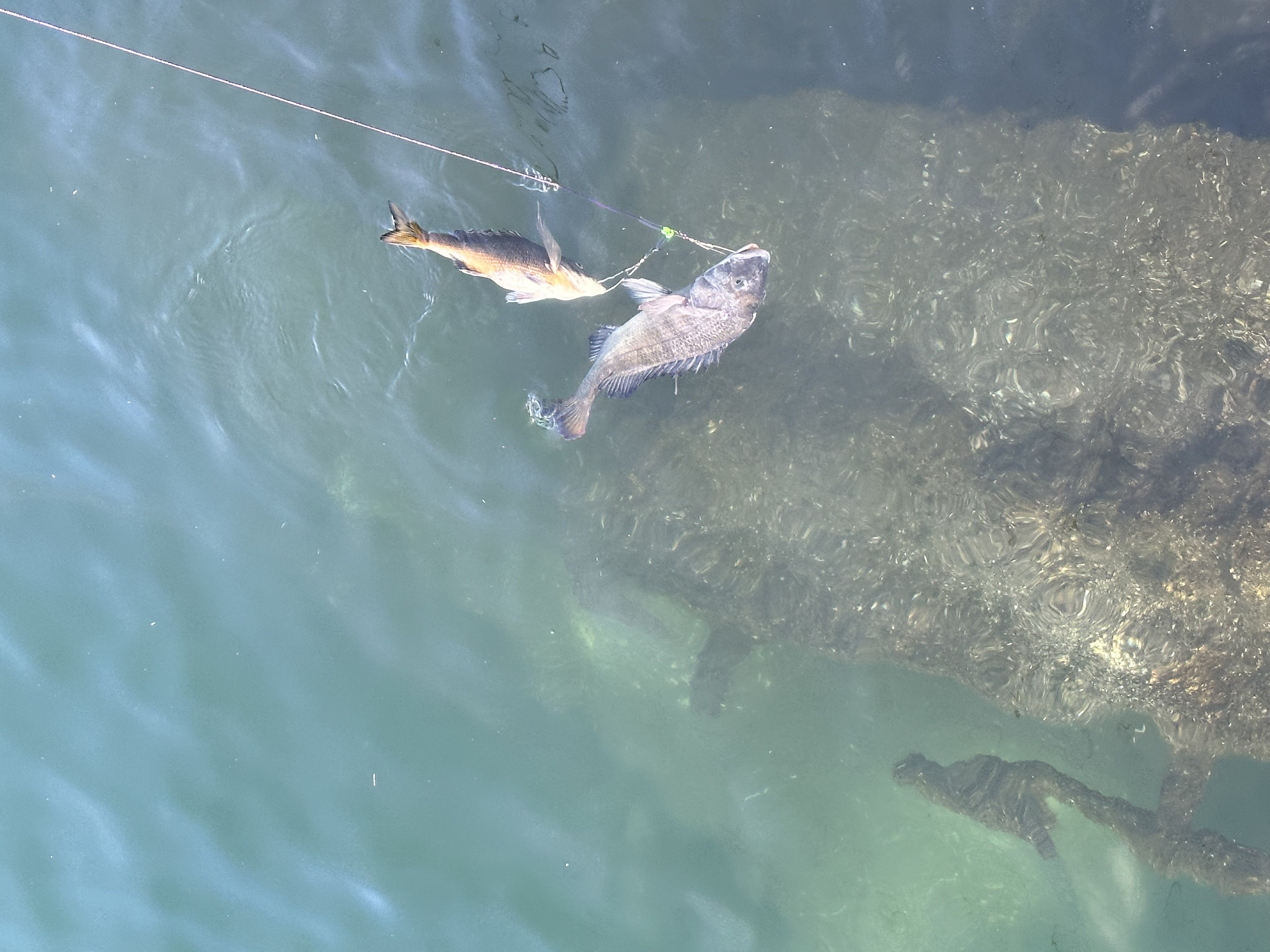 釣場東側で小チヌ、ガシラが釣れていました。餌はオキアミです。