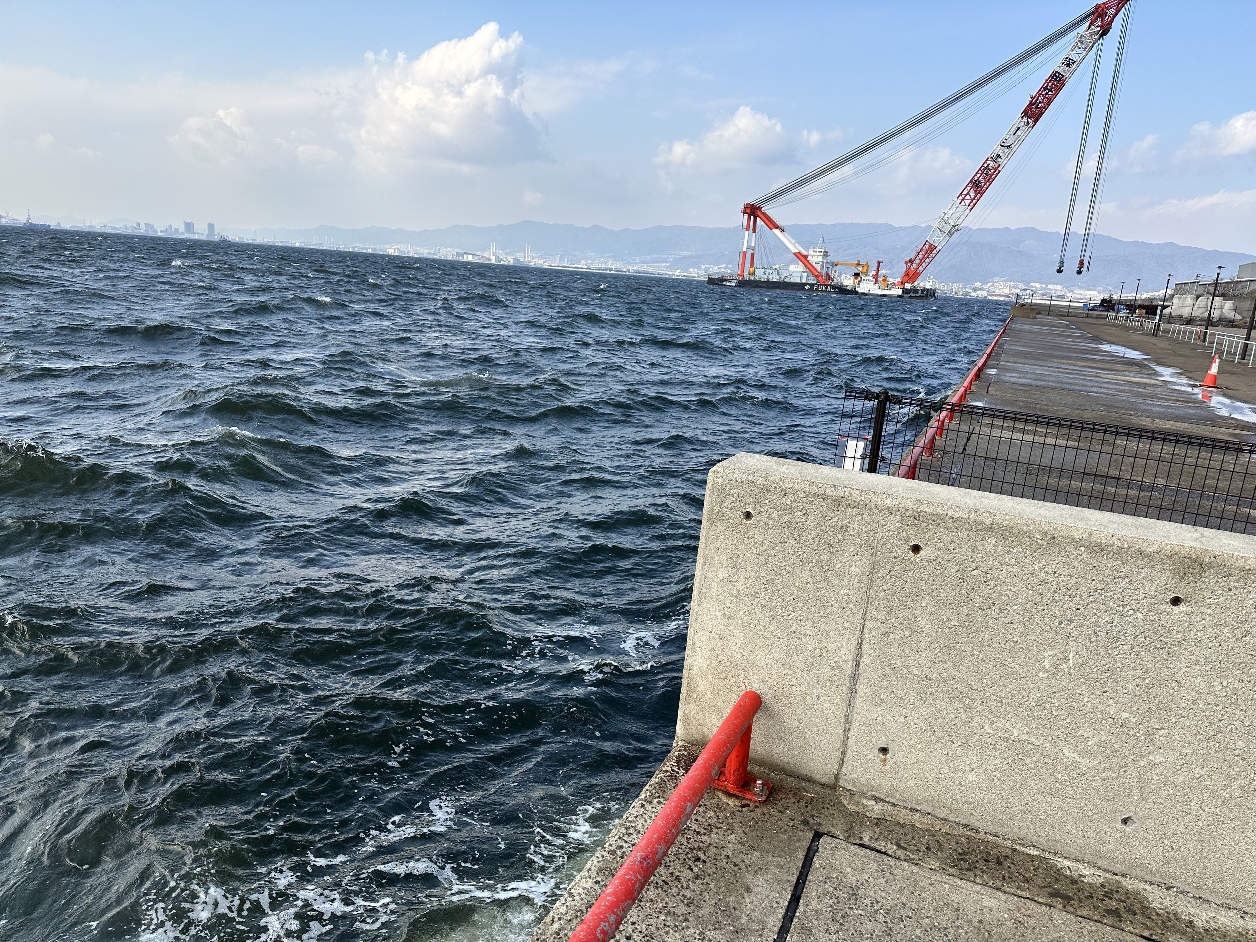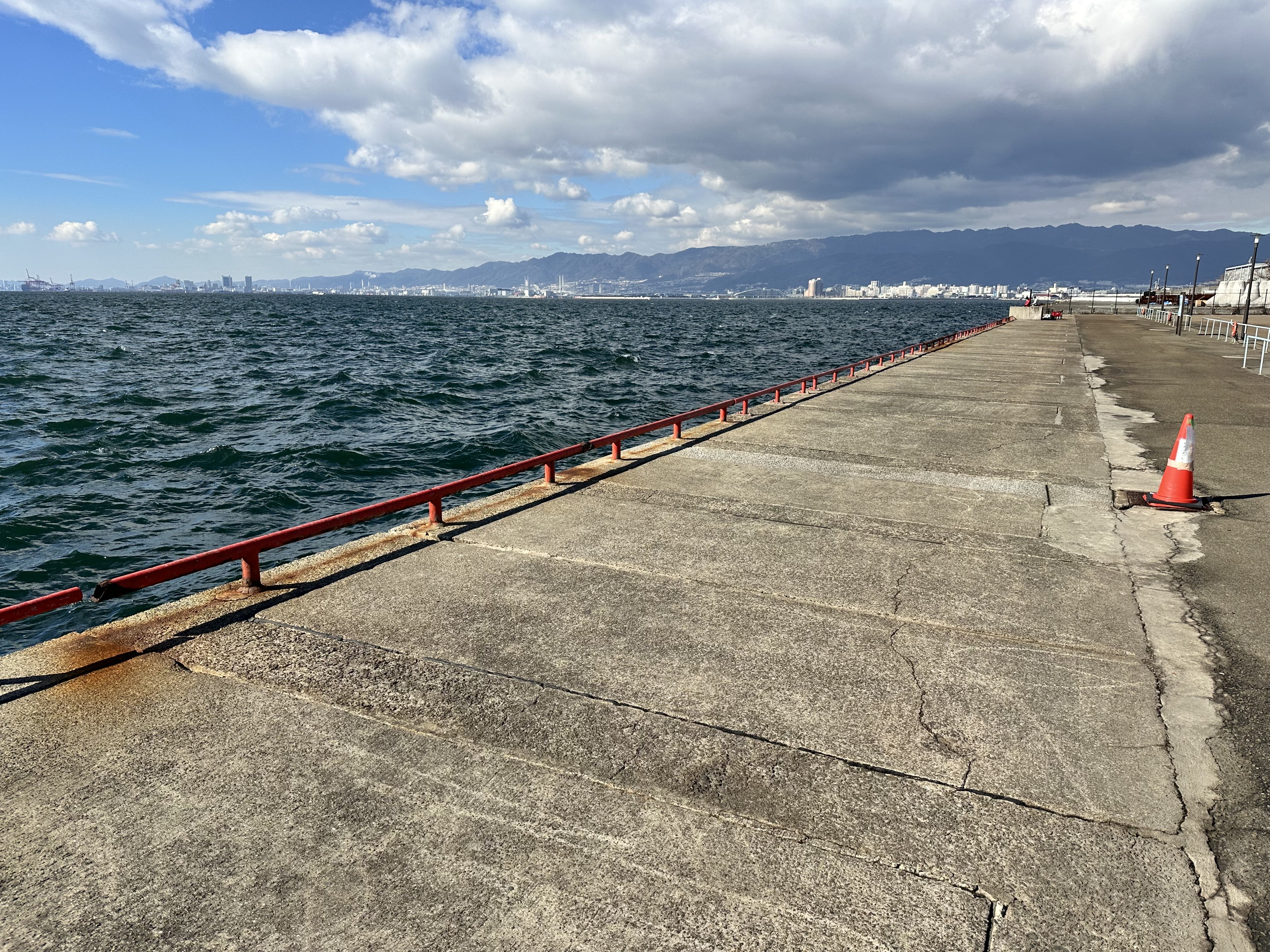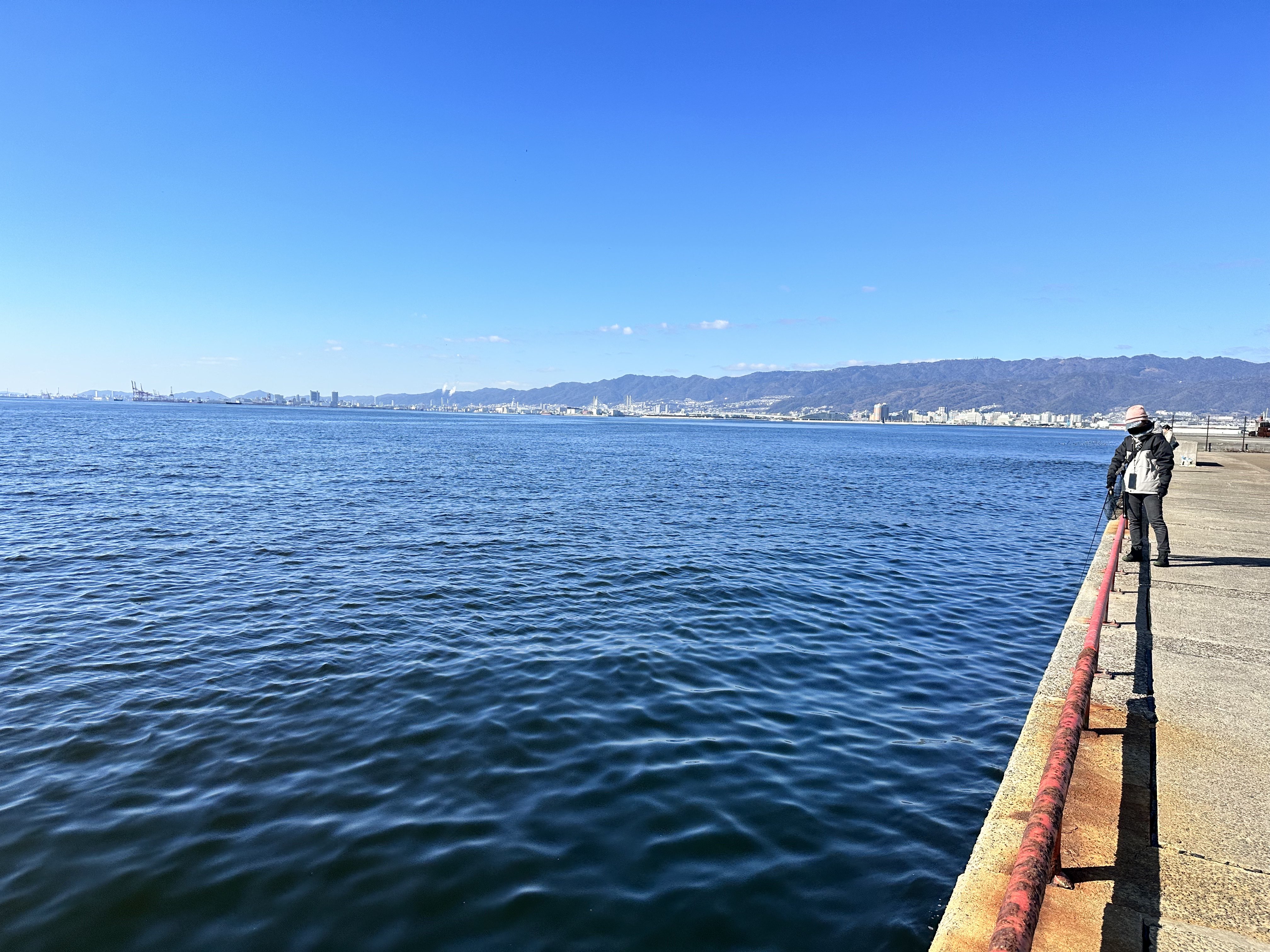 今日の鳴尾浜は10時ごろから風が出てきて白波も立っていましたがお昼には収まり今は少し強く吹いているぐらいです。釣果はまだありません。
