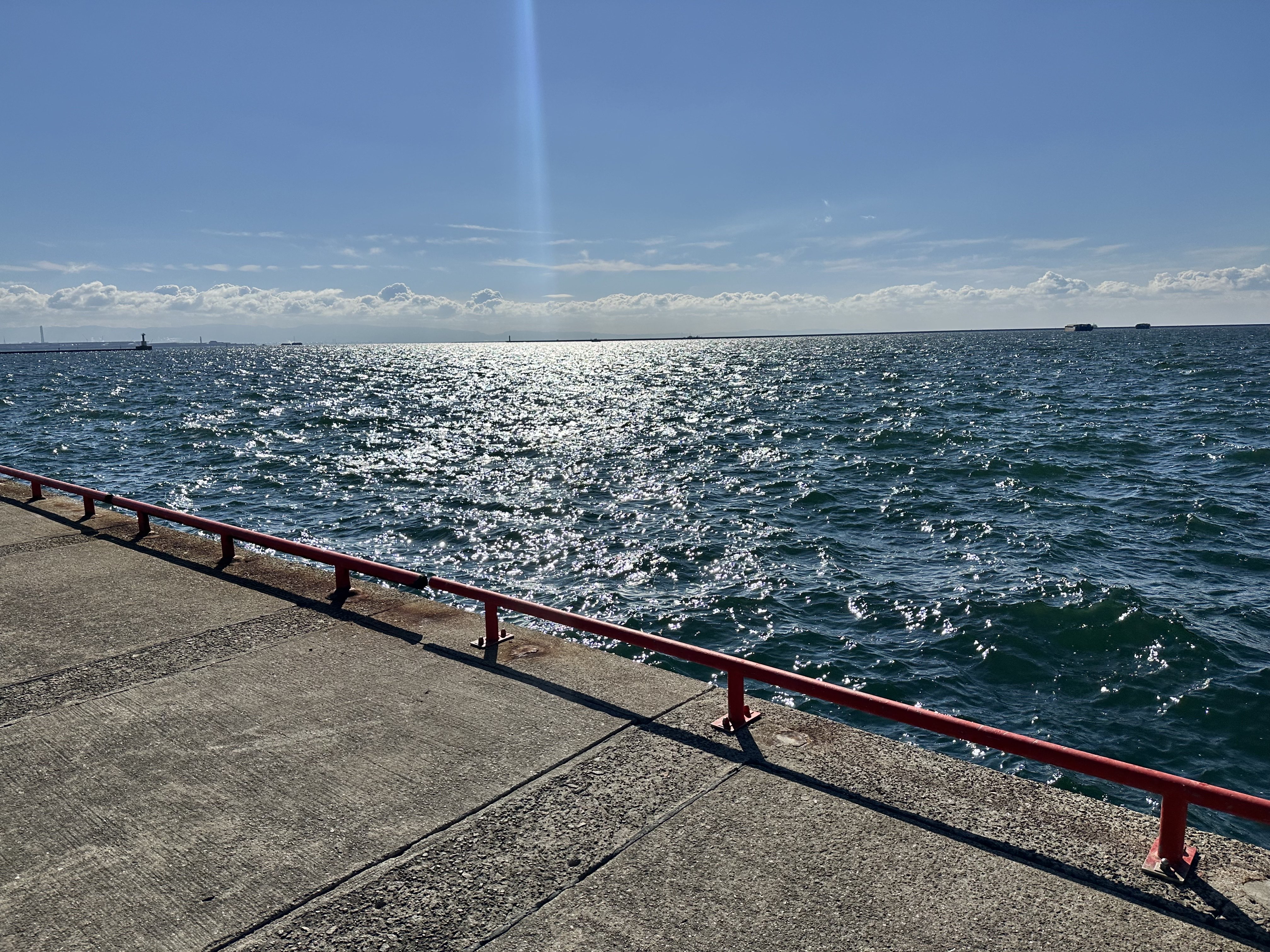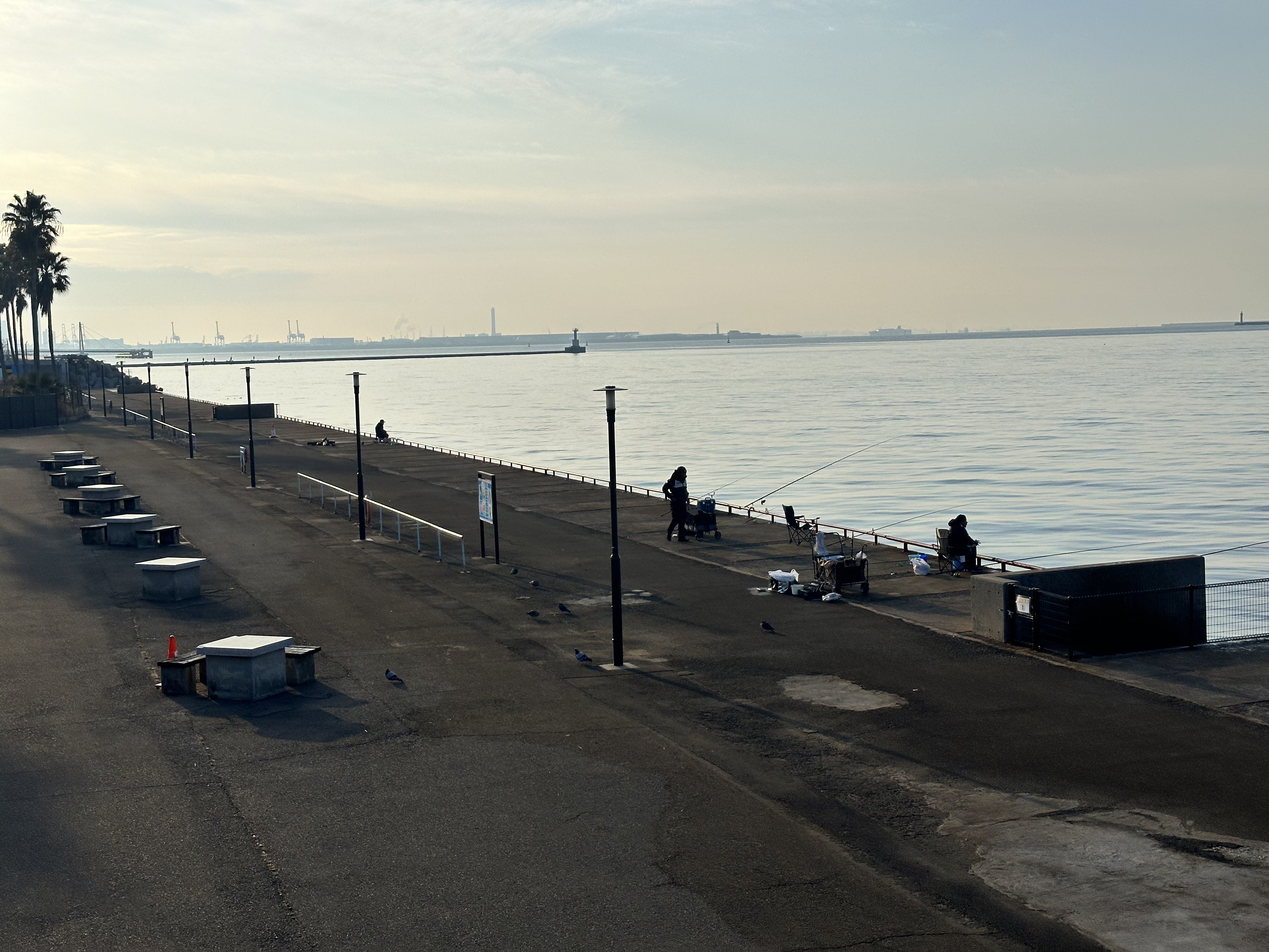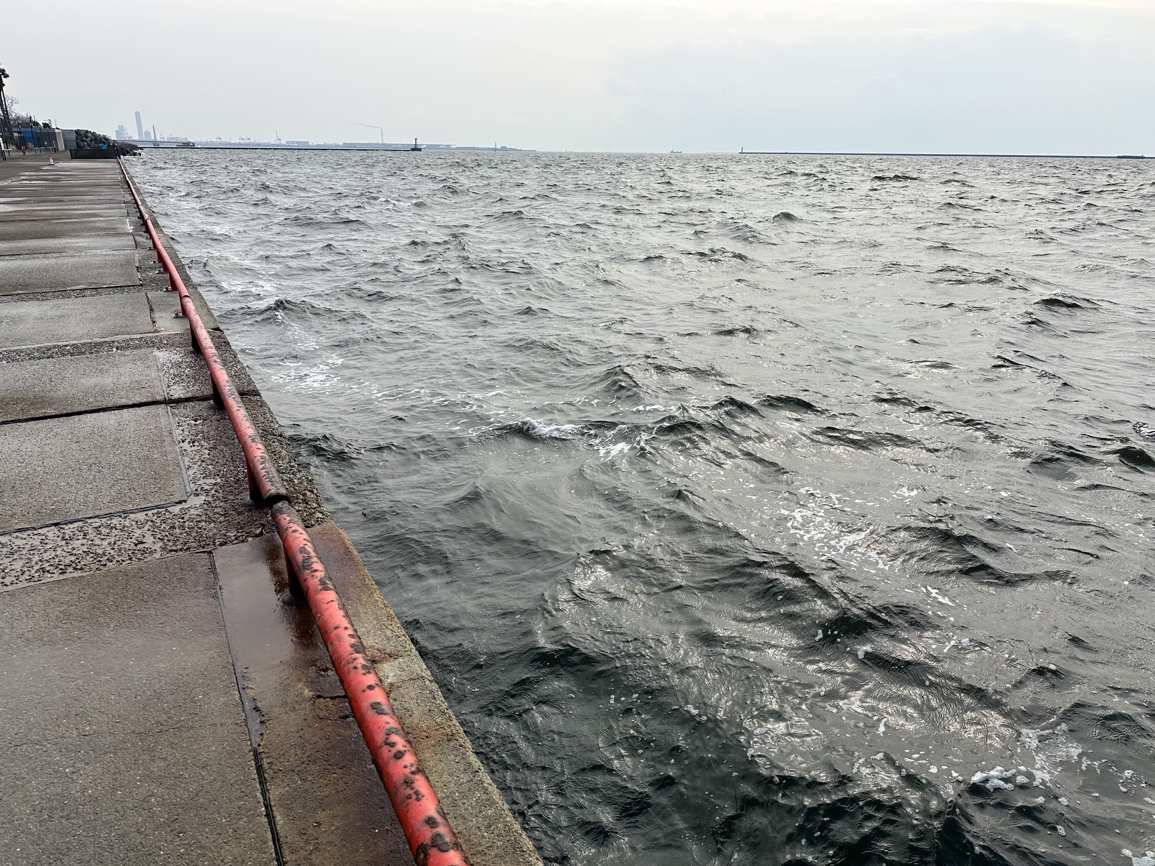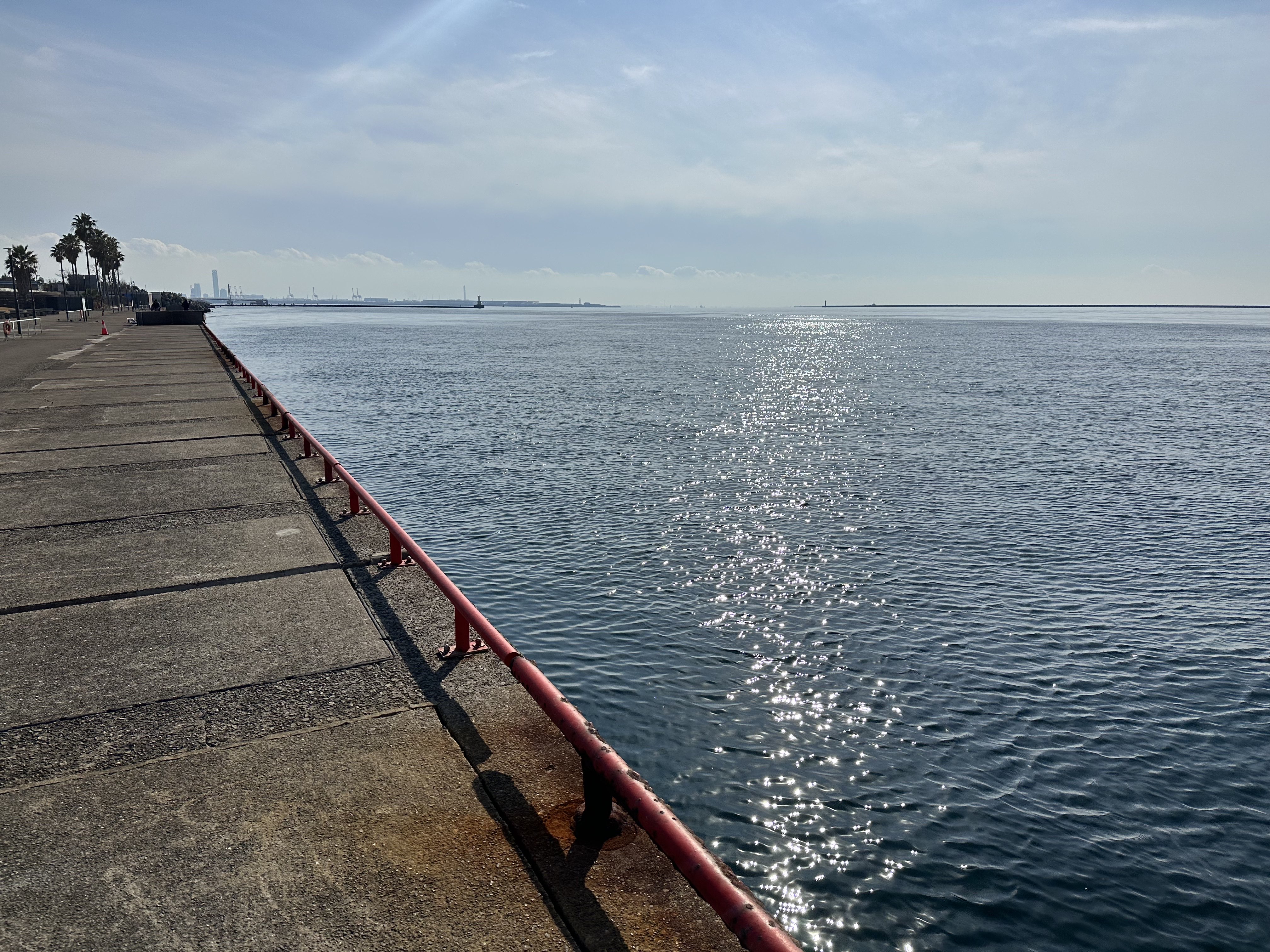 今日の鳴尾浜は10時ごろから風が出てきて白波も立っていましたがお昼には収まり今は少し強く吹いているぐらいです。釣果はまだありません。