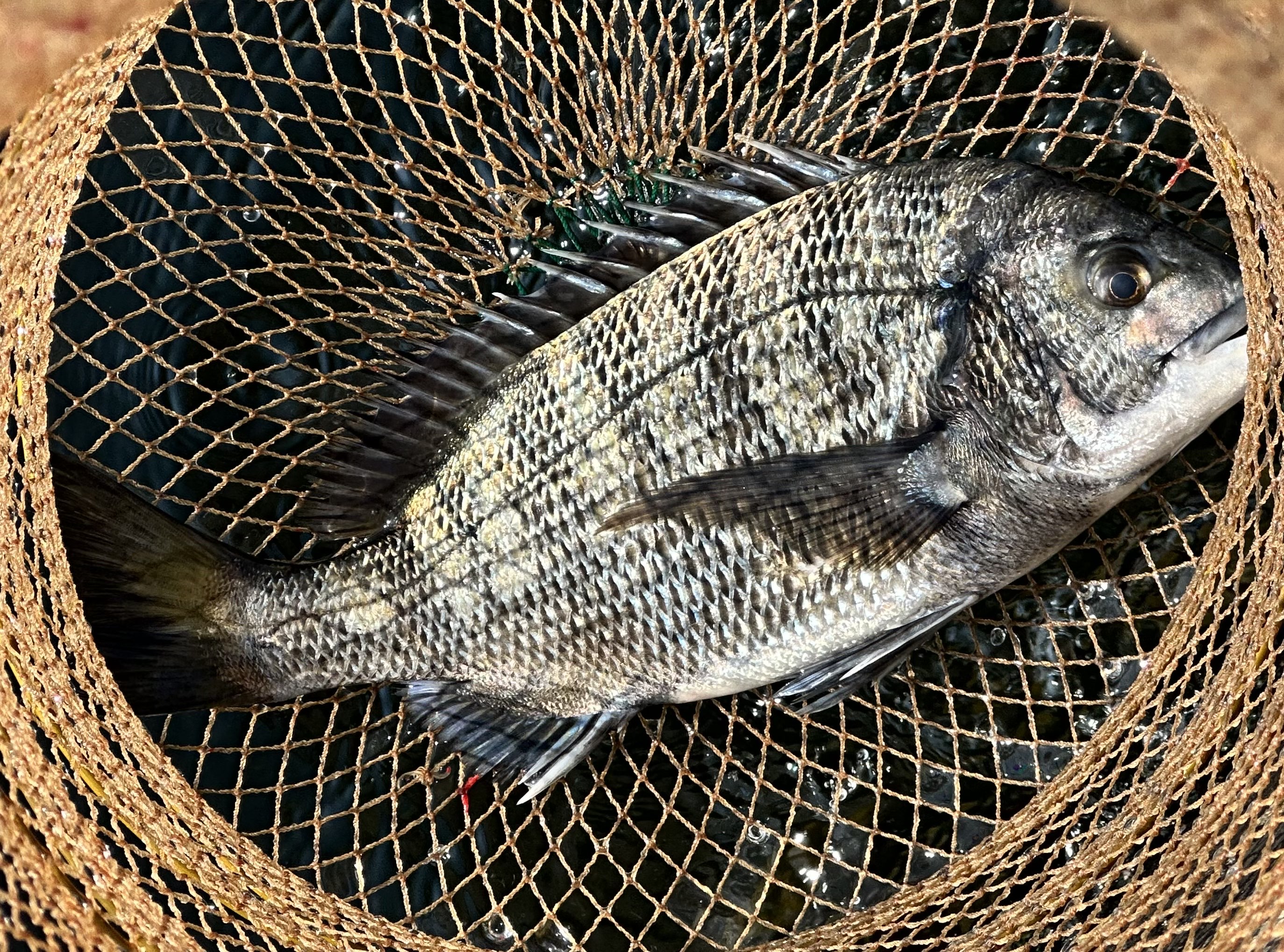 朝一でフカセ釣りの方が40cmのチヌを!12時ごろにエビ撒き釣りの方が37cmのチヌをゲット!