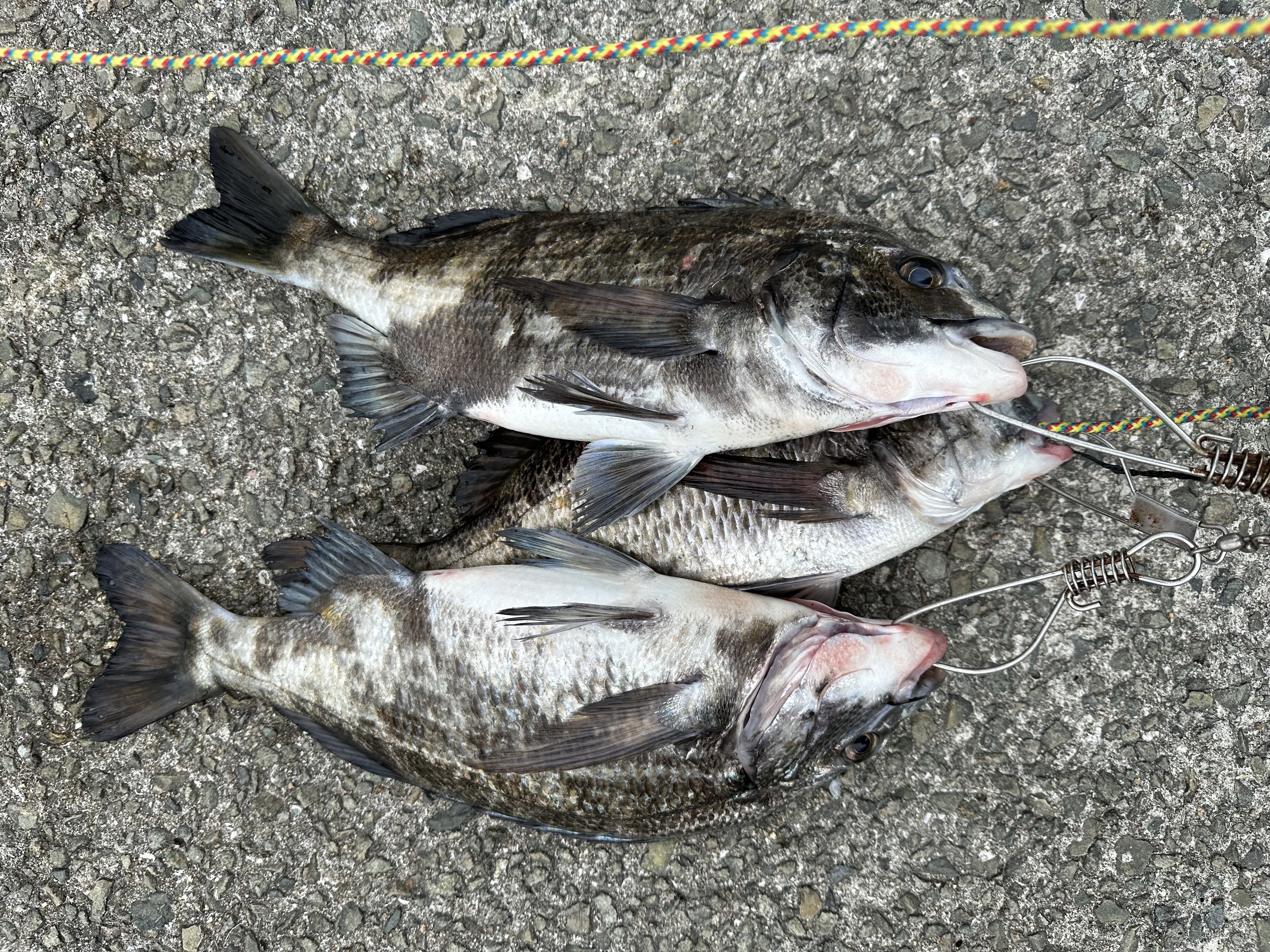 今日の鳴尾浜の午前の釣果は9-10時頃にチヌが3枚上がっています餌はオキアミです。