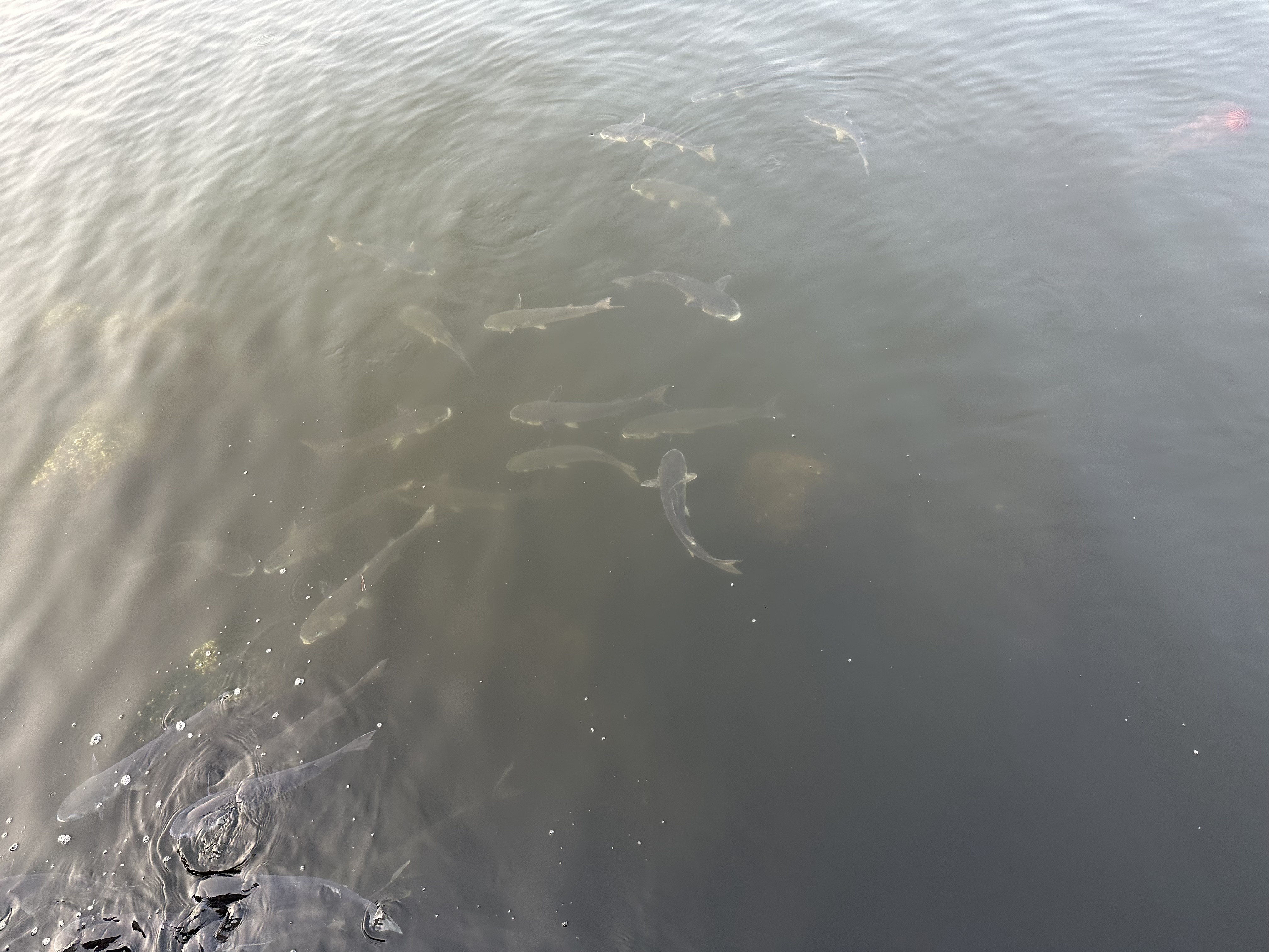 朝はボラがたくさん泳いでいたりジャンプしている姿を目撃しました。