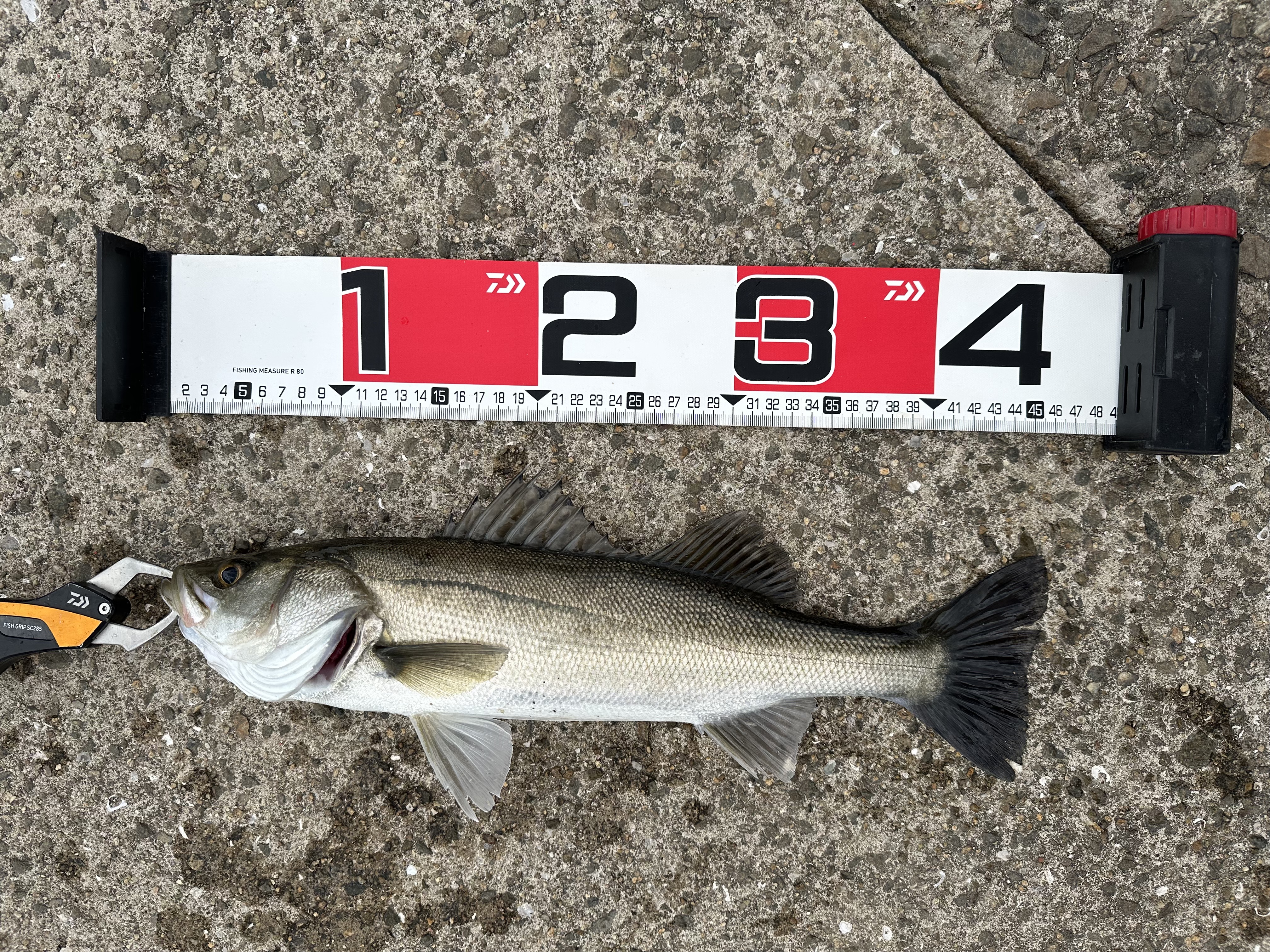 朝一、ダンゴ釣(餌オキアミ)のかたが45cmヒット!