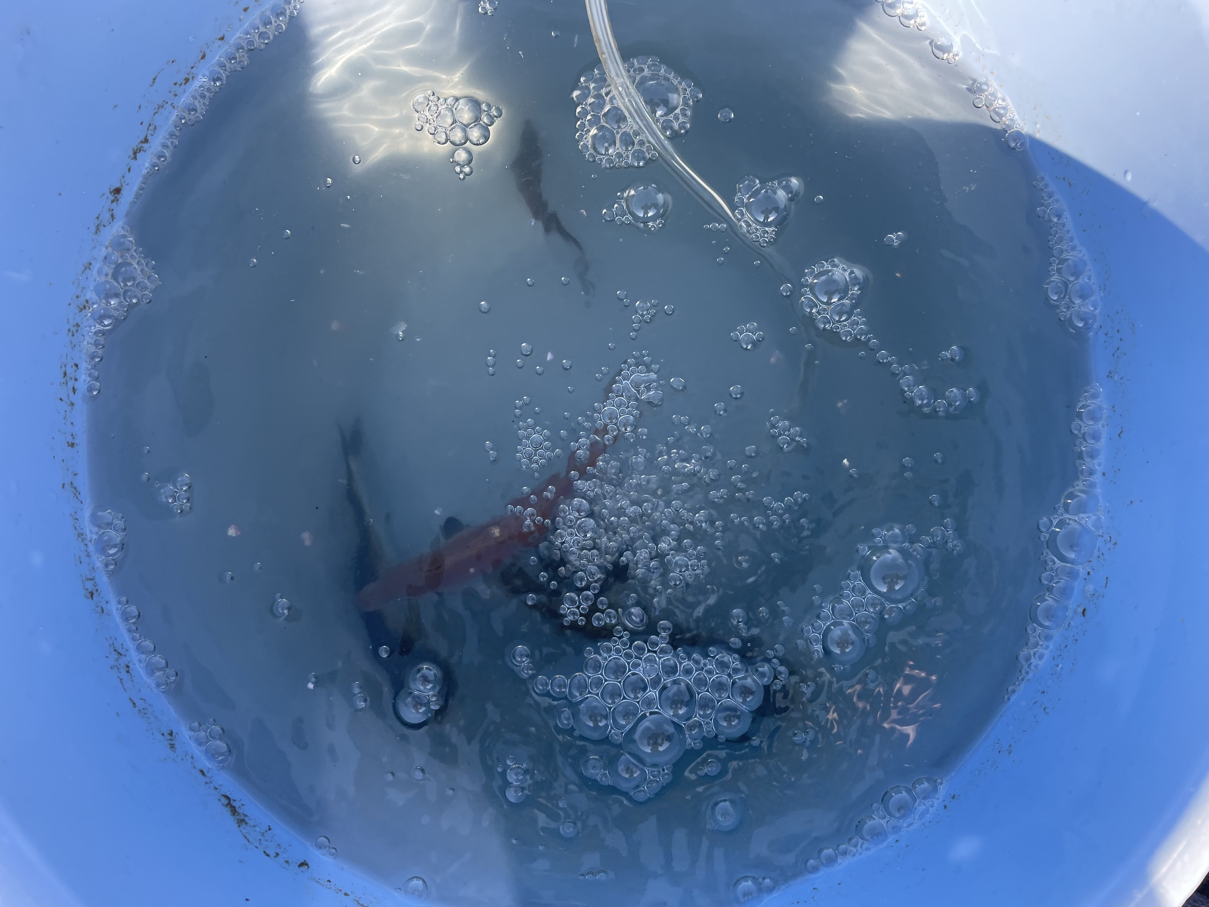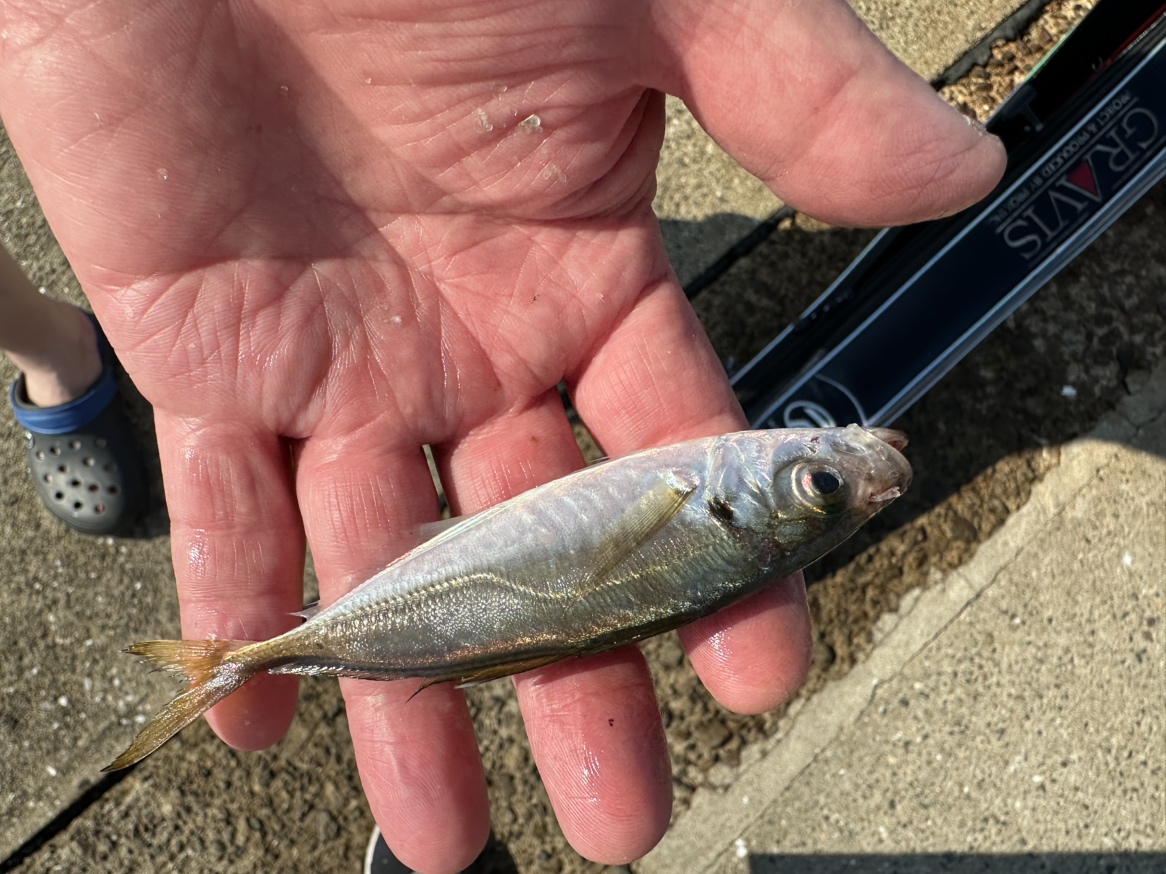 今朝のサビキはそれほど釣れておらず、カタクチイワシ、サバがポロポロ釣れている模様です