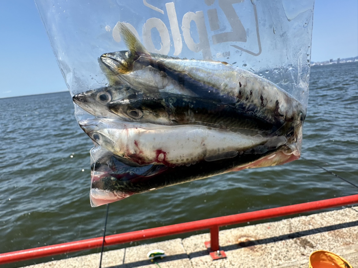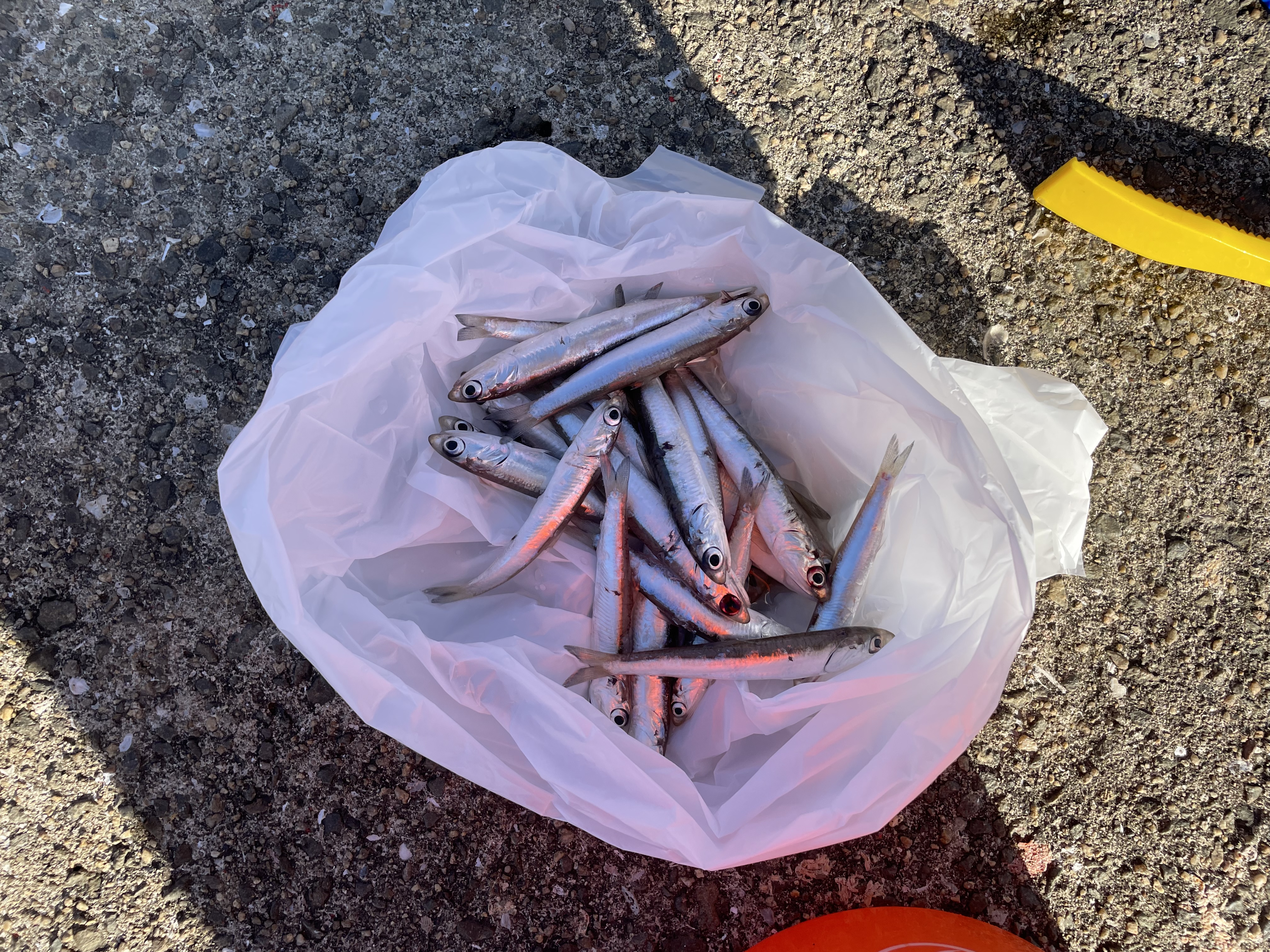 場所によっては、カタクチイワシが釣れず、朝からサバばっかりの方もいらっしゃいました。