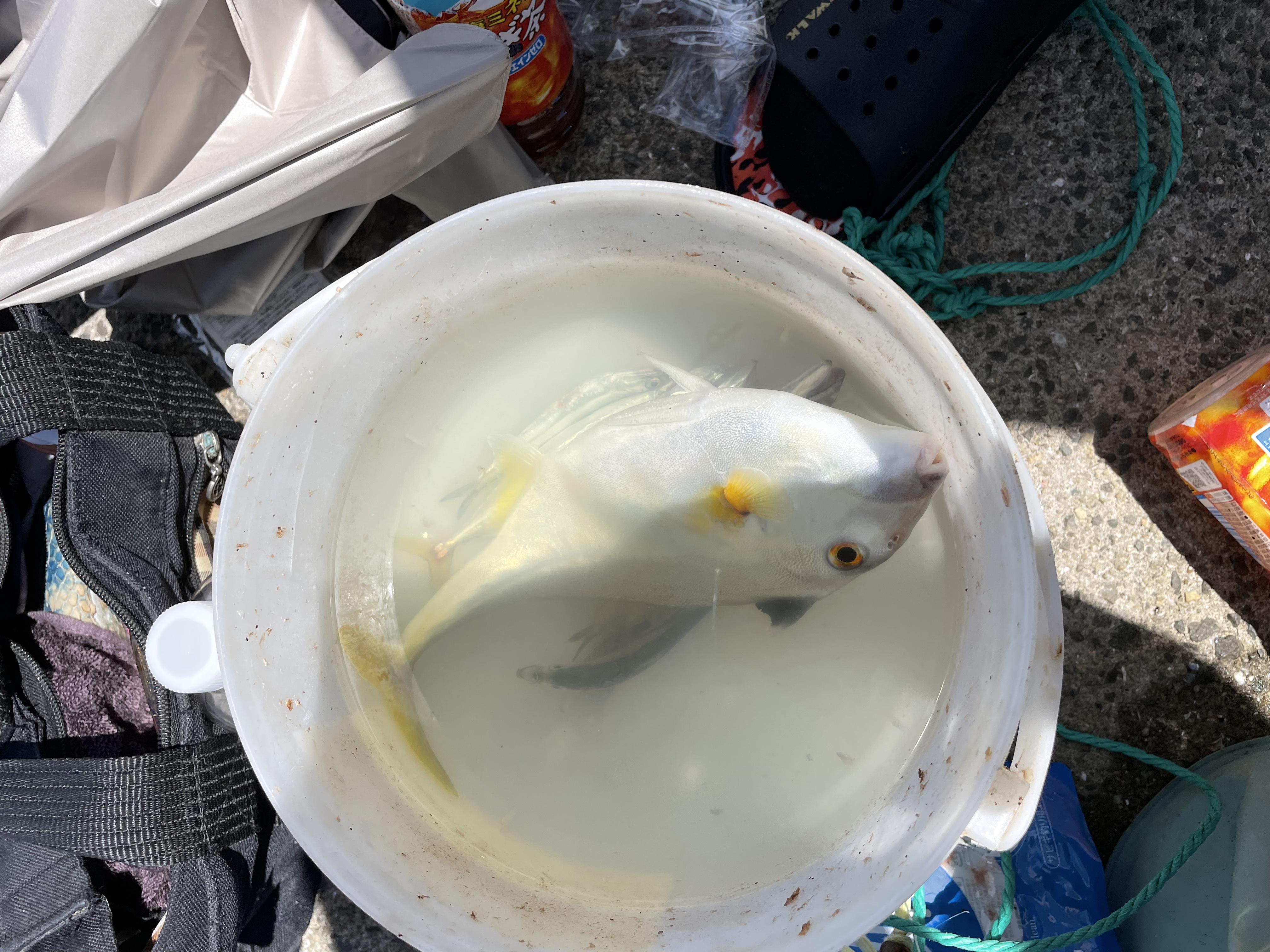 今朝のサビキは開園から1時間ほどで勢いが落ちて釣果は少なめになっております。一方チヌはよく釣れており短竿のダンゴ釣りで9枚あげている方もいらっしゃいました。