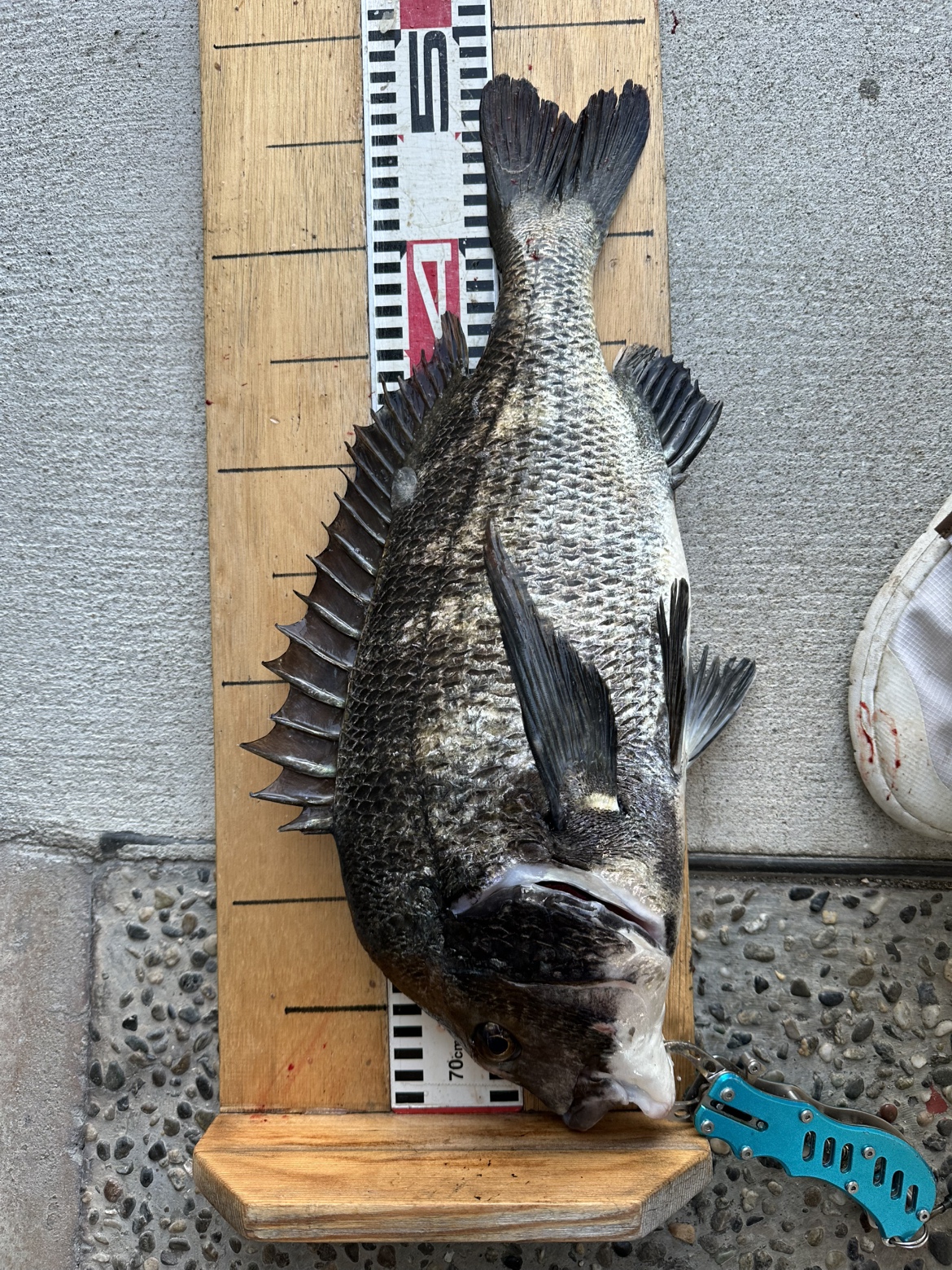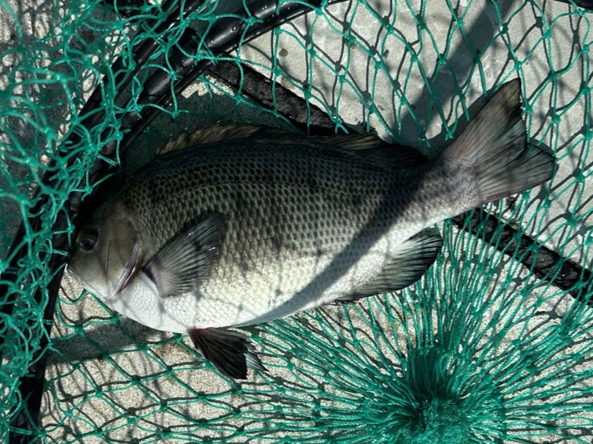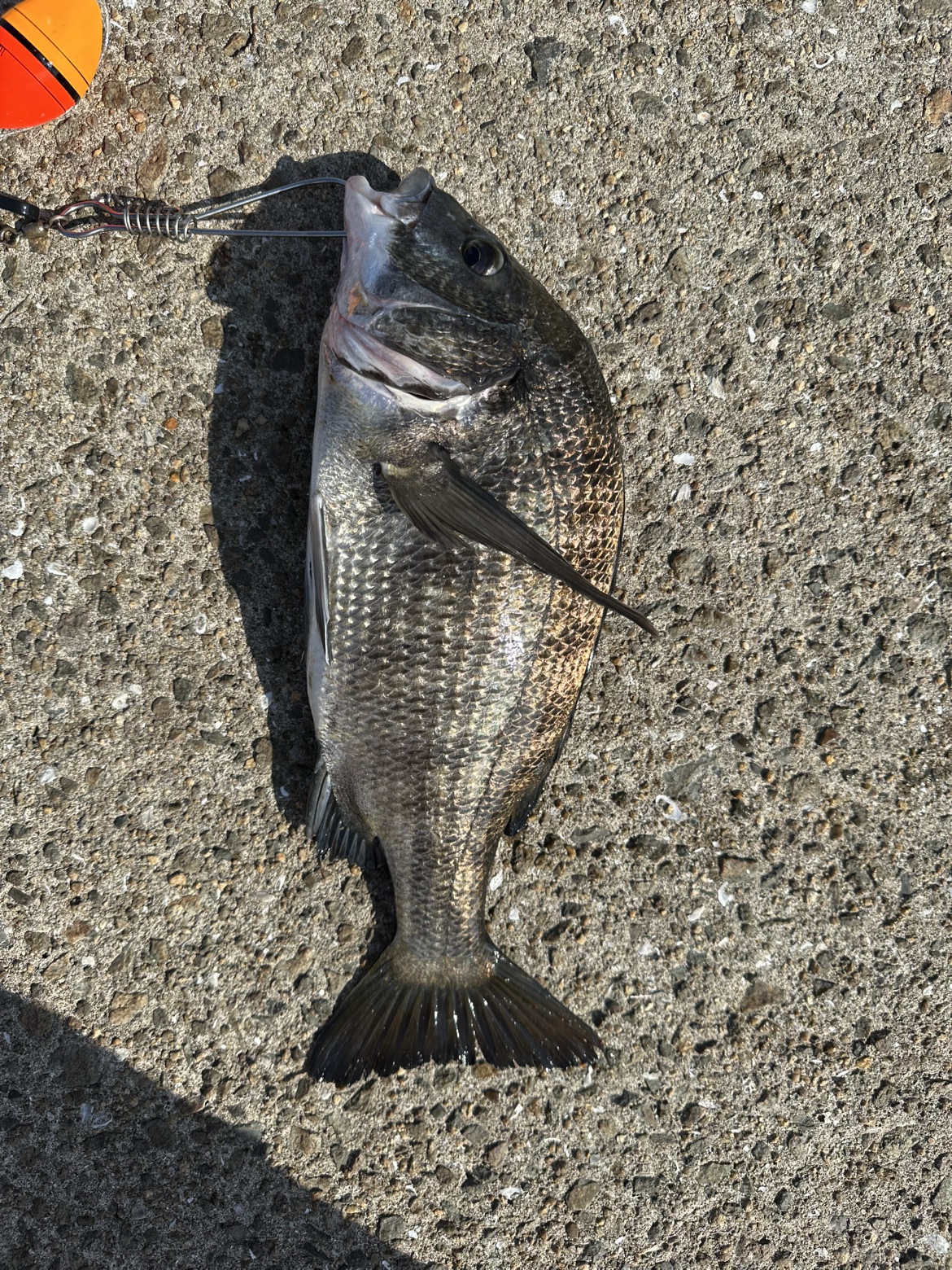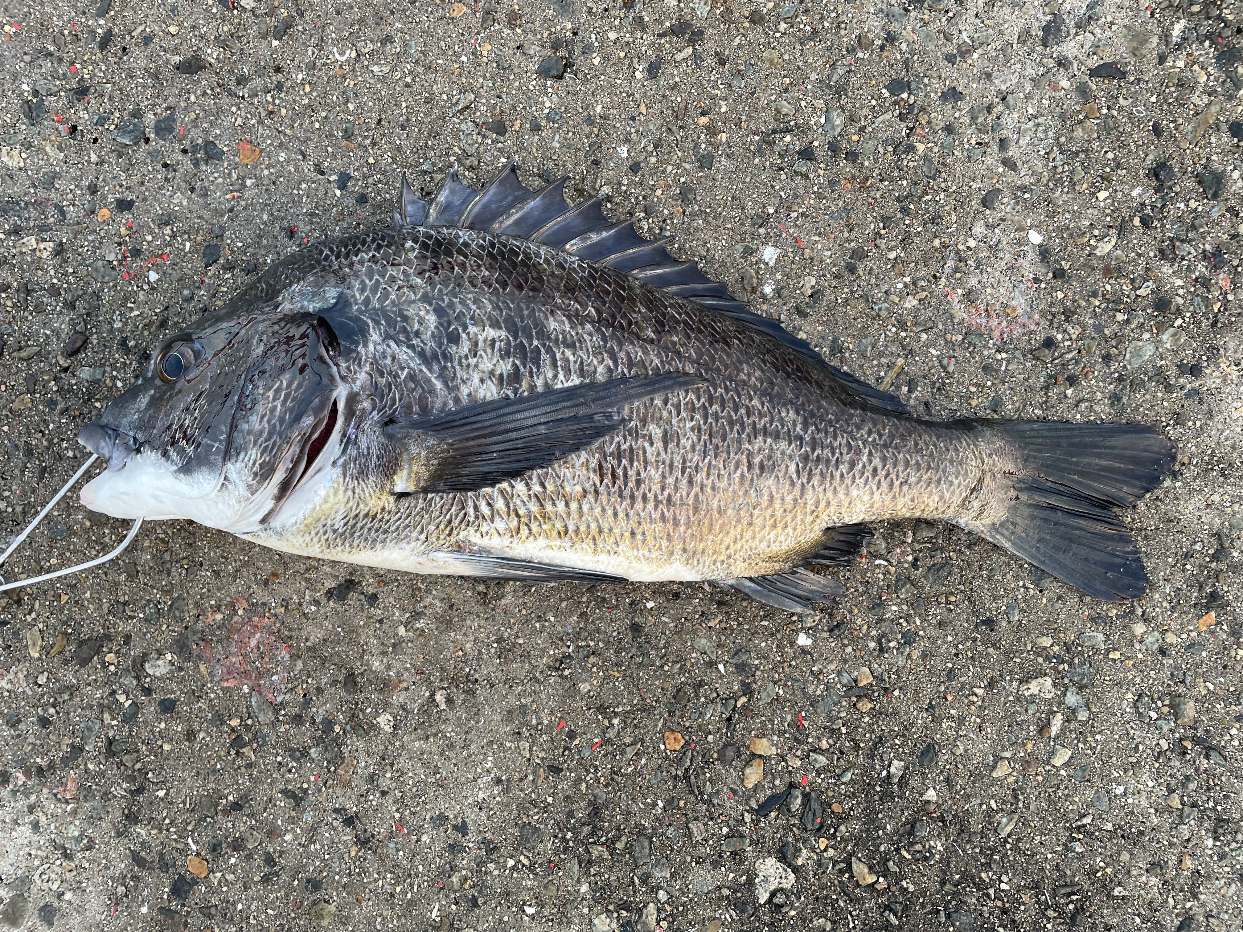 チヌは落とし込み(フジツボ)、フカセ釣り(オキアミ)で釣れています。