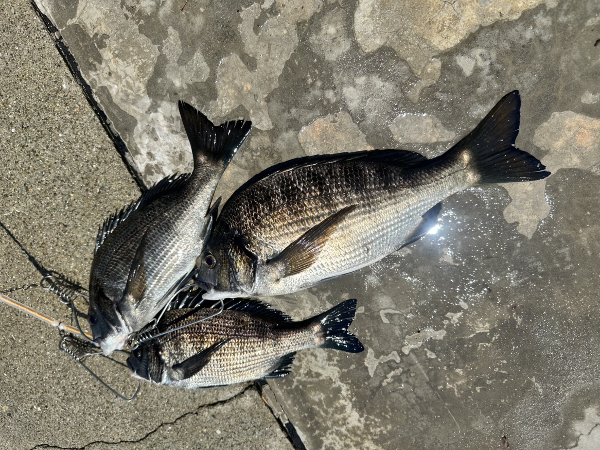 チヌは釣り場東端のテトラ帯でフカセ釣りで3枚あげられております。
