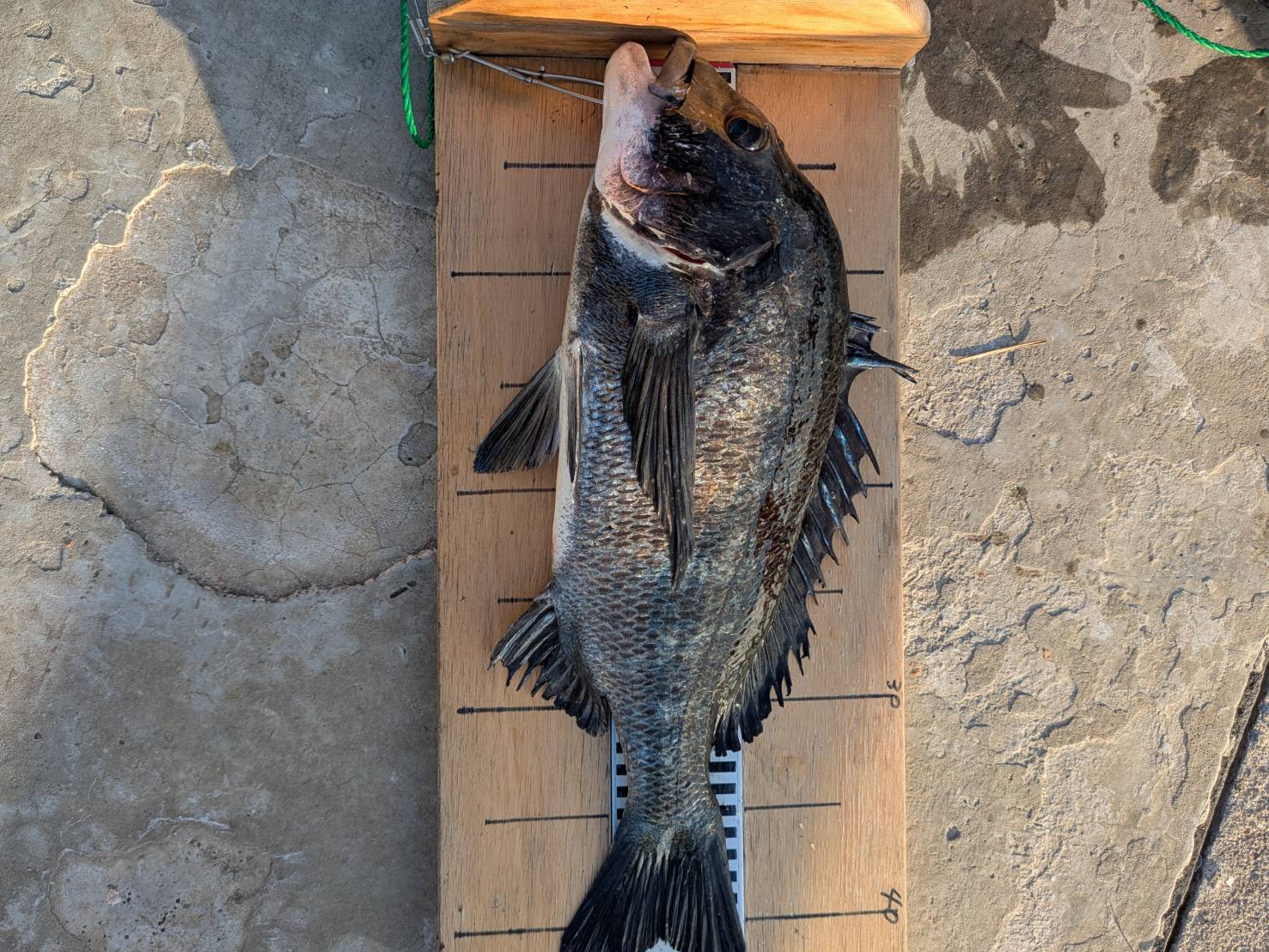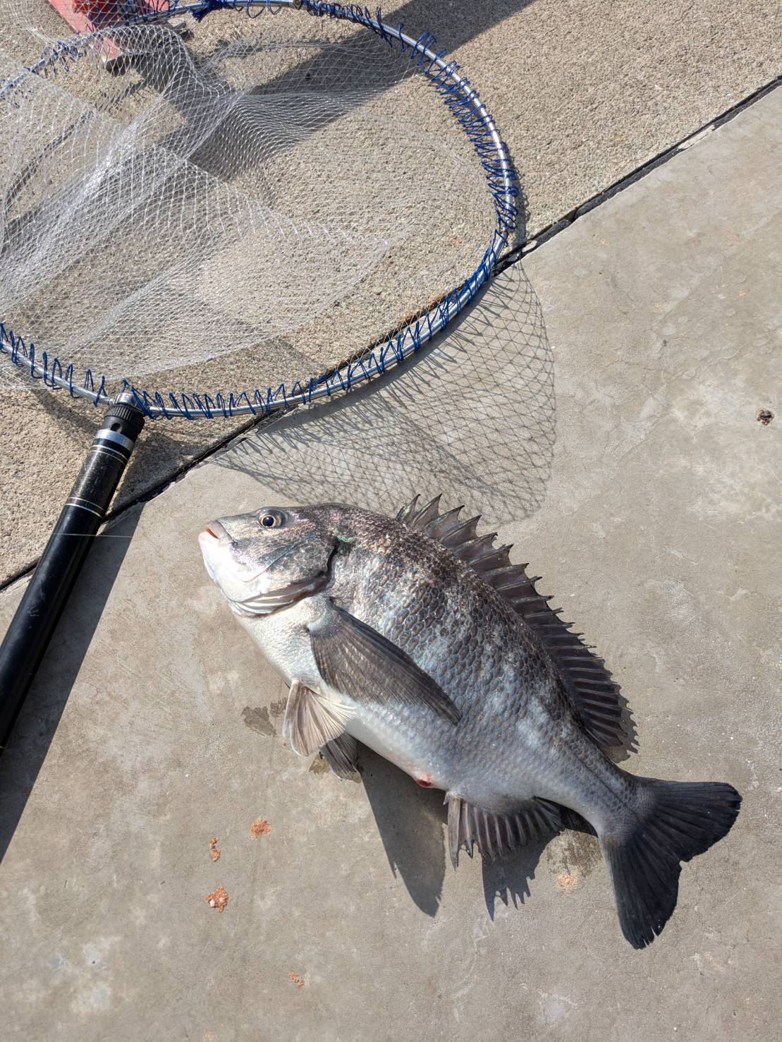 そんな中、お昼前から粘っていらっしゃたお客様が14時半頃綺麗なチヌを釣り上げていらっしゃいました。