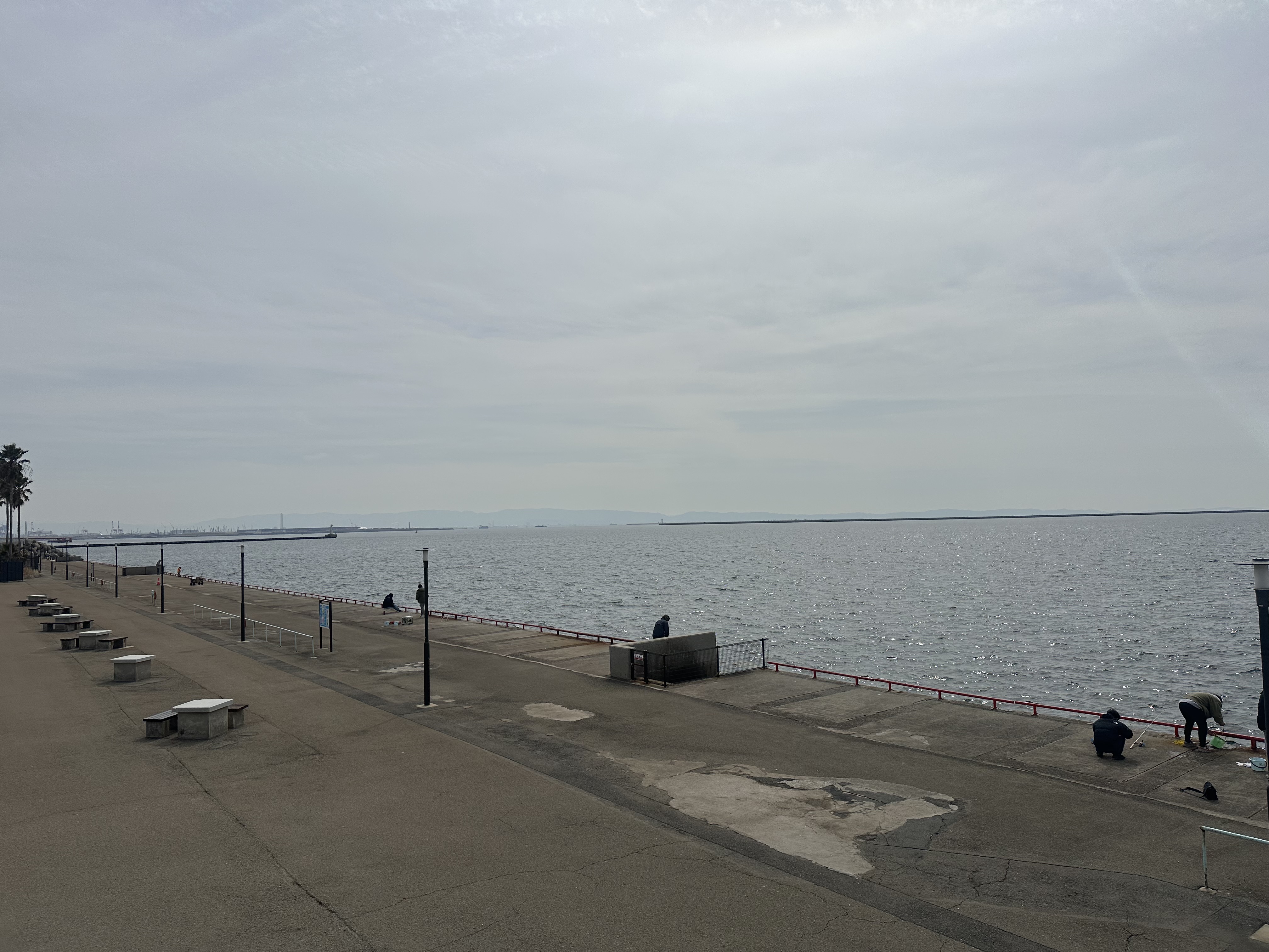 今日の鳴尾浜は日が差しているうちは暖かいですが曇ると肌寒いです。今日はハネが3匹、餌イソメで釣れています。