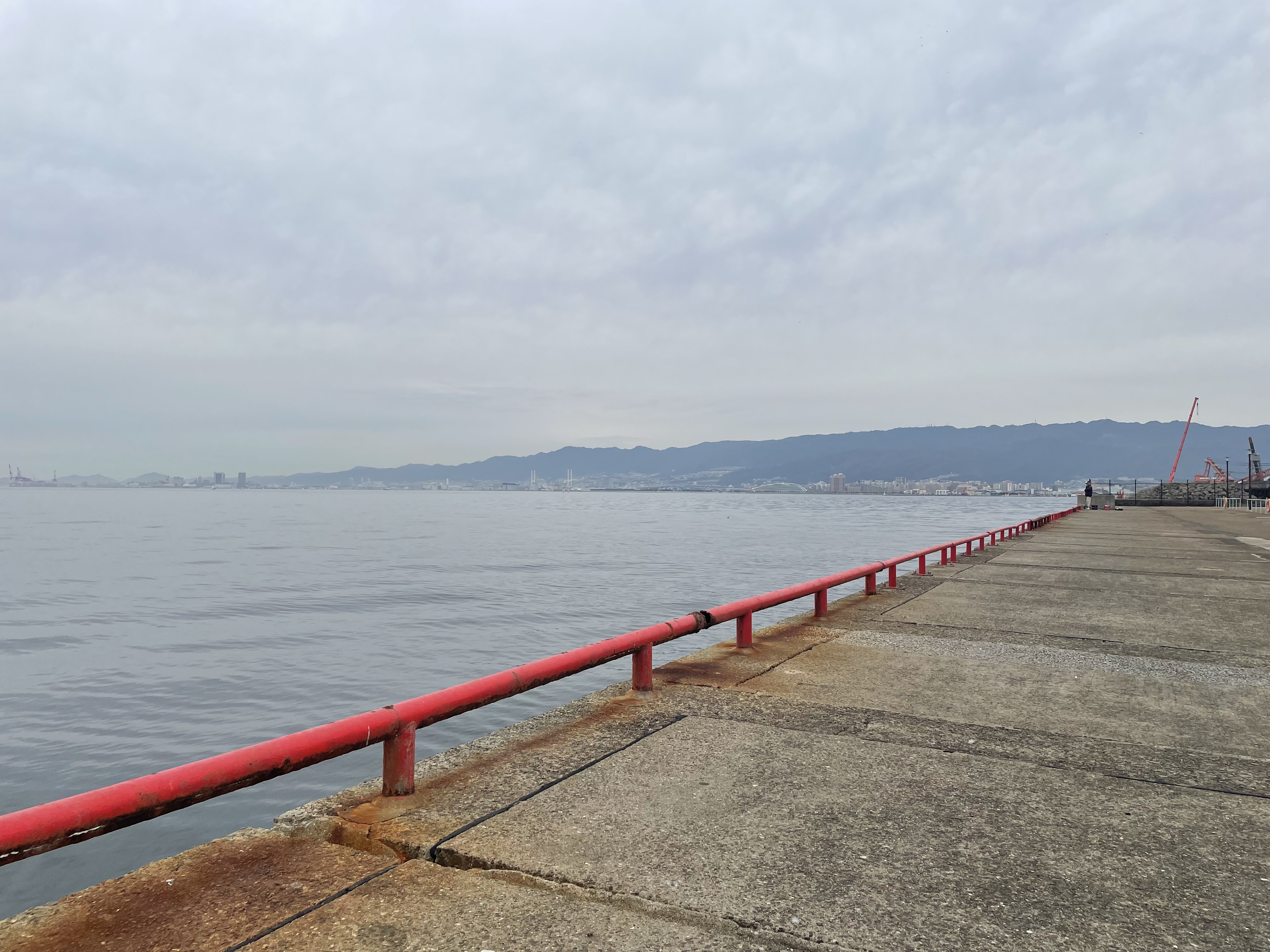 午前中の鳴尾浜は雨模様でお客様もおらず釣果はありませんでした。 -