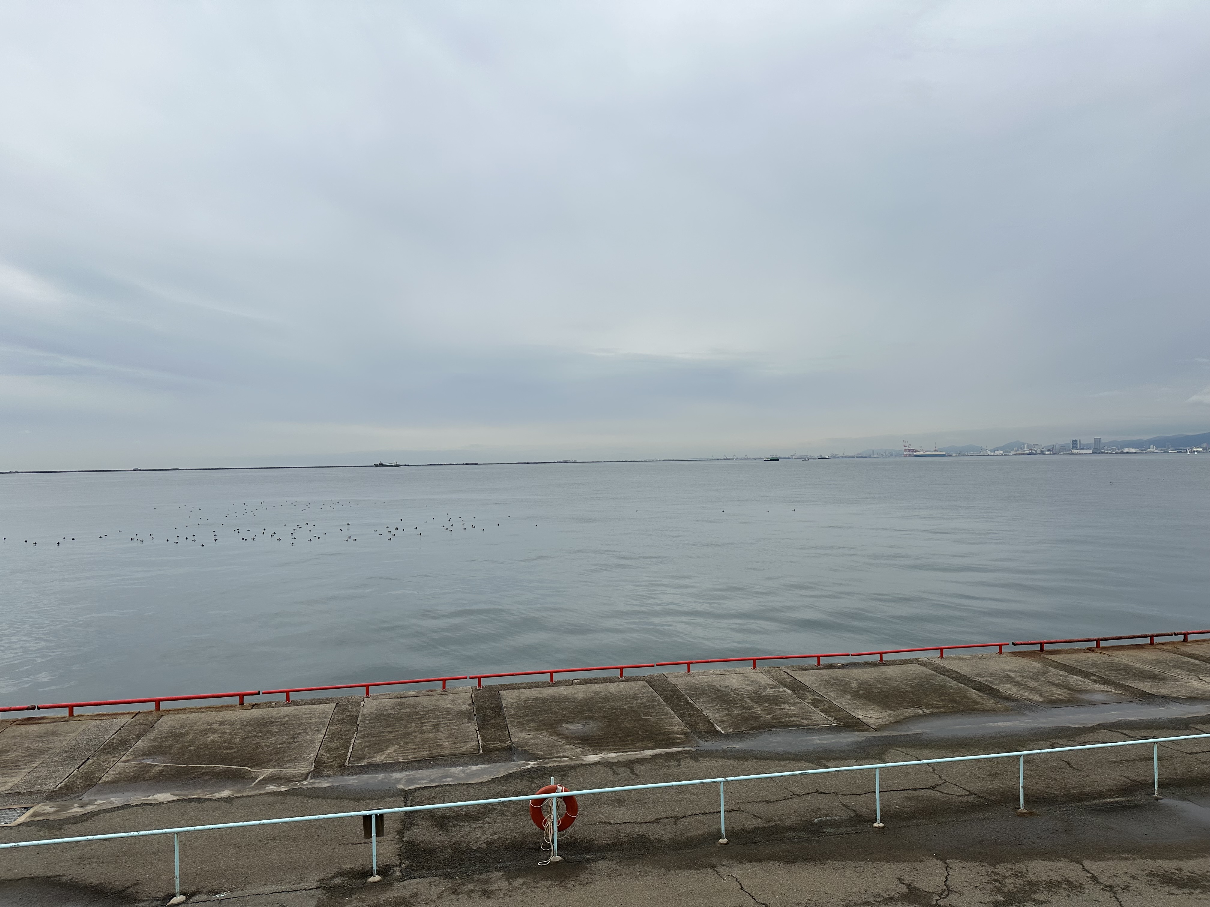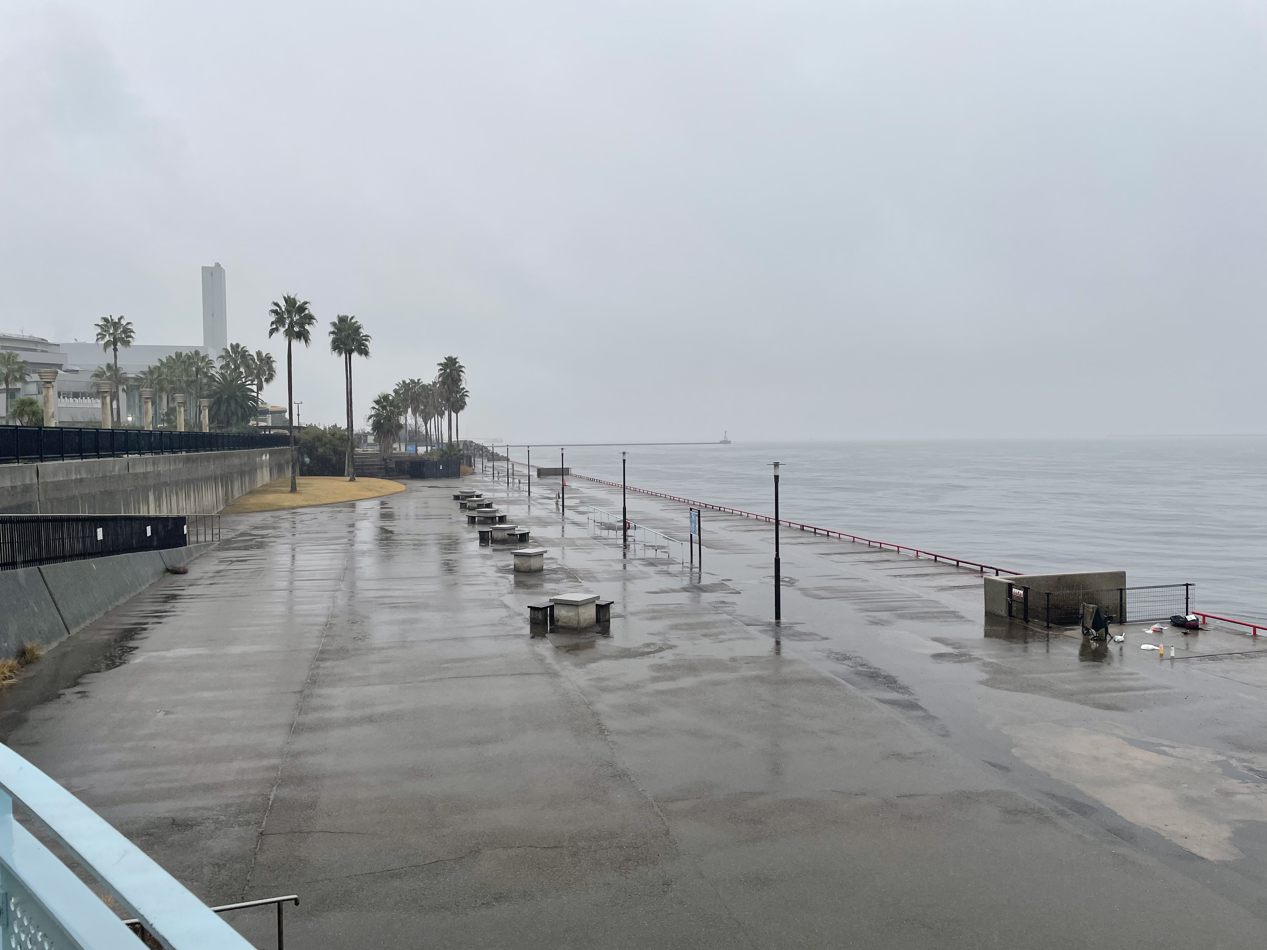 開園時、風は無く波も穏やかですが雨が降っています。