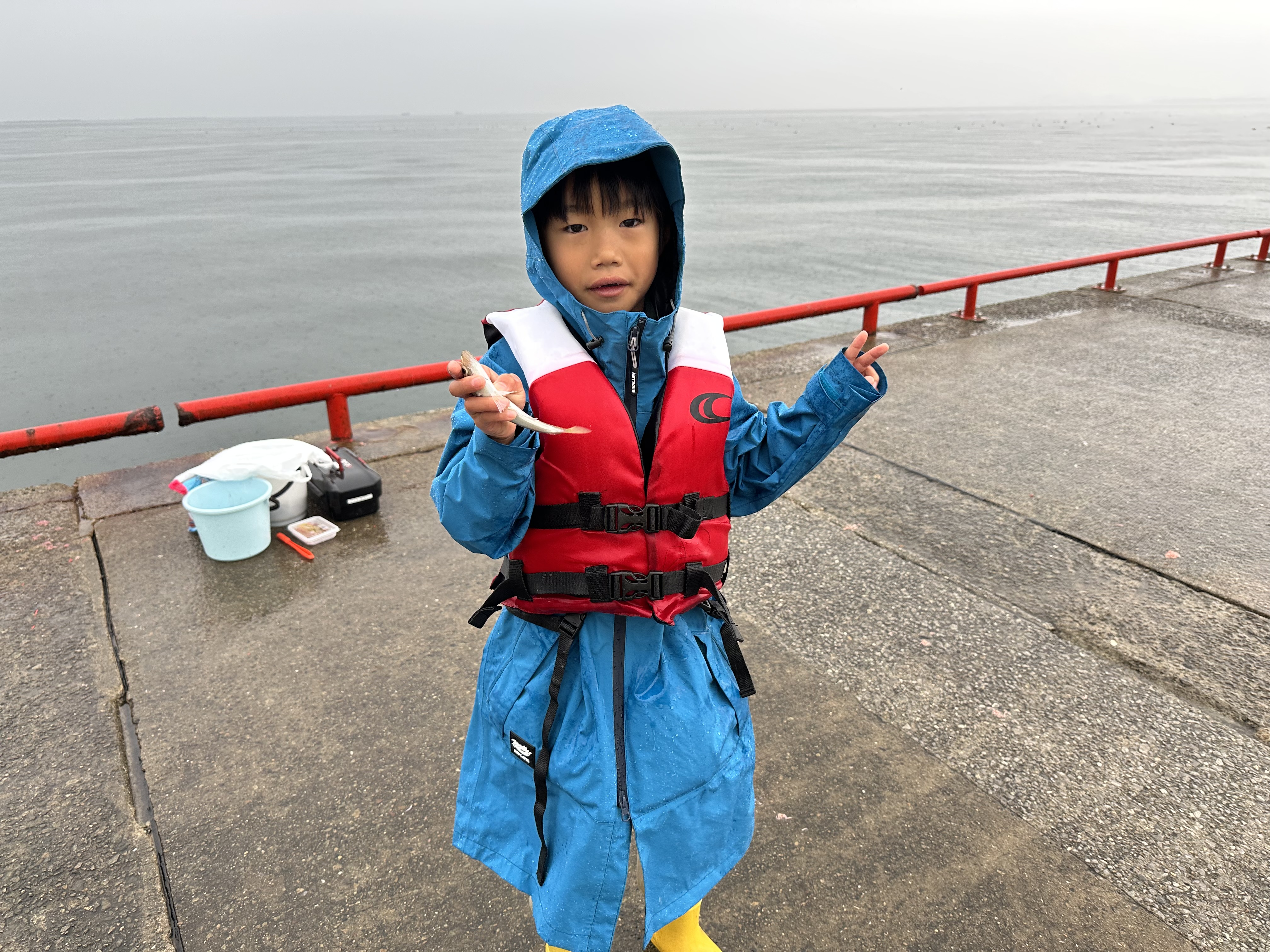 雨降っていますが風がなく波穏やかなので釣りはしやすそうですが・・・