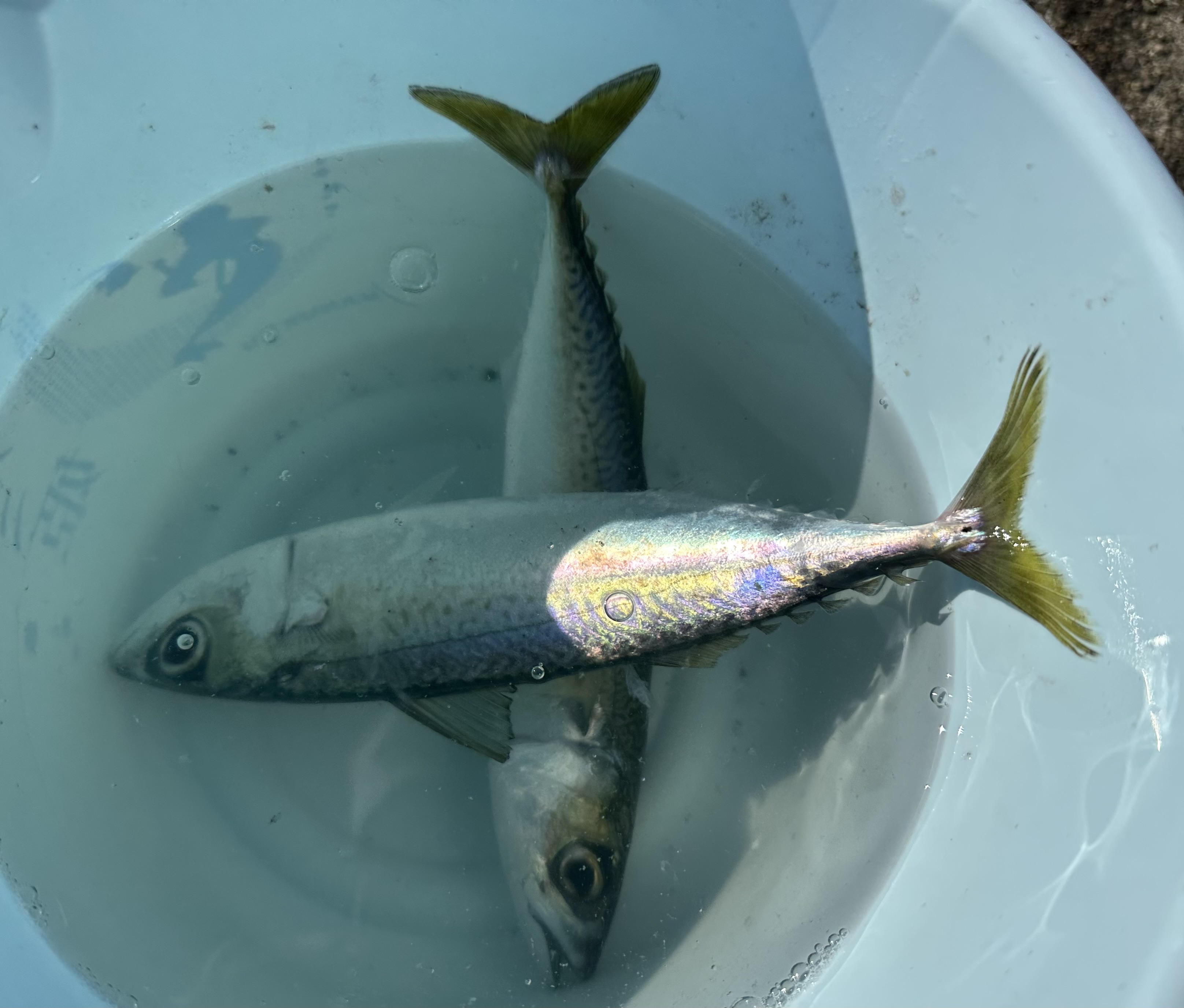 お昼頃サバの回遊があり少し釣れていました。