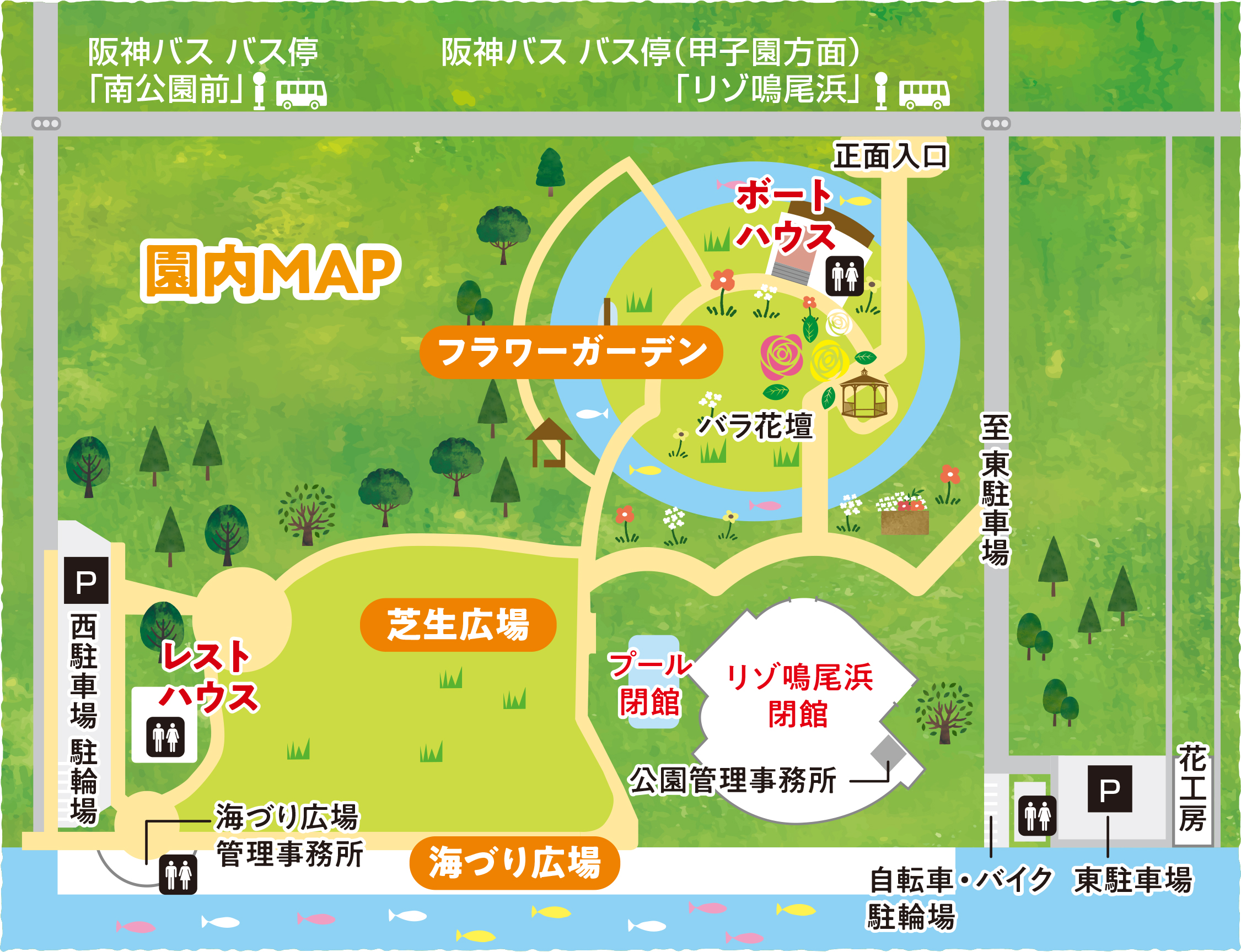 集合場所:ボートハウス(フラワーガーデン内トイレ横)